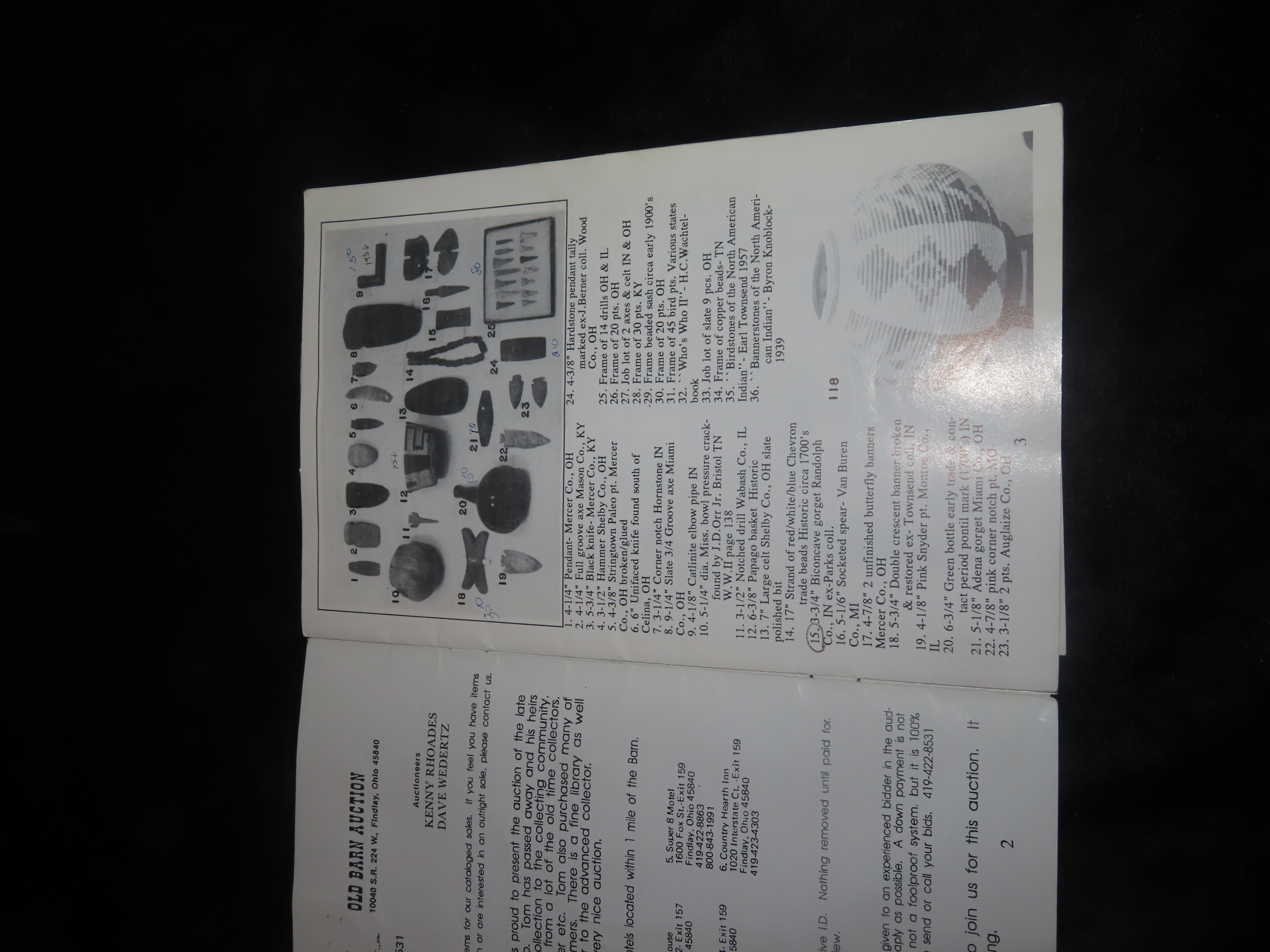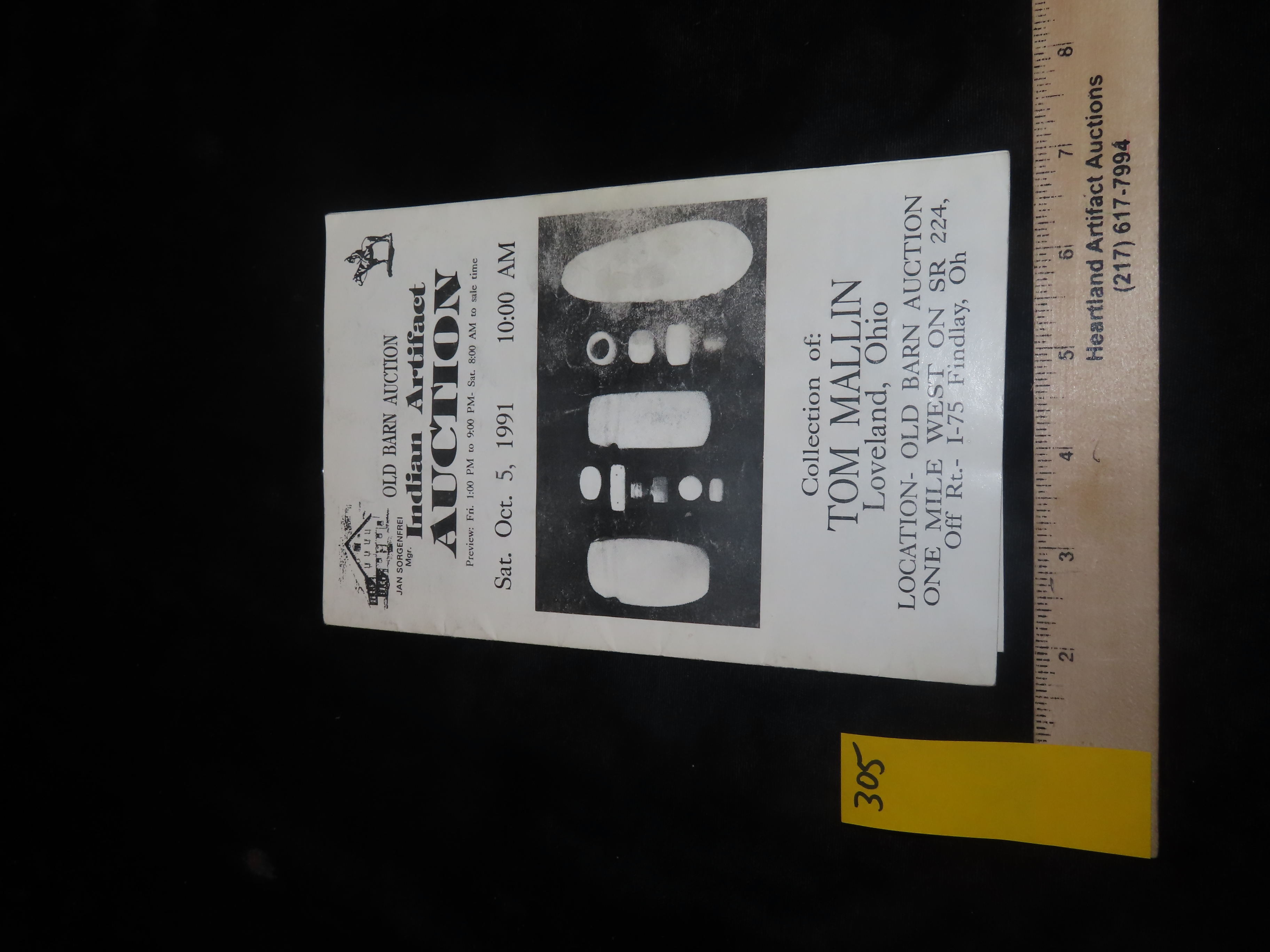 1991 Tom Mallin (ohio) Indian Artifact Collection Auction Catalog, Old Barn/Painter Creek Auction Service, Axes, Pendants & Gorgets, Bannerstones, Pottery, Arrowheads, Pipes, Birdstones, ETC.