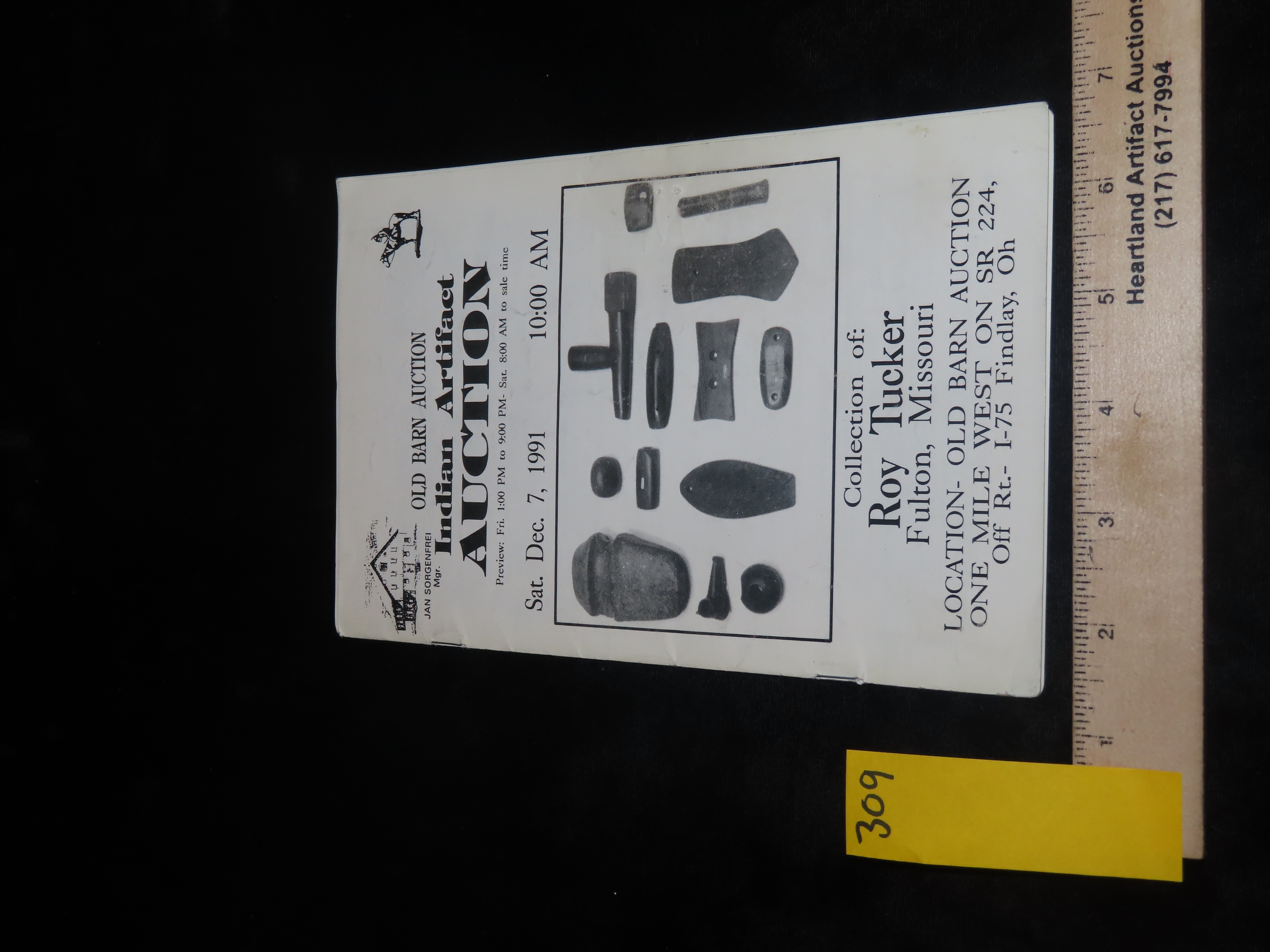 1991 Roy Tucker (Missouri) Indian Artifact Collection Auction Catalog, Old Barn/Painter Creek Auction Service, Axes, Pendants & Gorgets, Bannerstones, Pottery, Arrowheads, Pipes, ETC. Also Includes Prices Realized List