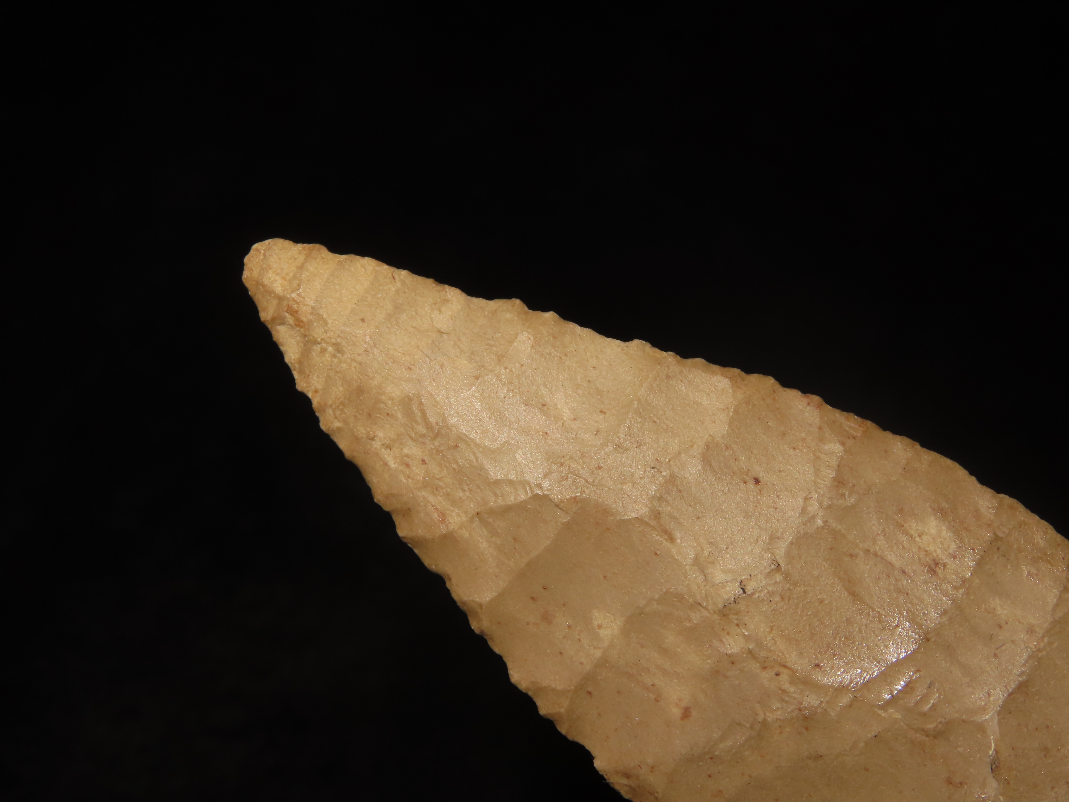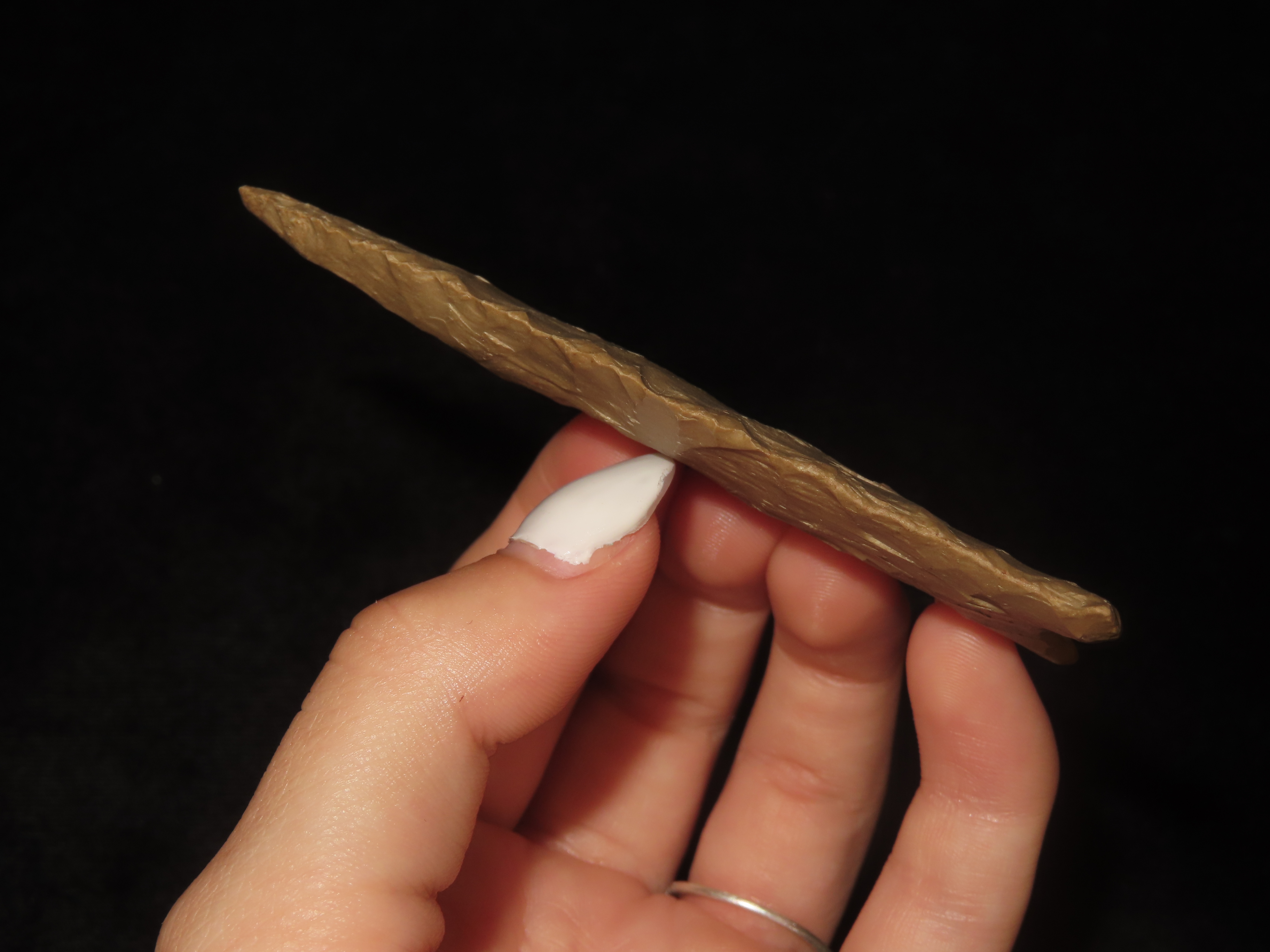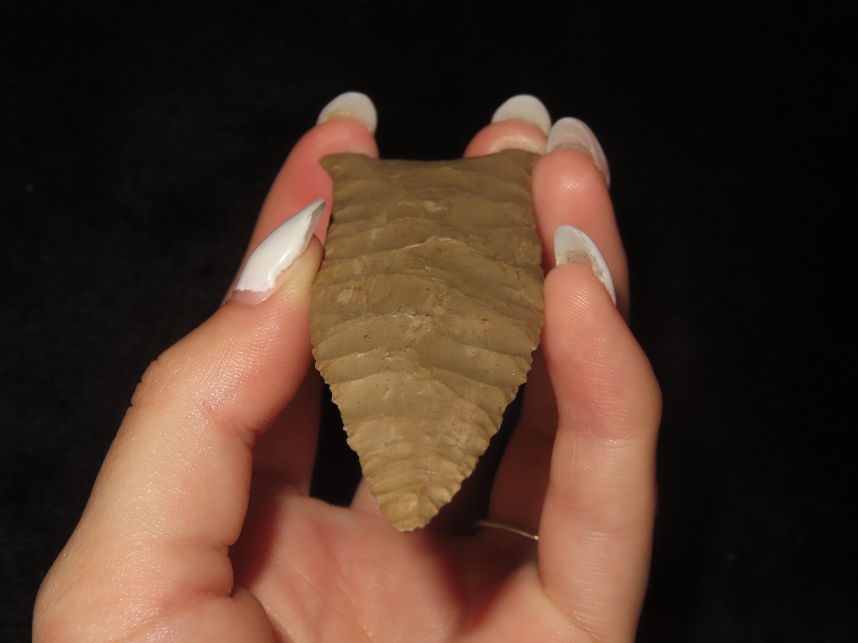 Impressive 3 1/2″ Paleo Quad, Stewart Co. Tennessee, Motley COA. Very Thin & Expertly Flaked Example, Great patina, Indian Arrowhead, Artifact, Spear