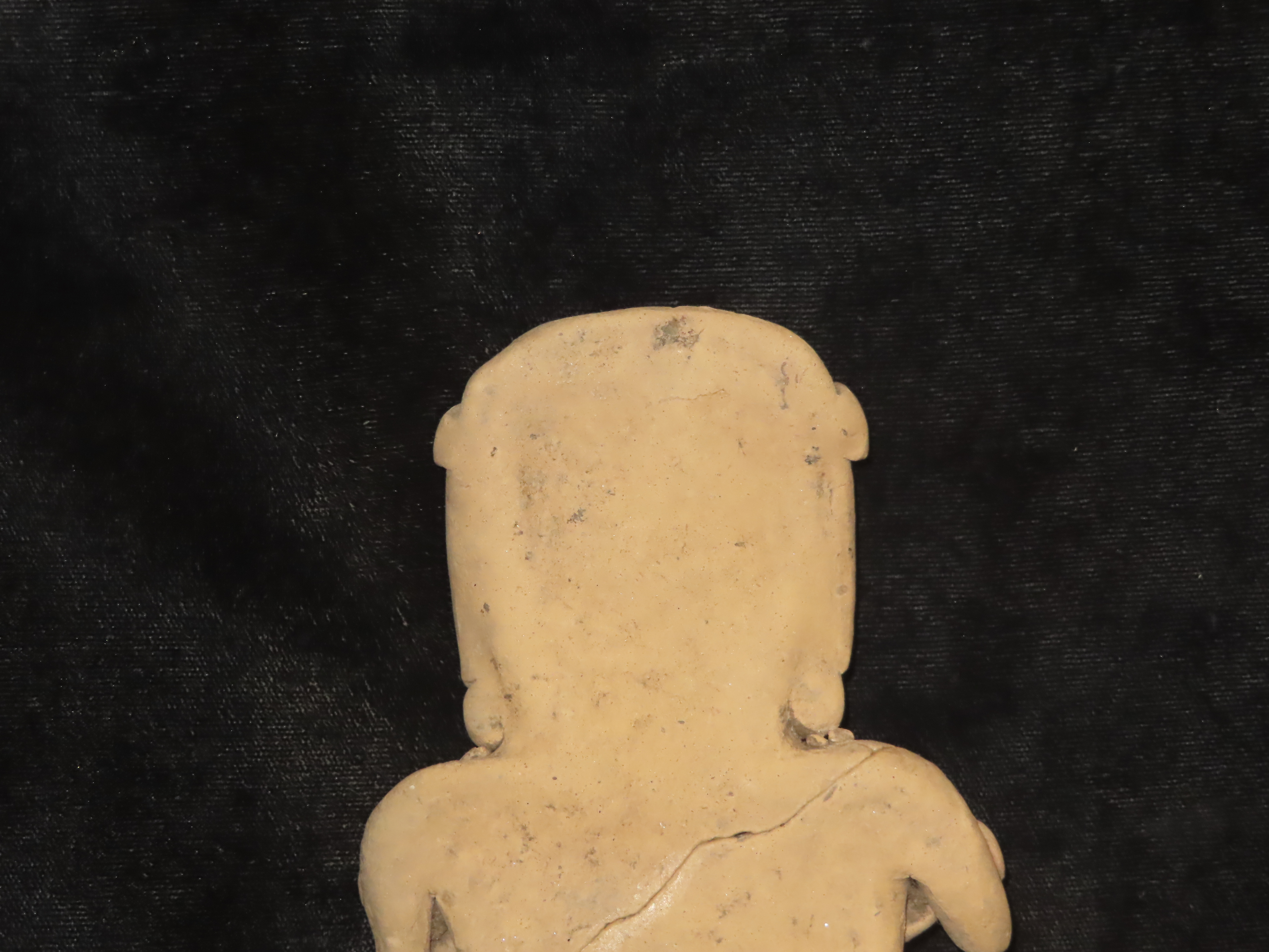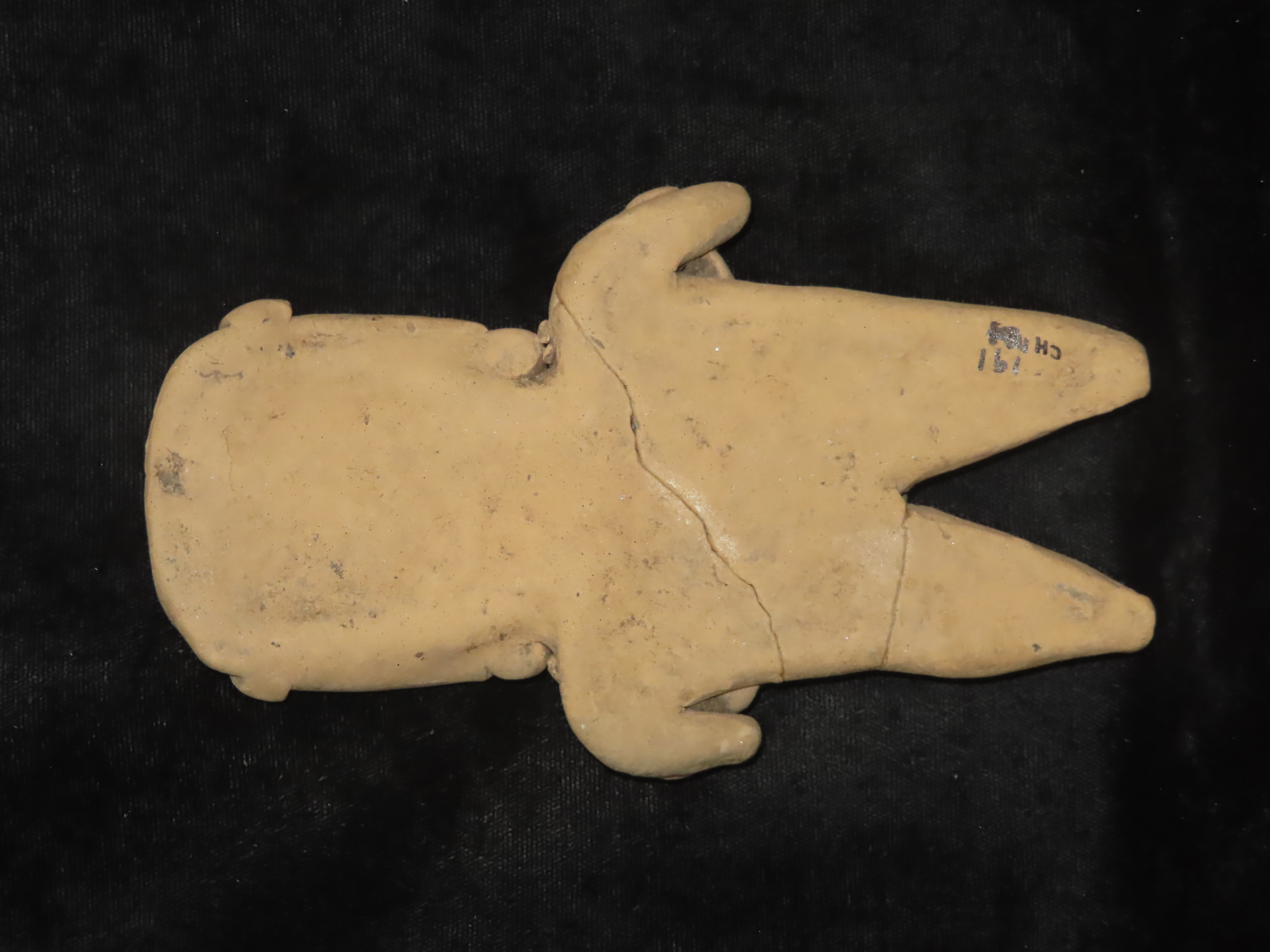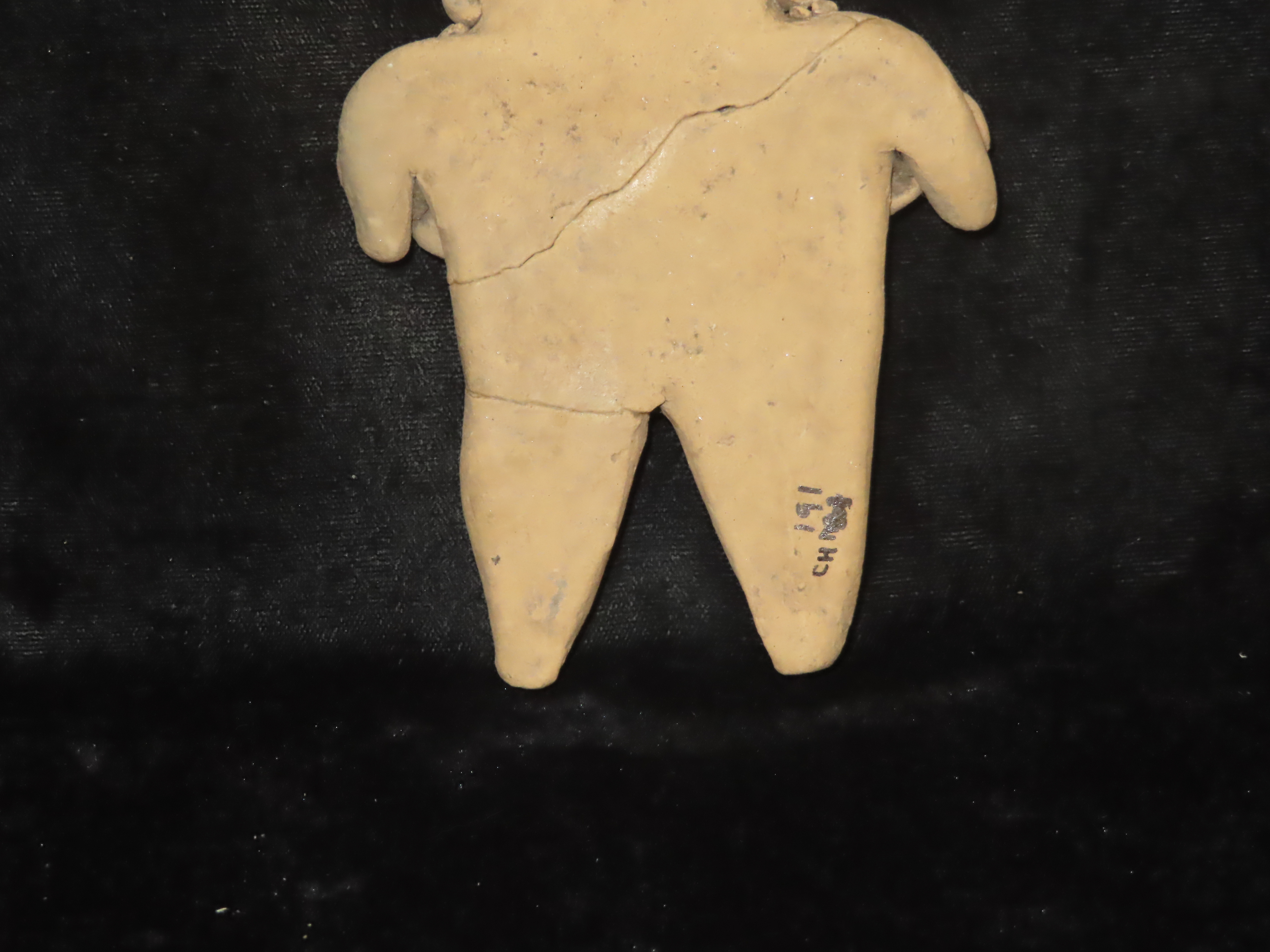 Large Chupicuaro Flat Figure. Mexico. Terracotta. 5 3/4″. Ex Dr Harner. Repaired across chest, with loss to necklace. Traces of paint still present, which is rare.