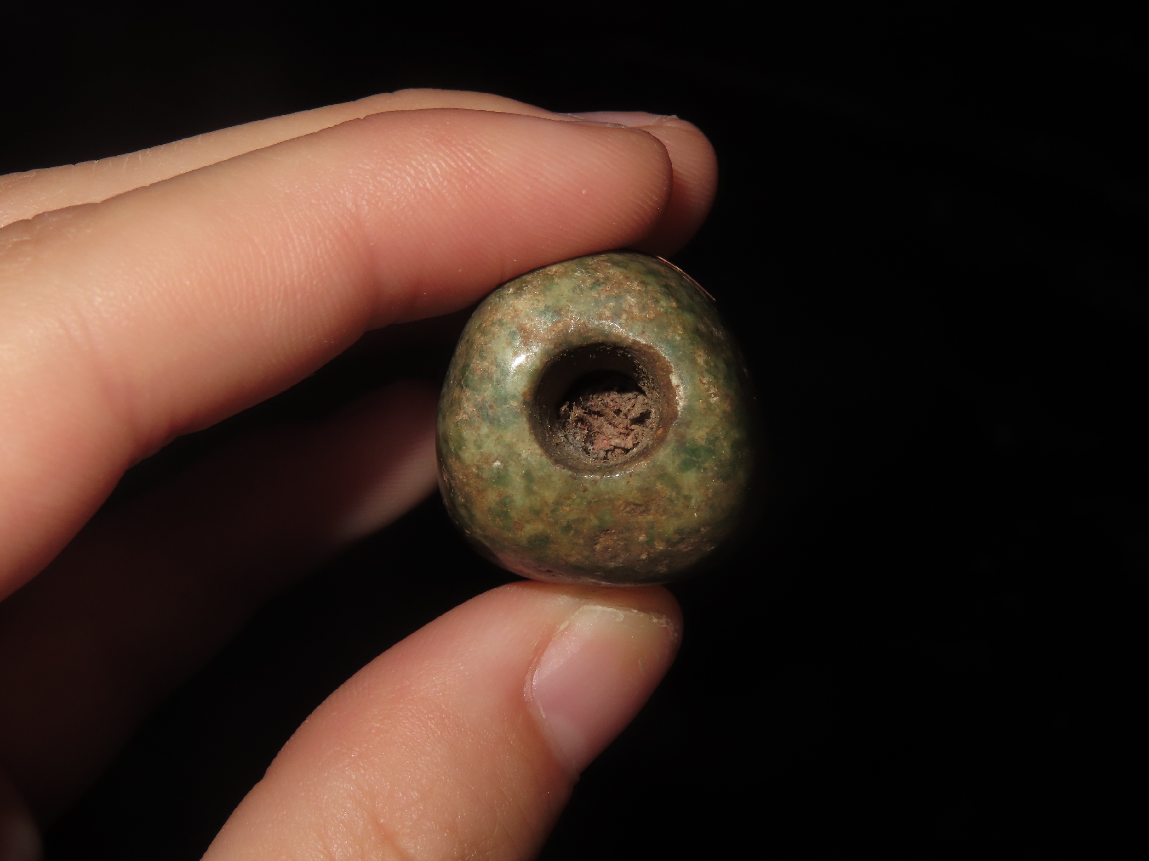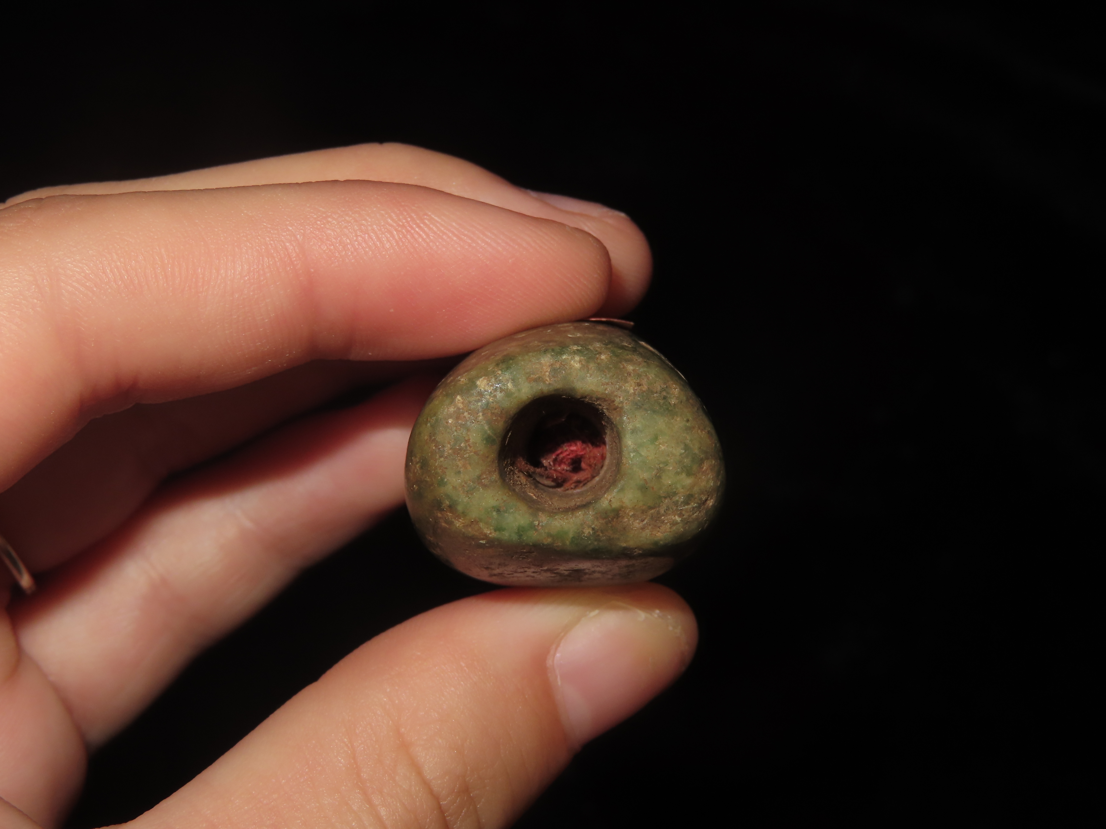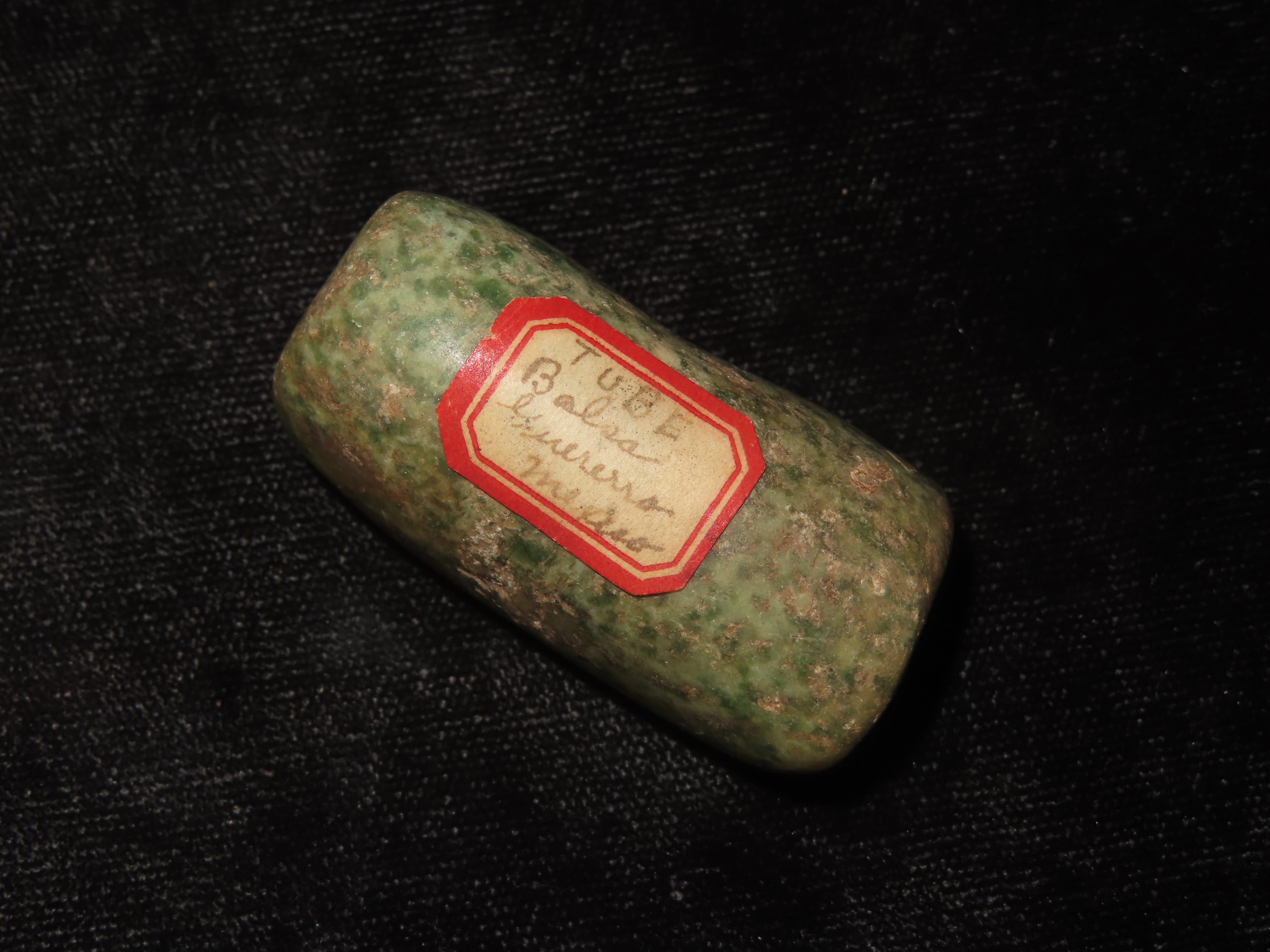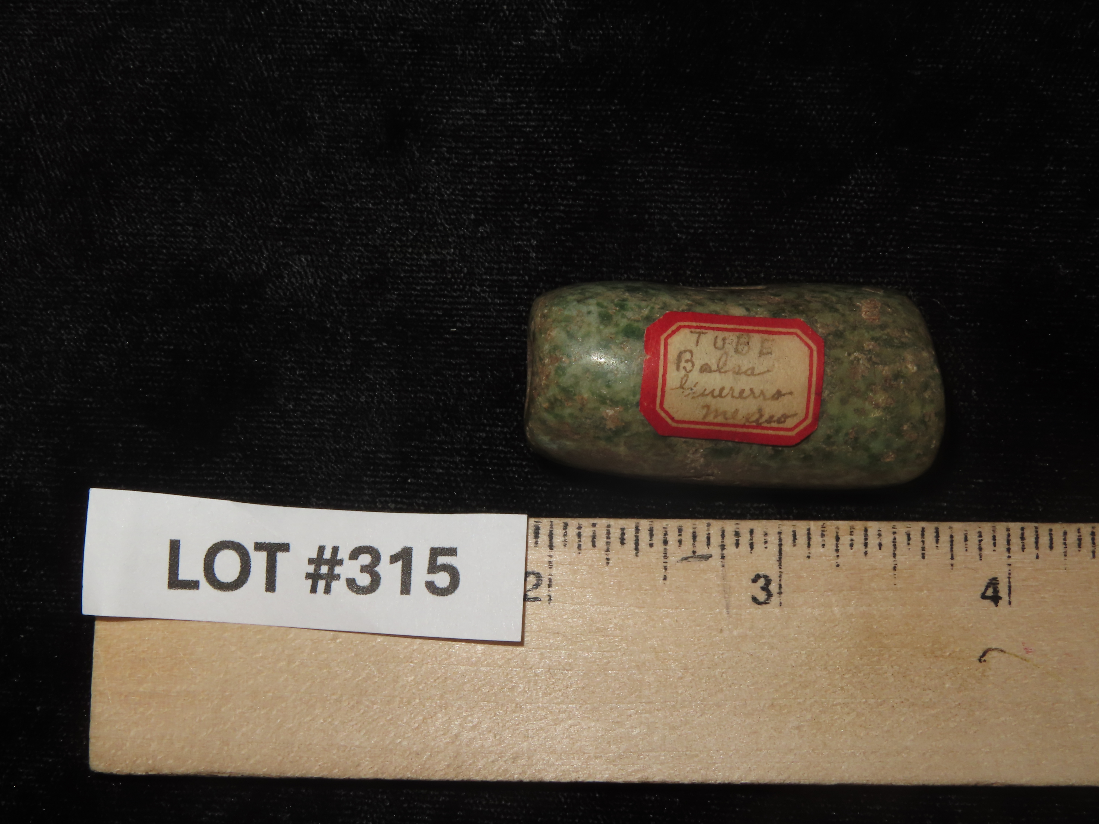 Fine Large Mezcala Jadeite Tube Bead, Guerrero México. 1 3/4″ Inches. Ex private CA collection.