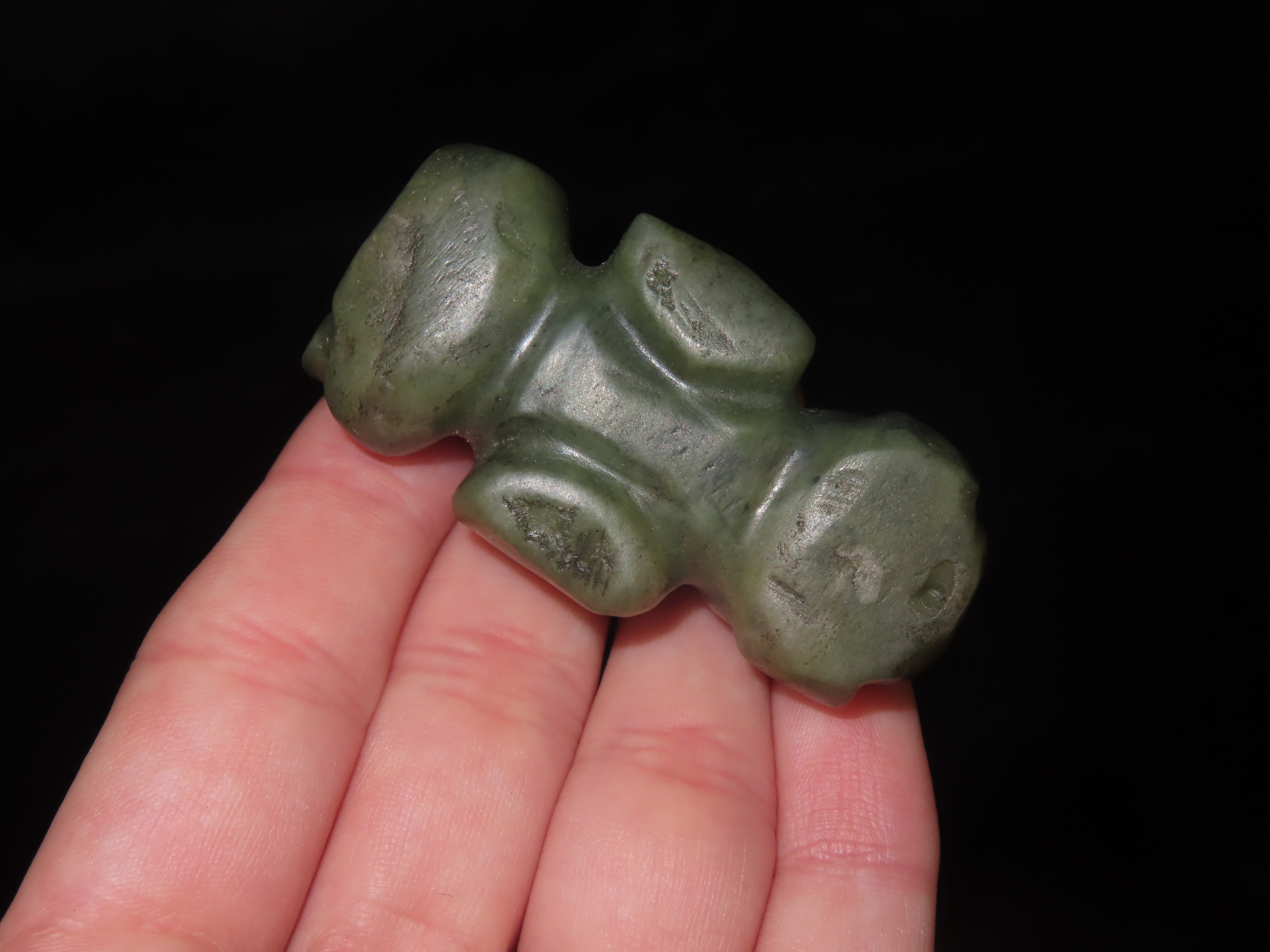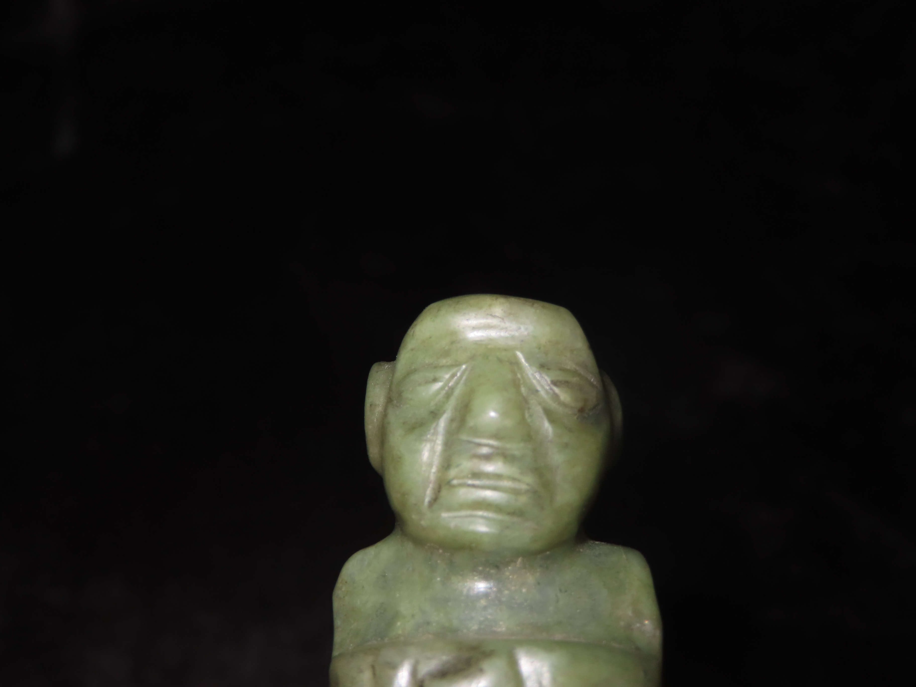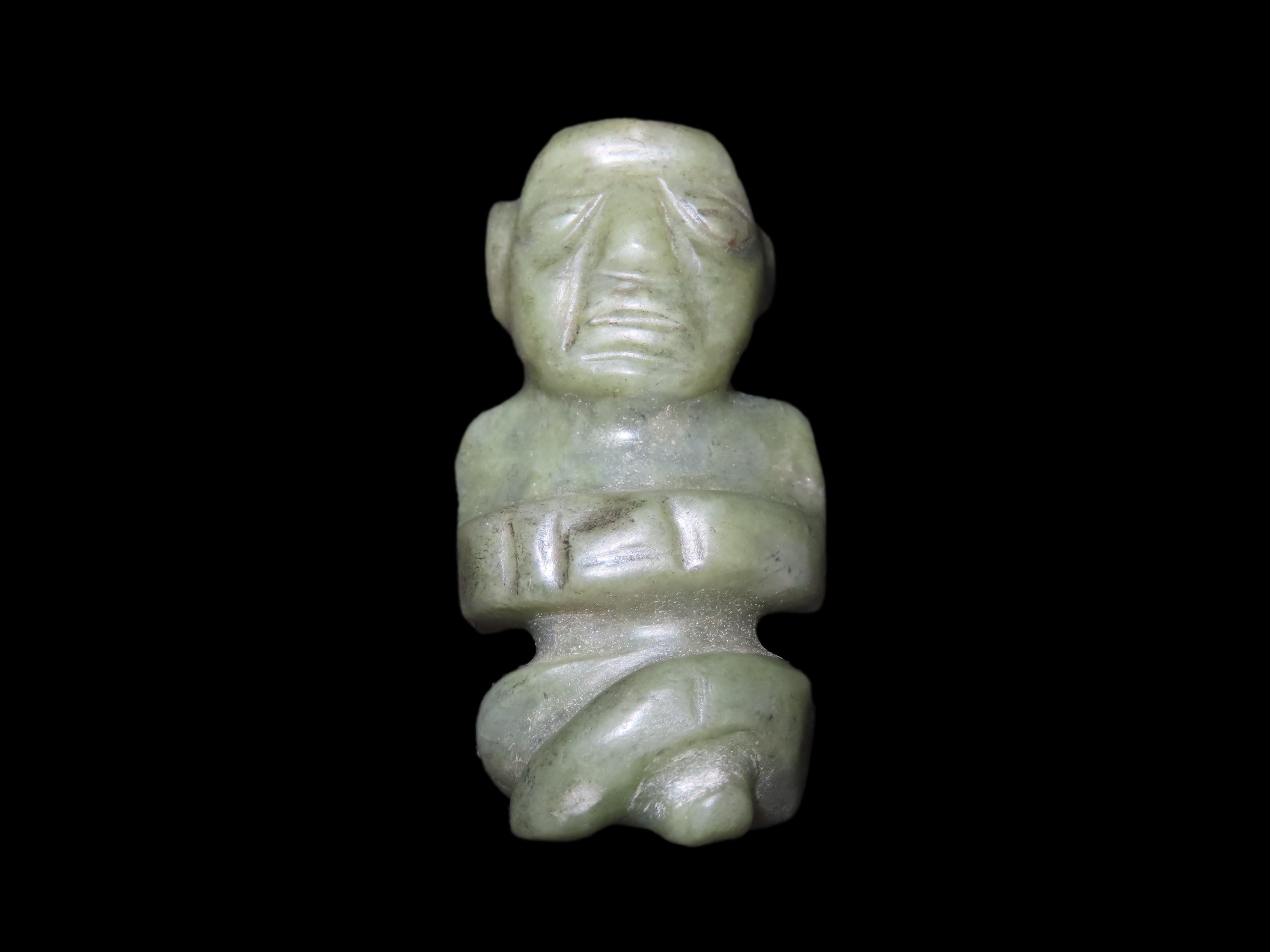 Amazing Jade Olmec Seated Human Figure Effigy Pendant, Mexico. Ex private CA collection.