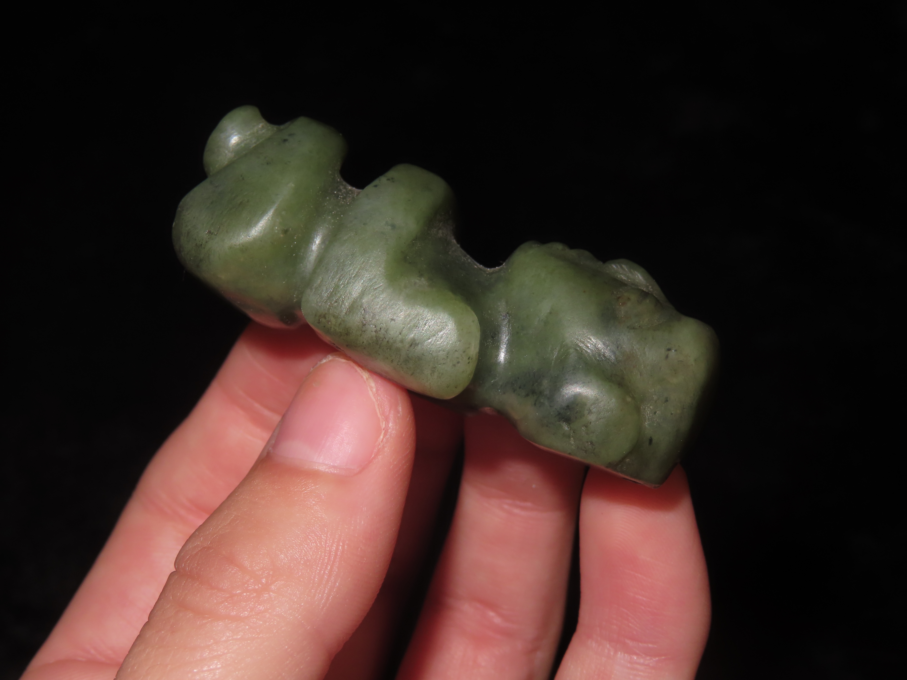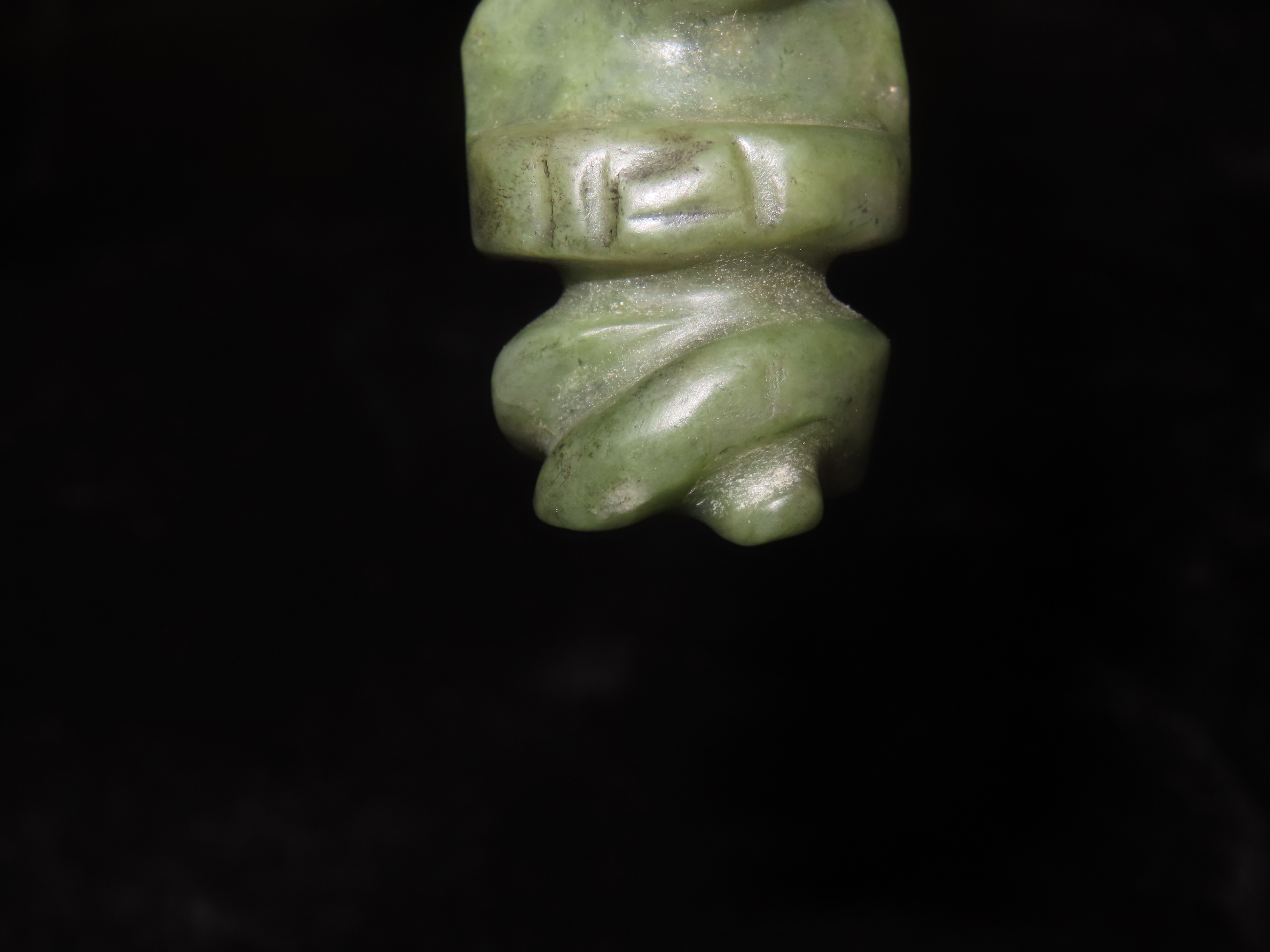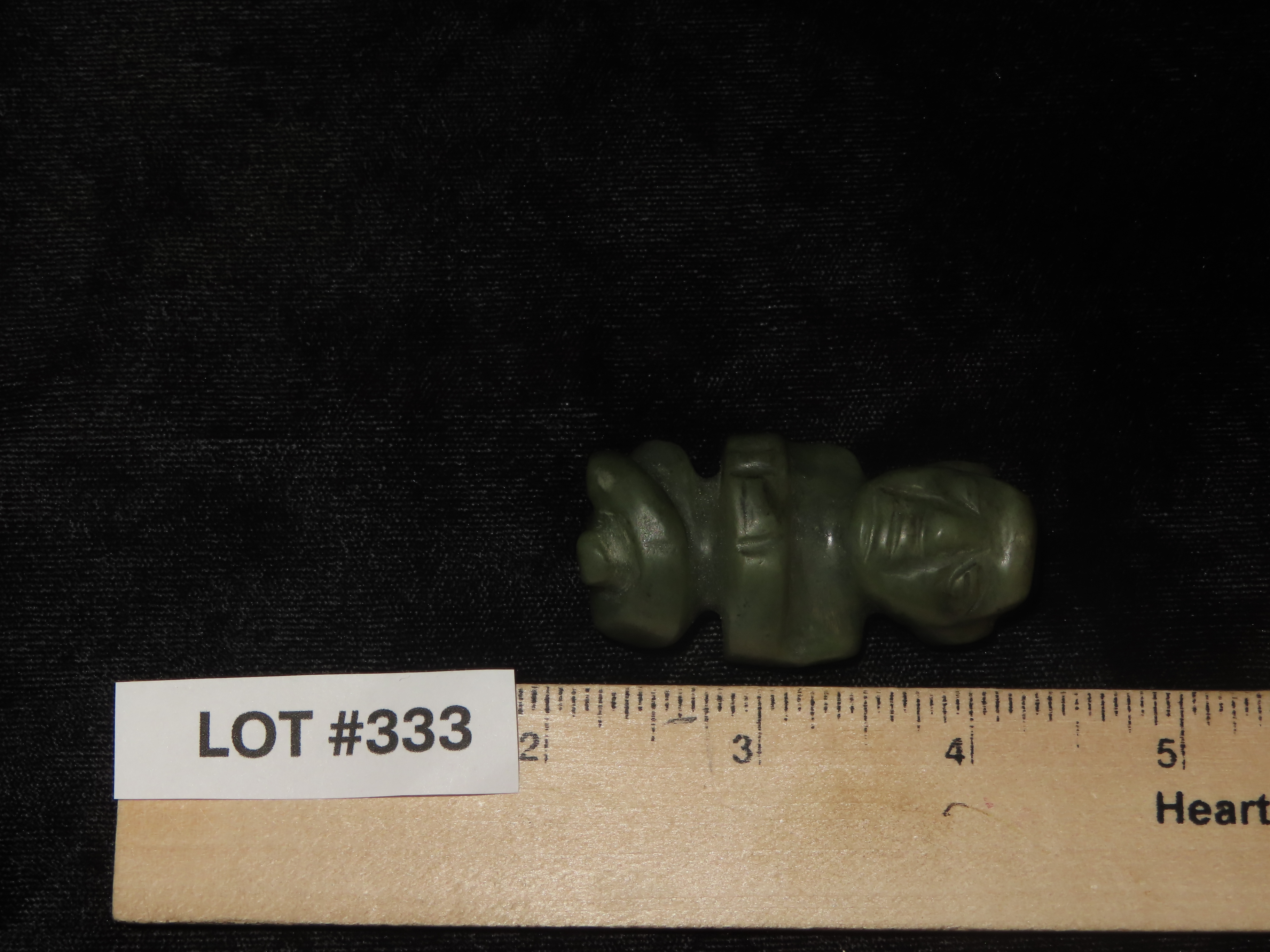 Amazing Jade Olmec Seated Human Figure Effigy Pendant, Mexico. Ex private CA collection.
