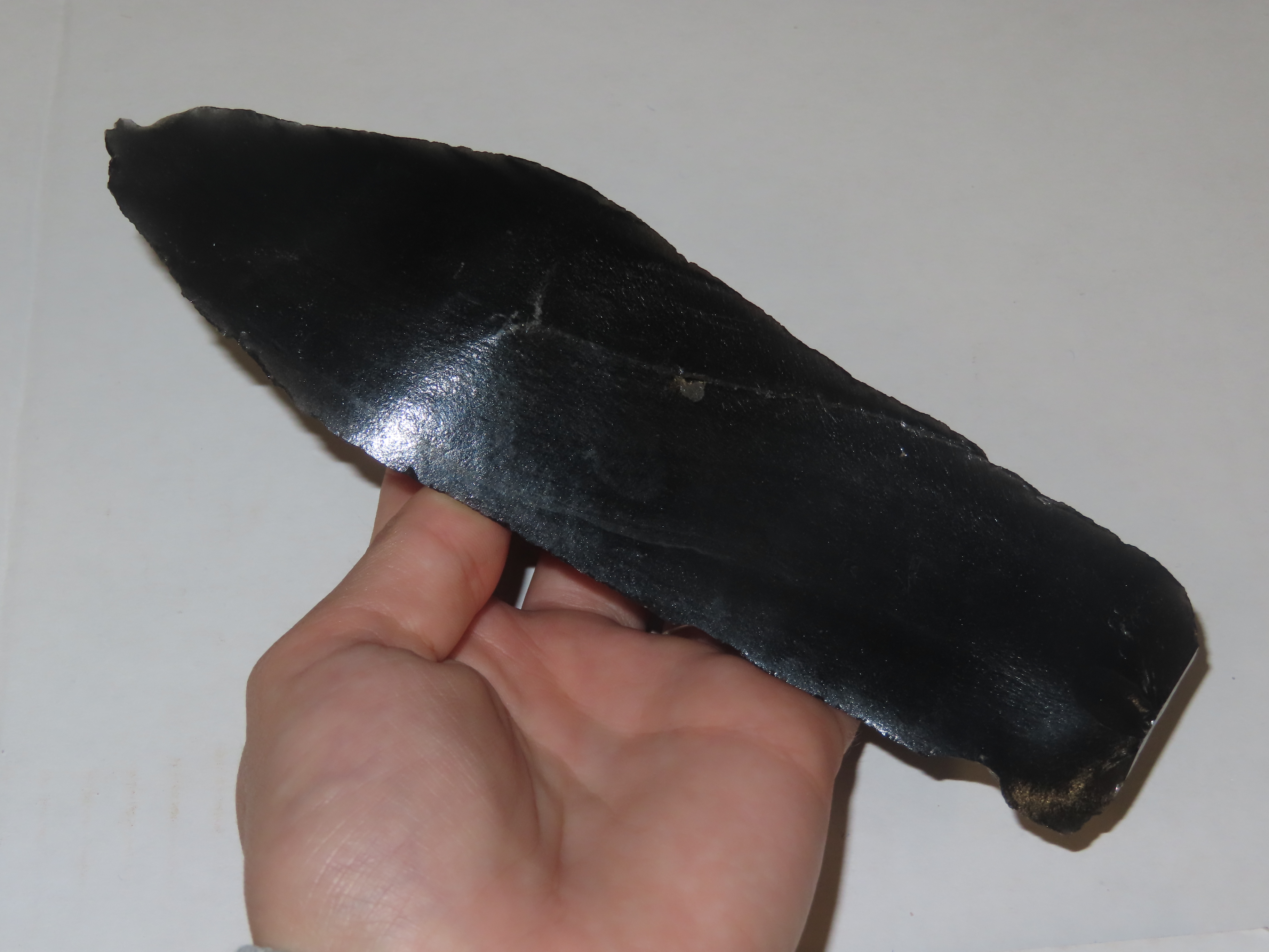 Maya Dagger, Guatemala. Black Obsidian. 7 inches long. Ex Dora Buntjer, MN. Ex old Guatemala collection.