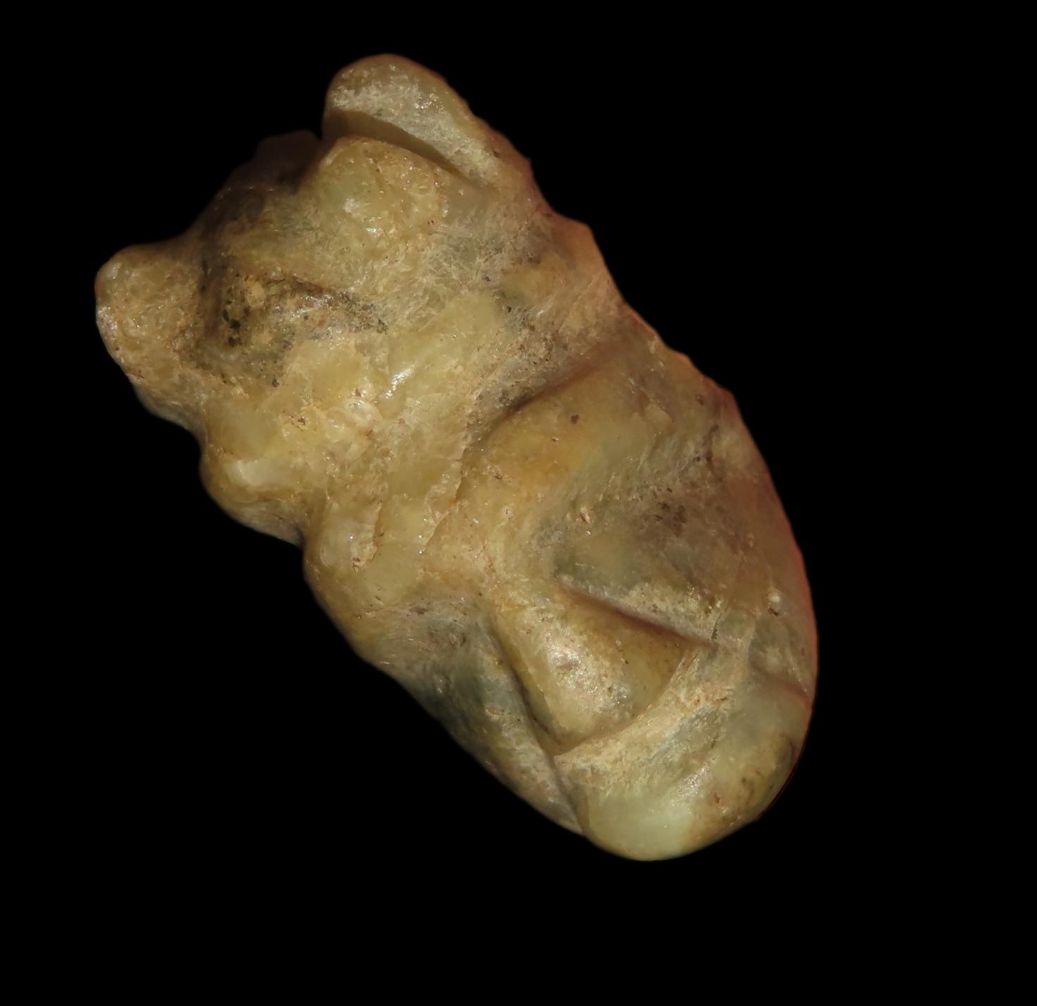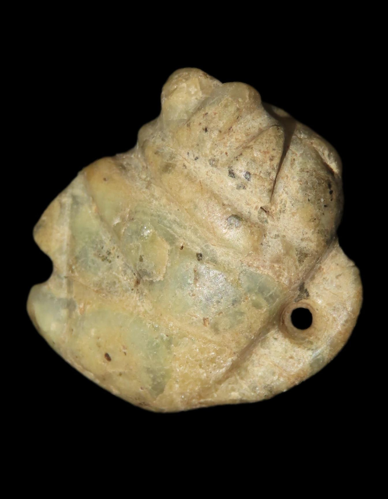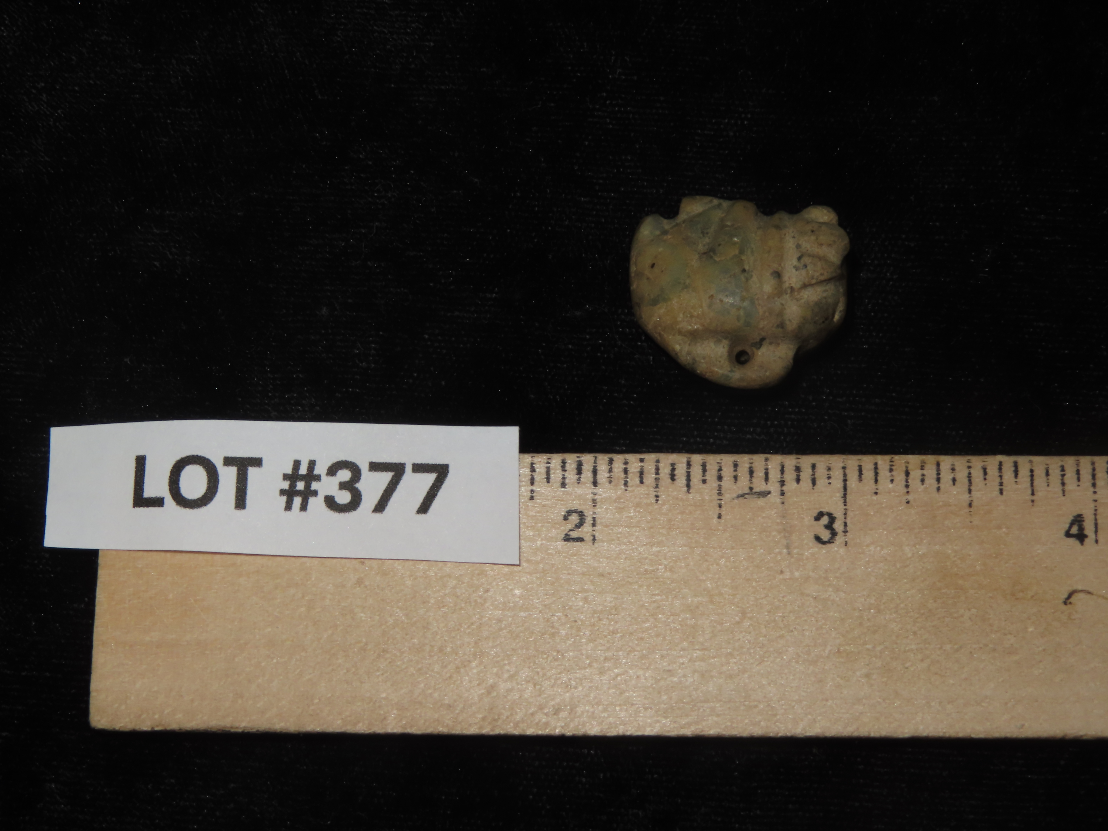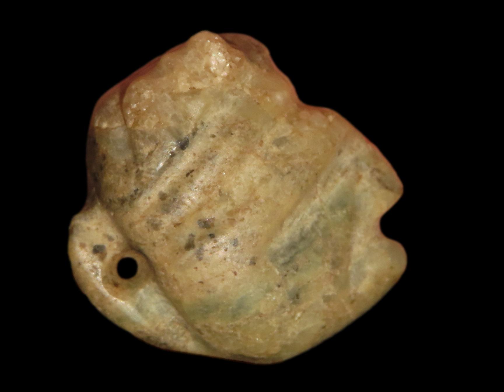 Maya Human Head Effigy Pendant, Mexico. 7/8 inches, greenstone. Ex Dora Buntjer, MN. Ex old Guatemala Collection.
