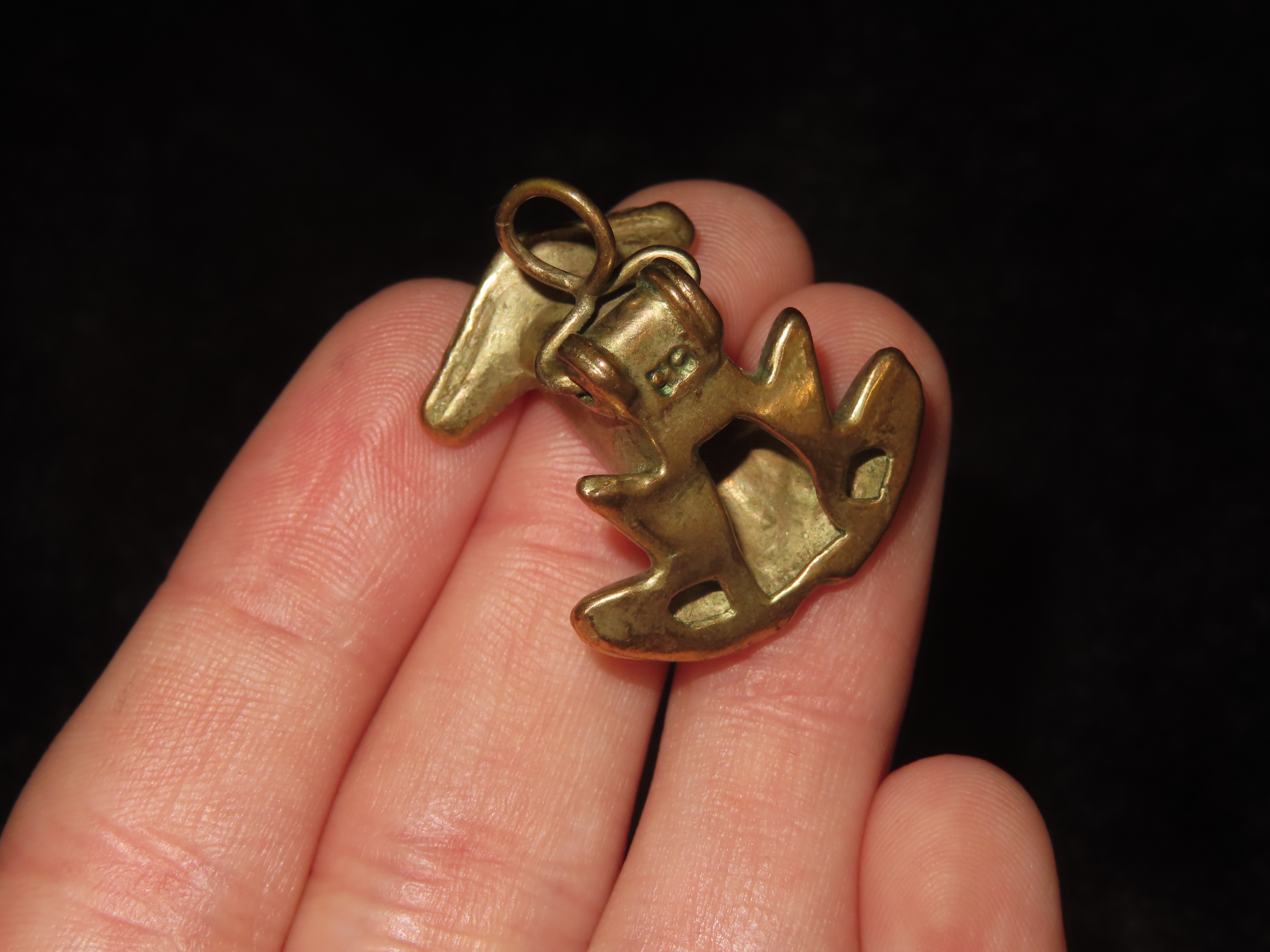 Pre-Columbian Tairona Tumbaga Gold Frog Effigy Pendant. Columbia, South America. Nicel Detailed Great Old Example. Exact Gold Content unknown