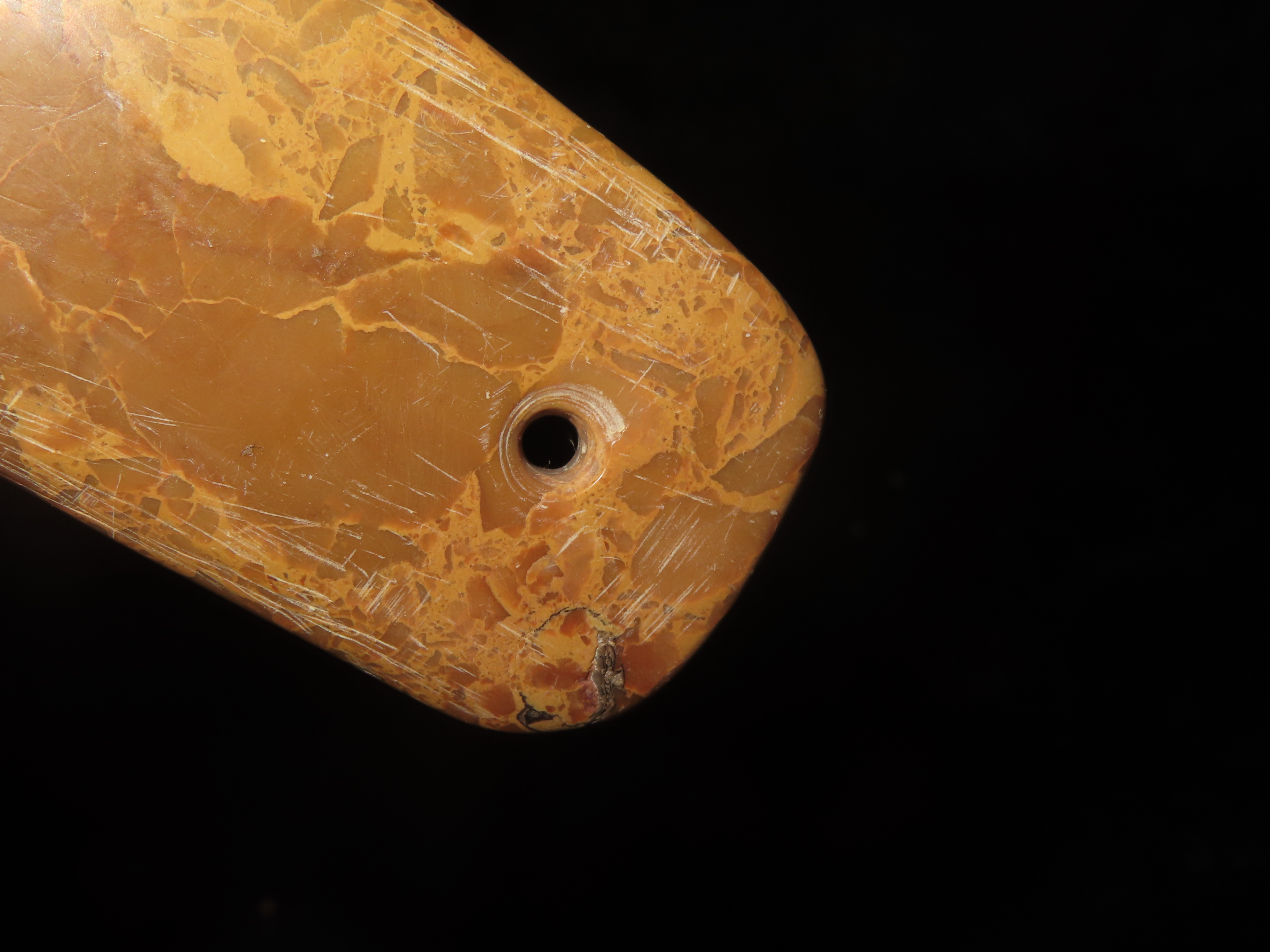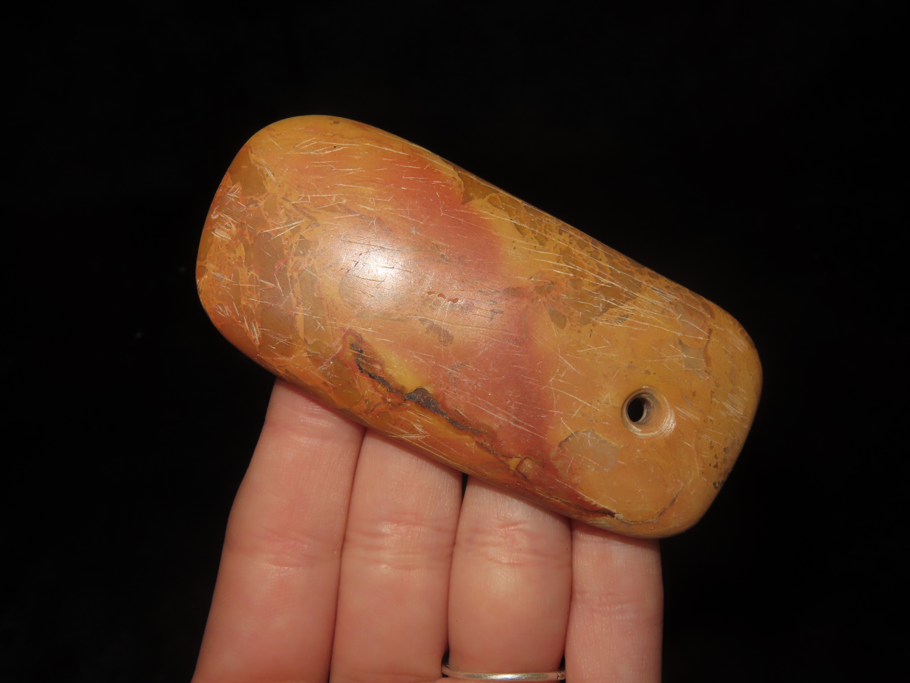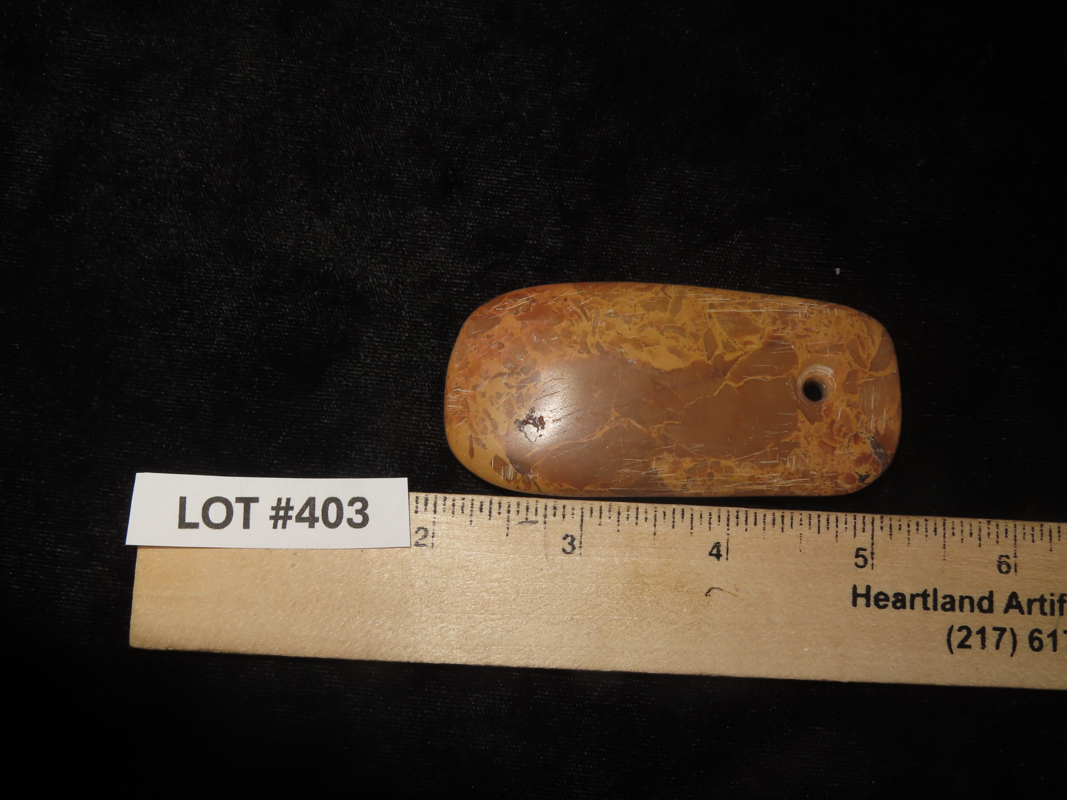Beautiful Hardstone Pendant, Mexico, Colorful Highly Polished Drilled Stone Gorget, 3 3/16″ Long. Great Colorful Example