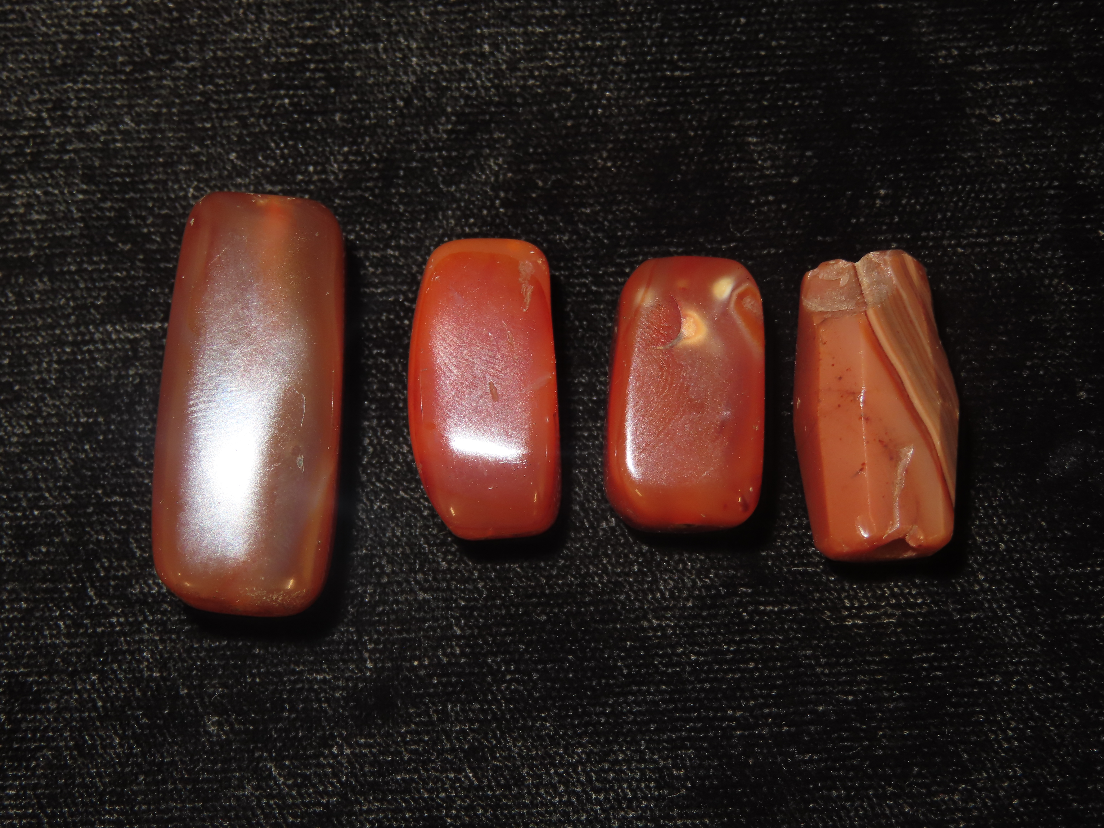 Large Tairona Tube Beads, Colombia, Pre Columbian, Colorful Carnelian Agate