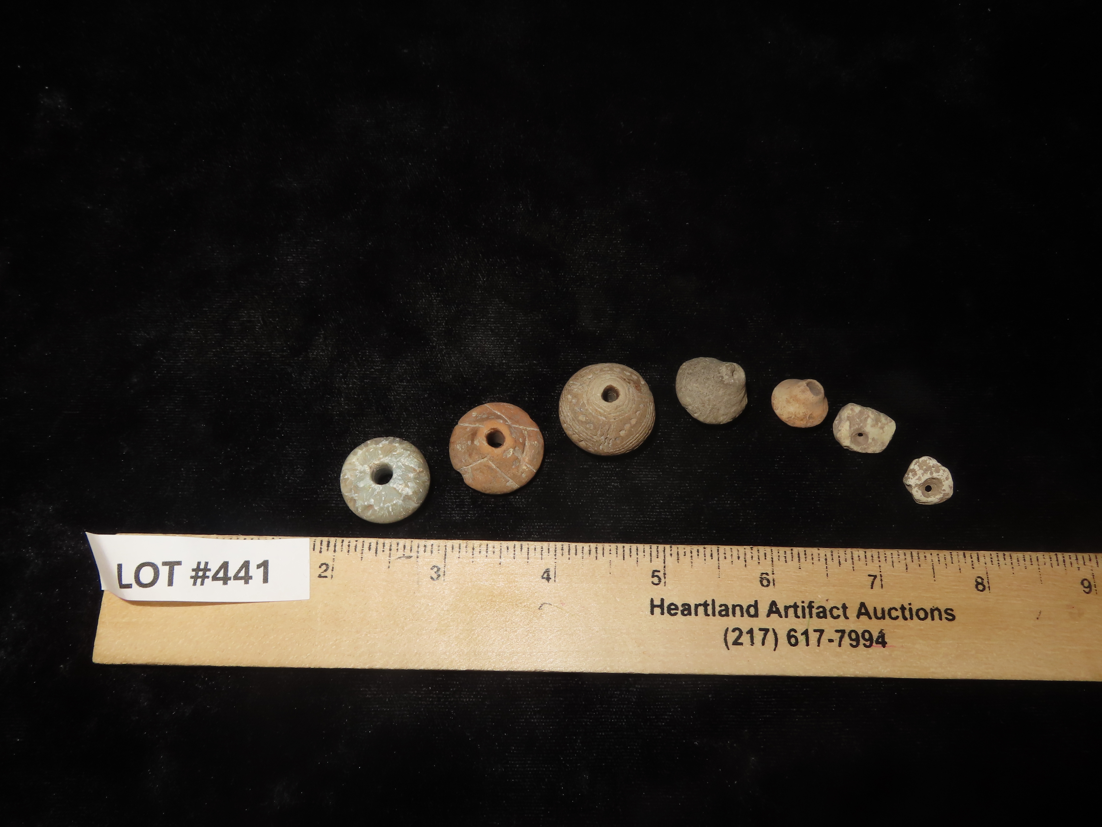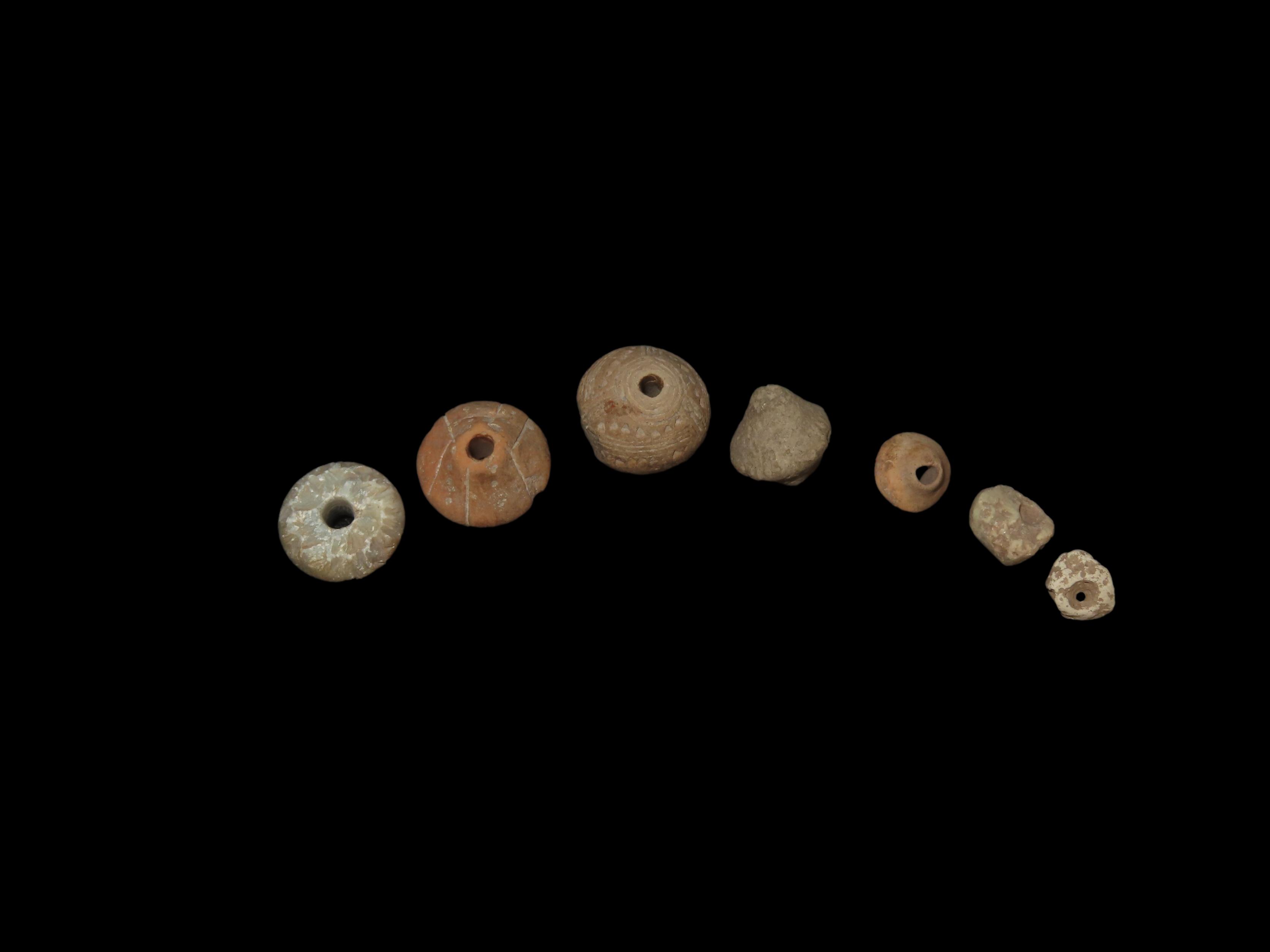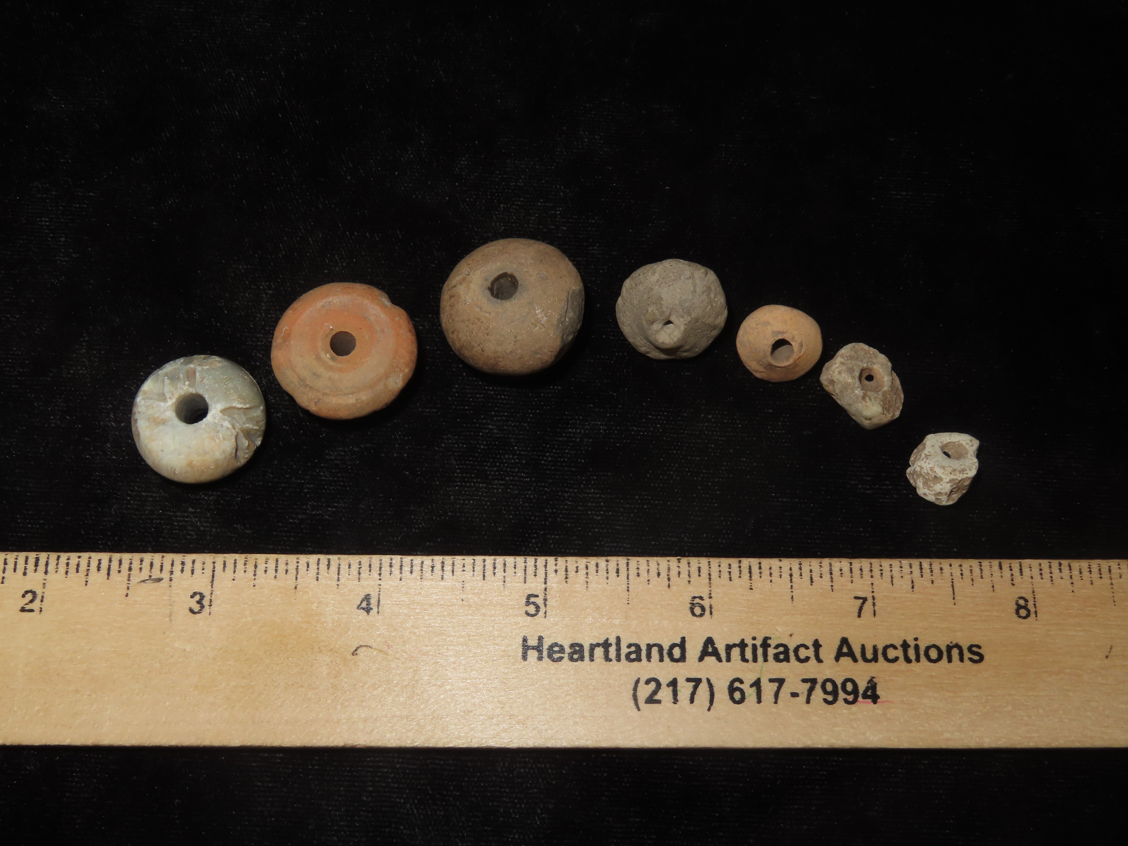 Nice Lot of Engraved Clay Beads, Mexico. Some Have very intricate Engravings. Pre-Columbian Spindle Whorl Beads, Pendants, Artifacts.