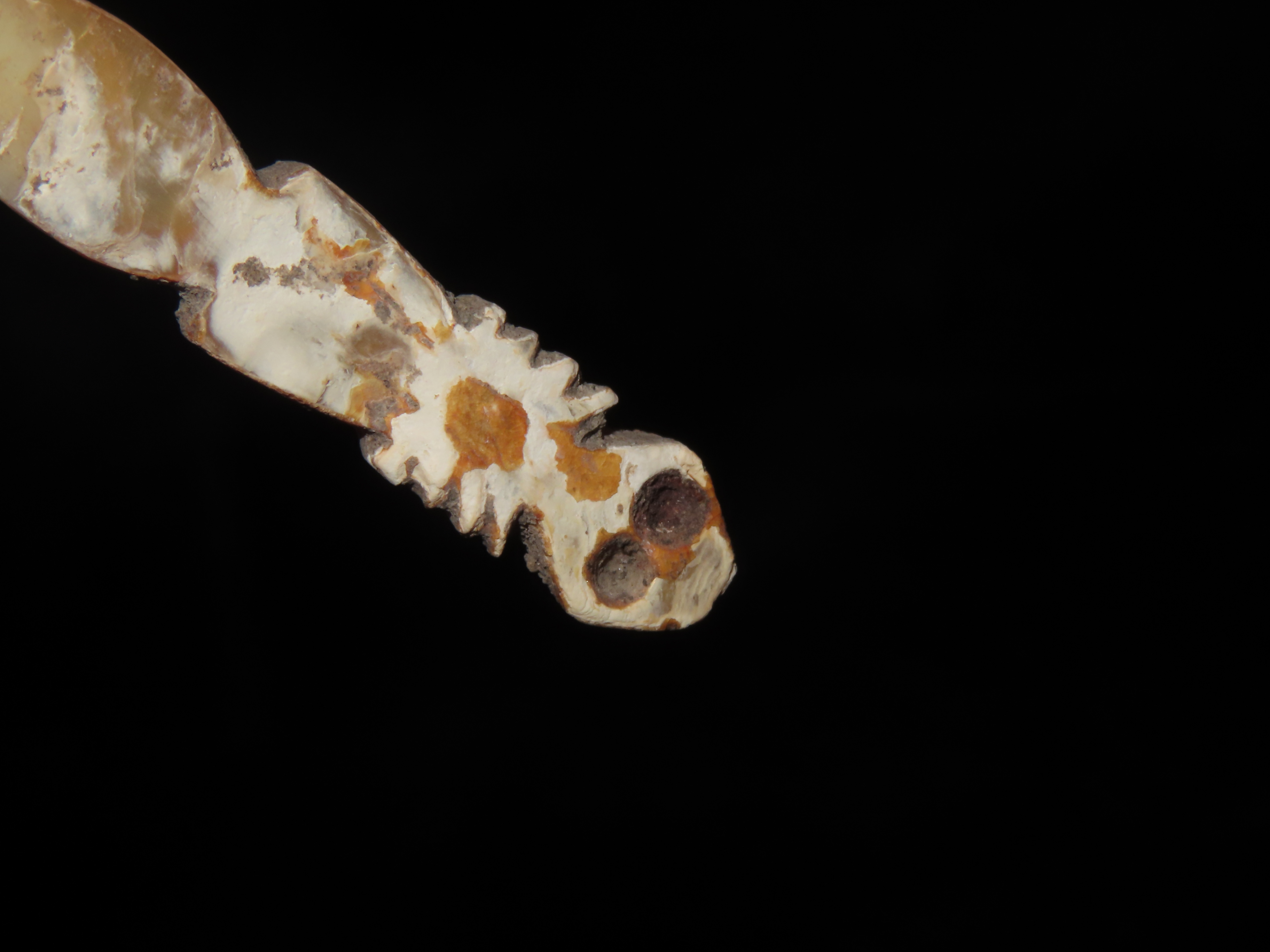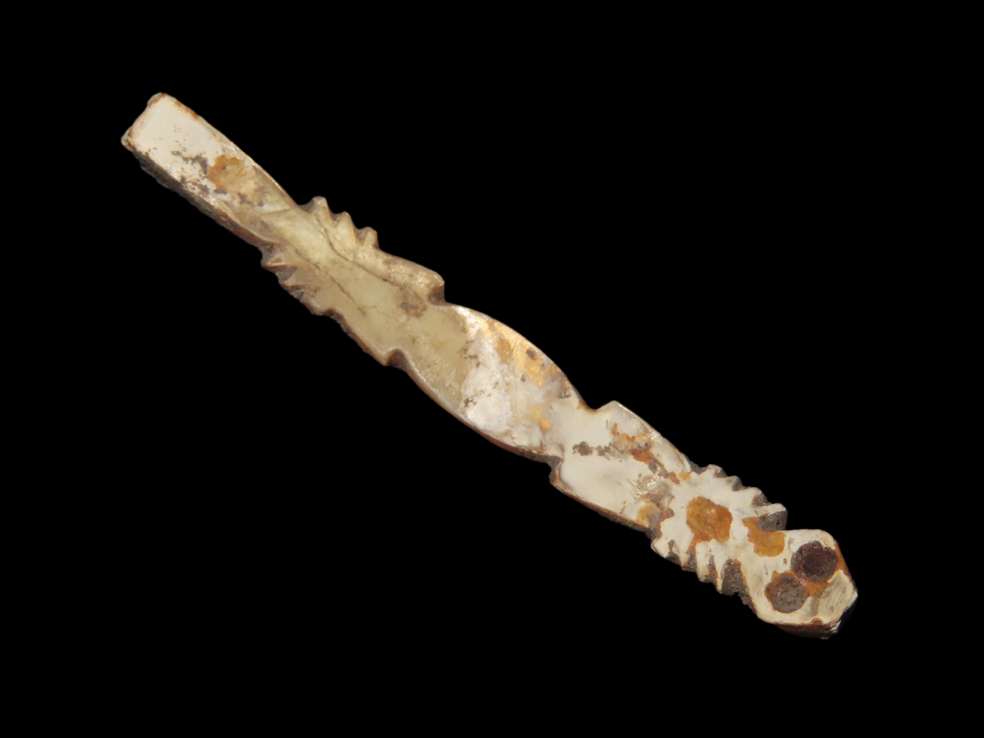 Incredible Pre-Columbian Lizard Effigy Pendant, Shell, Colima Culture, Mexico. Intricate Detailed Design, Heavy Patina.