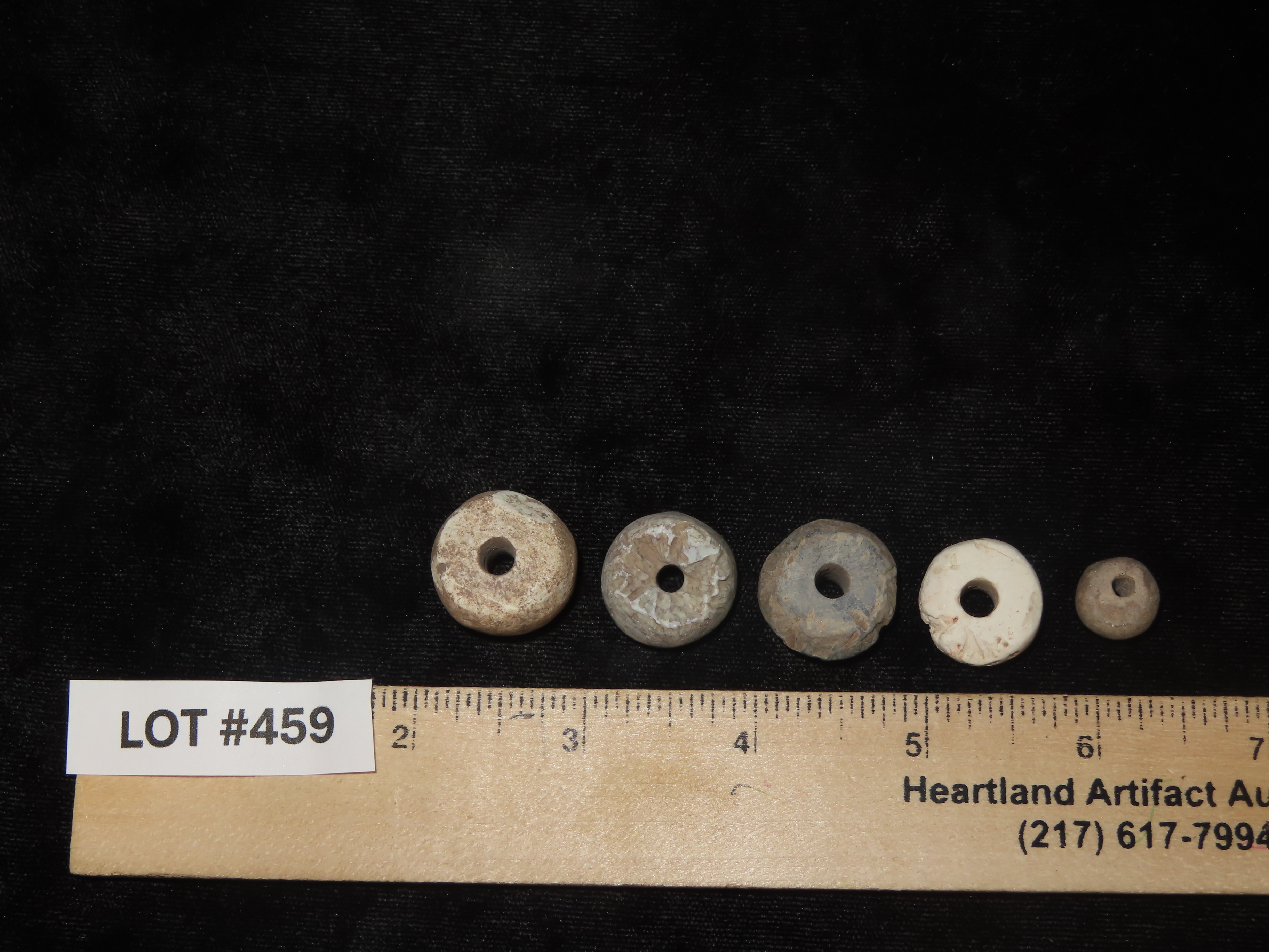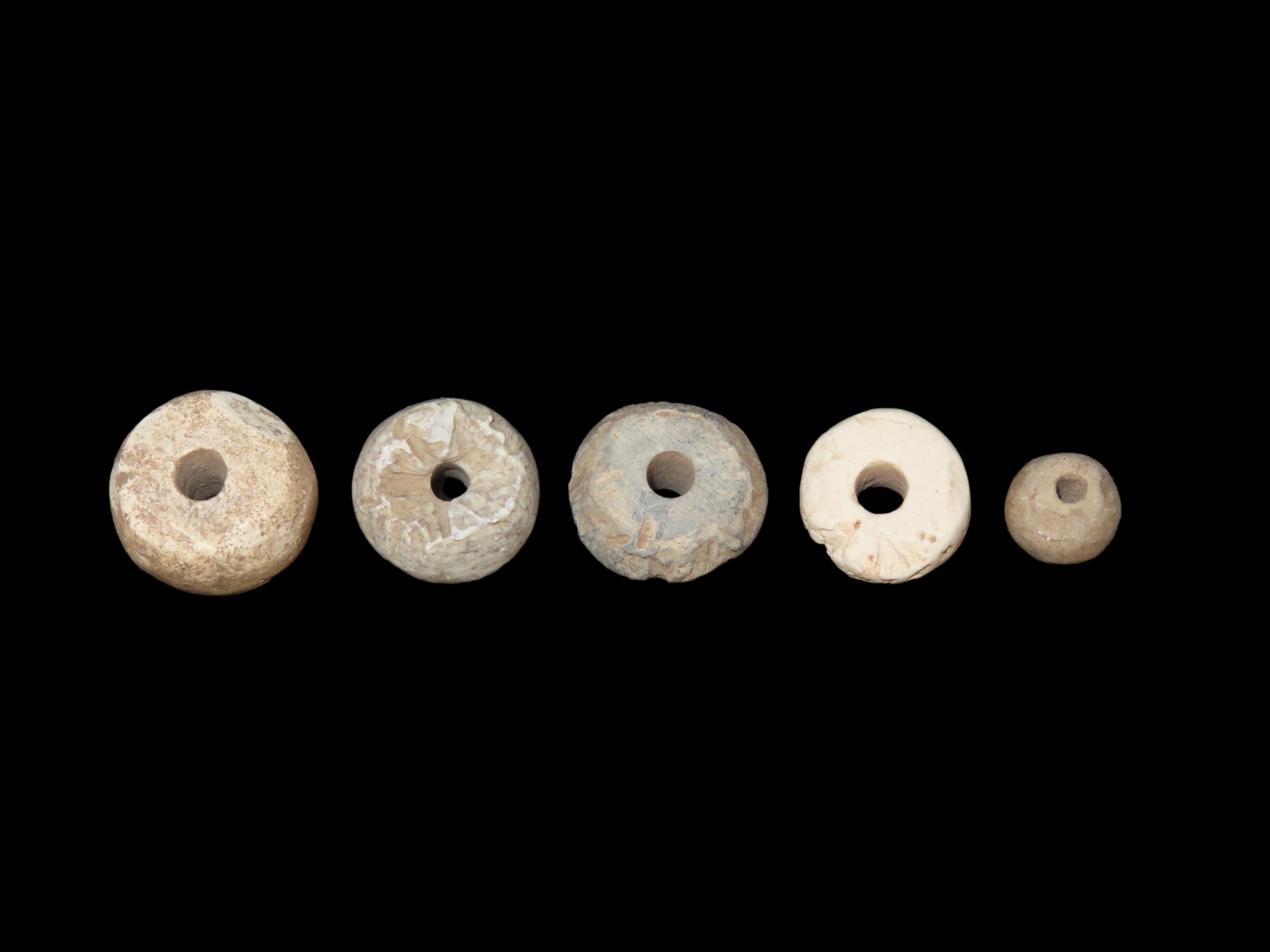 5 Large Pre Columbian Drilled Stone Beads, Mexico. Very Large examples