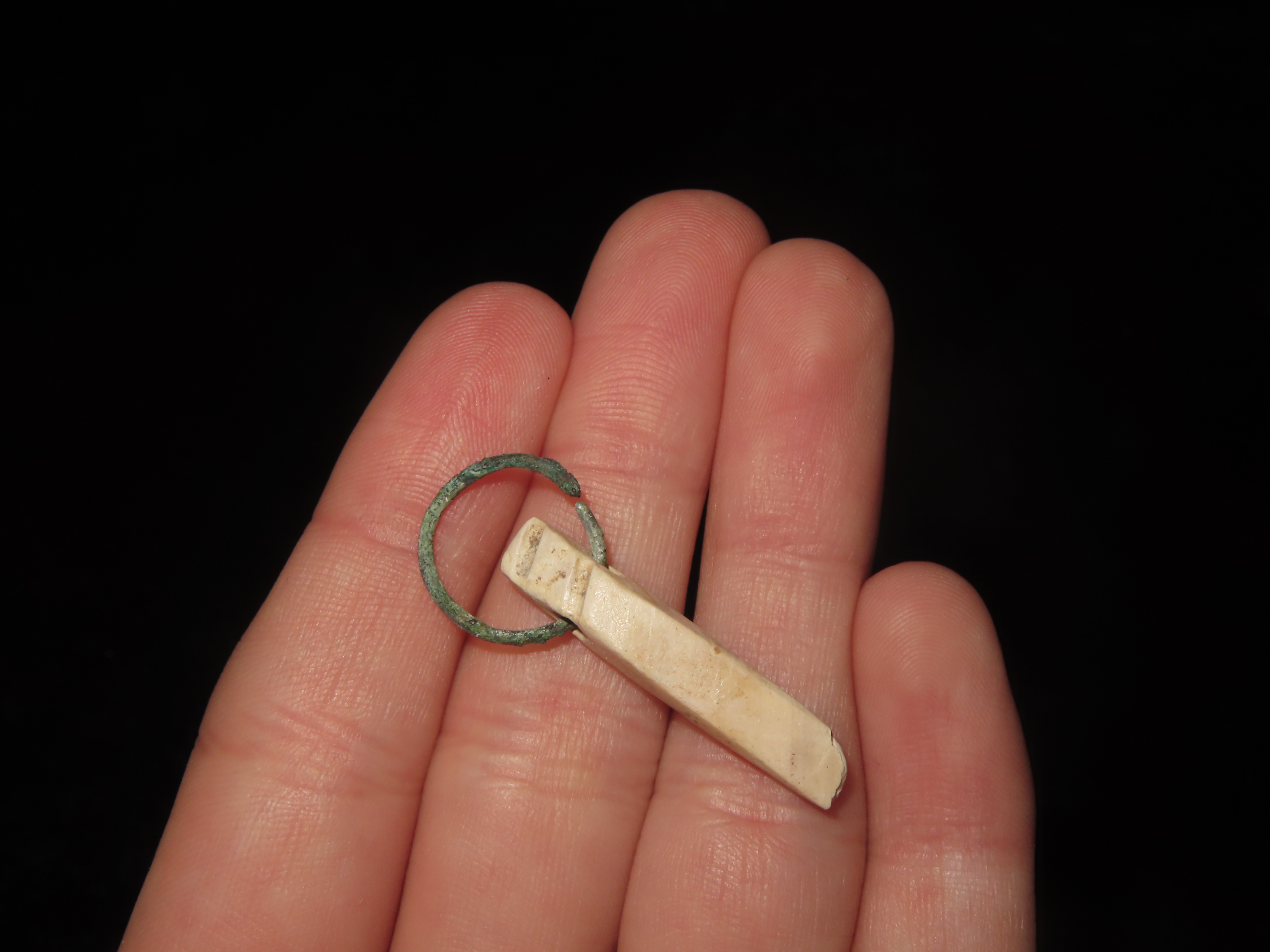 Interesting Pre-Columbian Shell & Copper Bead / Pendant, Earring, Bangle. Original Set As Found. Mexico