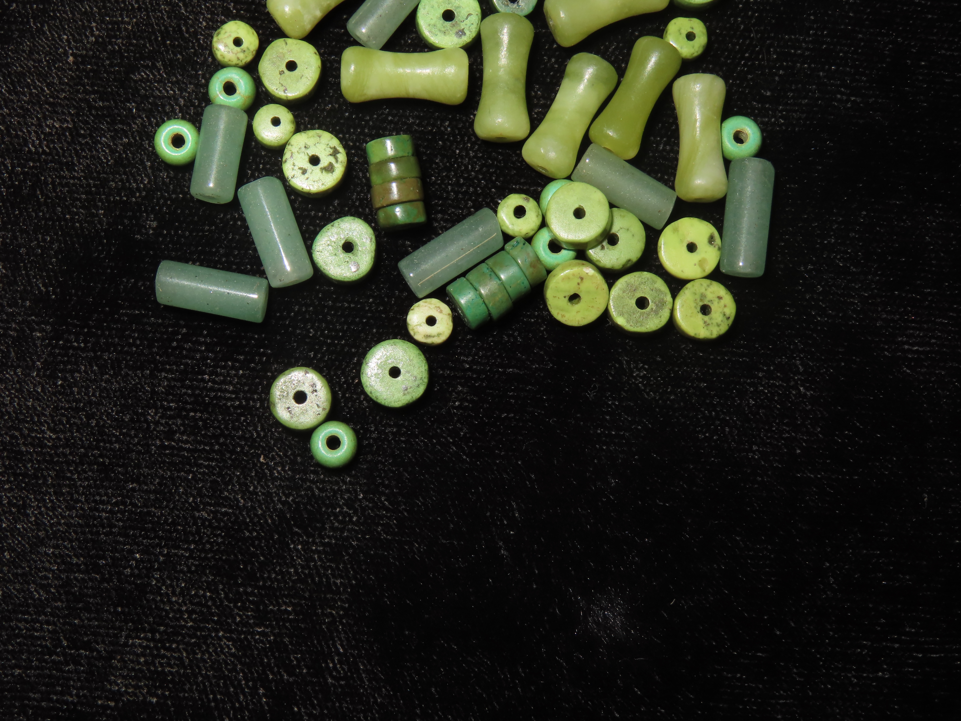 Lot of Mayan Style Jade & Jadeite Beads from South America, Many Translucent Examples, Lots of Great Color, Nice Polish & Array Of Shapes & Styles
