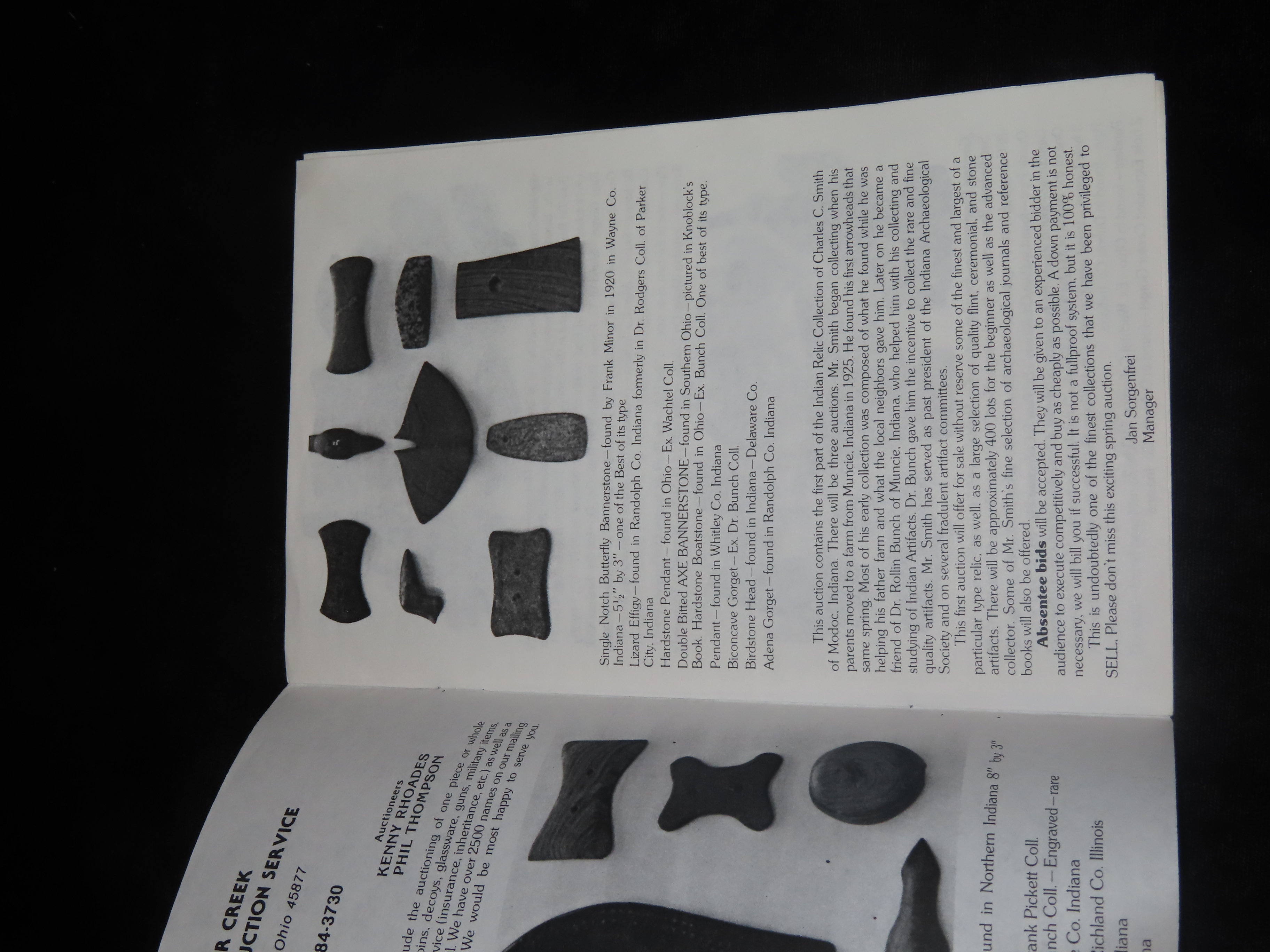 1983 C.C. Smith Indian Artifact Collection Auction Catalog, Part 1, Painter Creek Auction Service, Bannerstone, Birdstons, Dovetail, Pipes, Tons of Great Old Time Relics