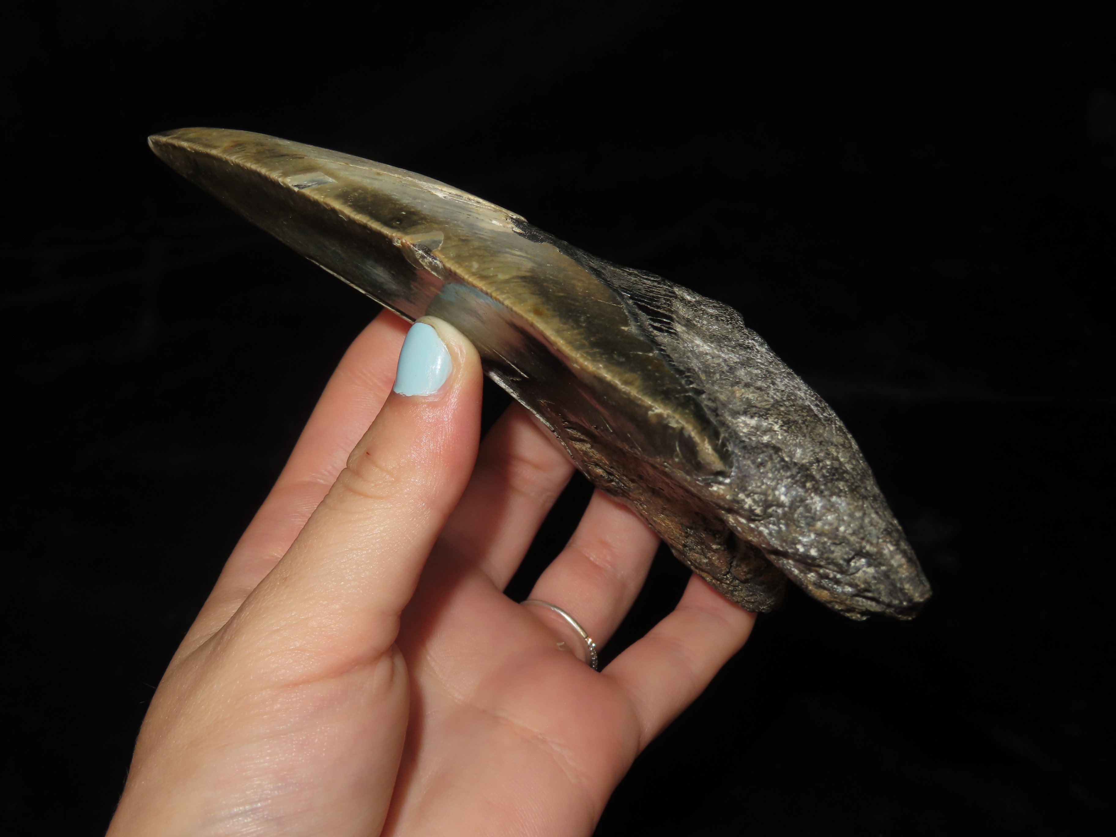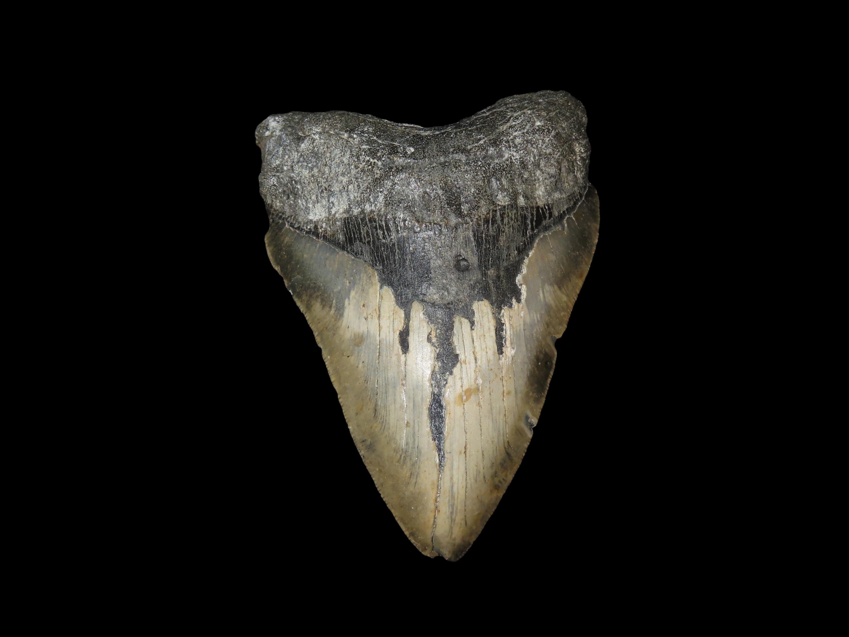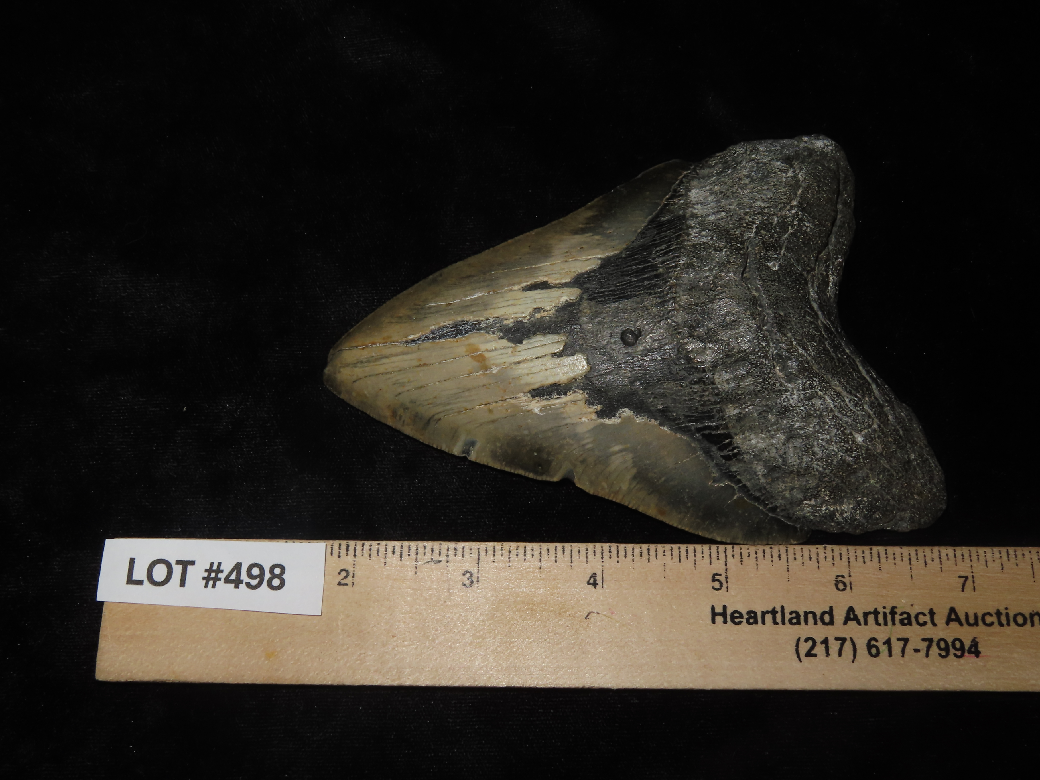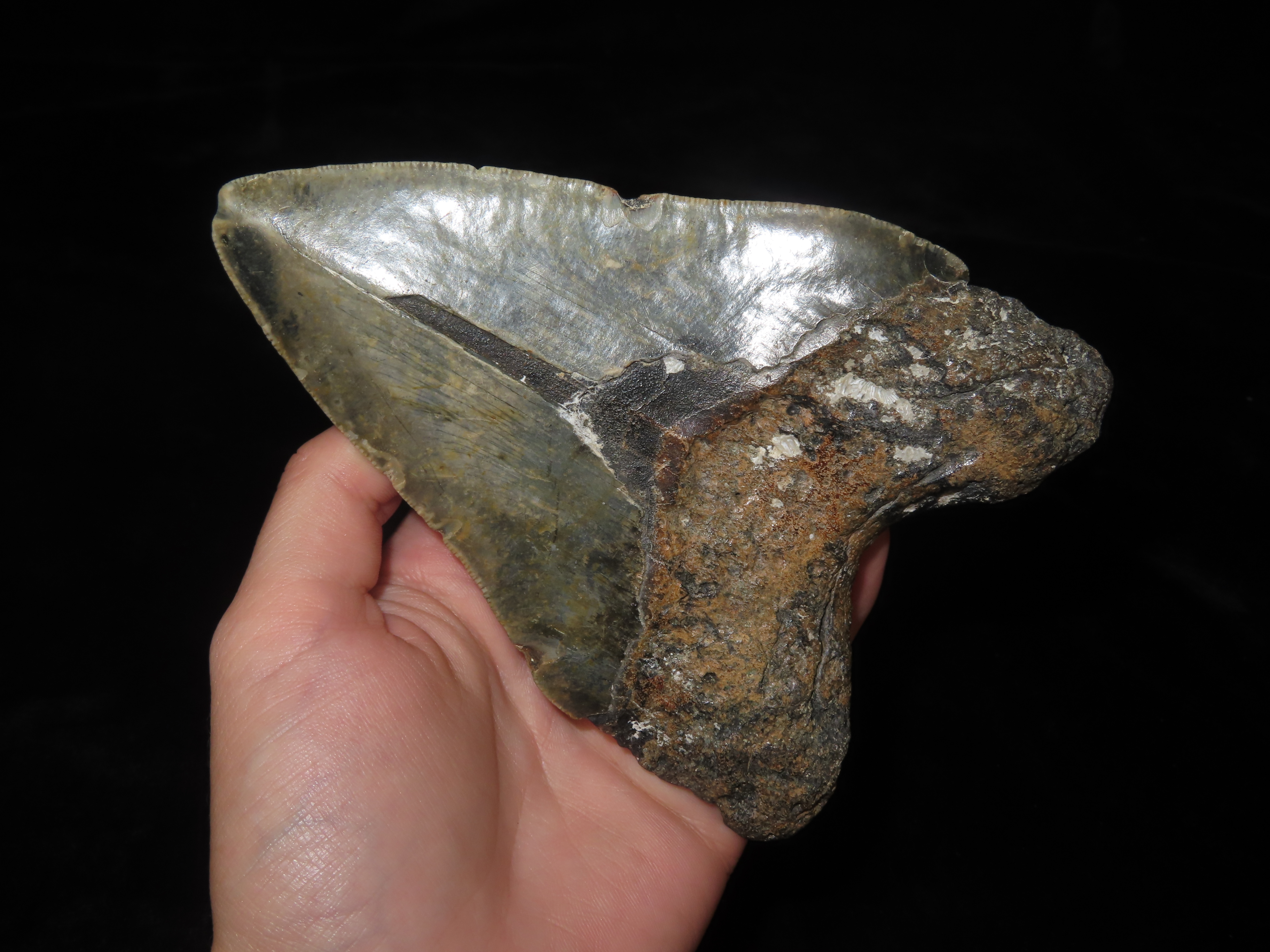 Incredible 5 5/16″ MASSIVE Megalodon Shark Tooth, 2.5-23 Million Year Old Fossil found off the coast of the Carolinas. No Repair, No Resto, No Polishing. Super Example!