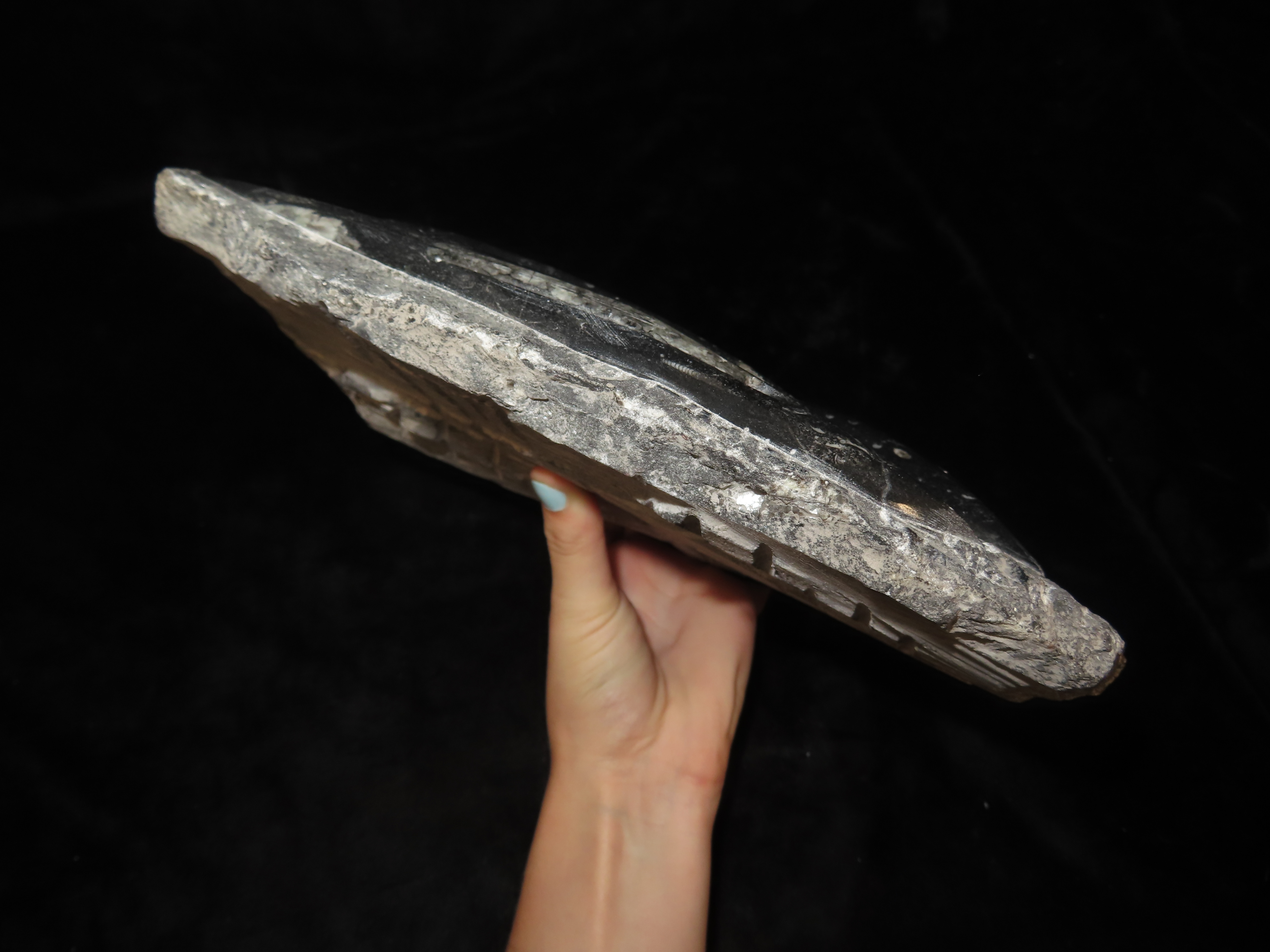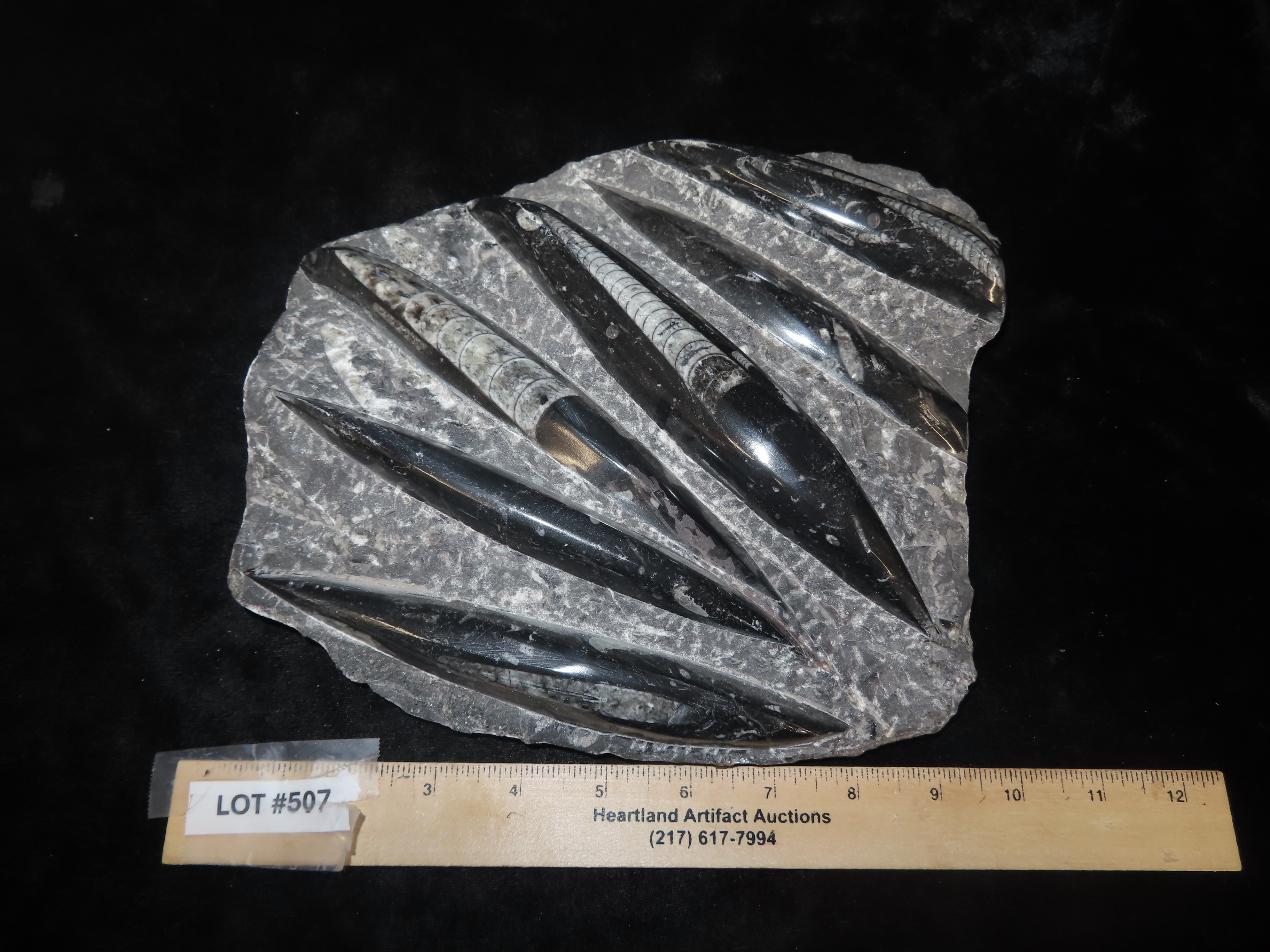 HUGE 11″ Polished Orthoceras Fossil Plate. Amazing Display Specimen. 200-500 Million Years Old, Triassic Period.