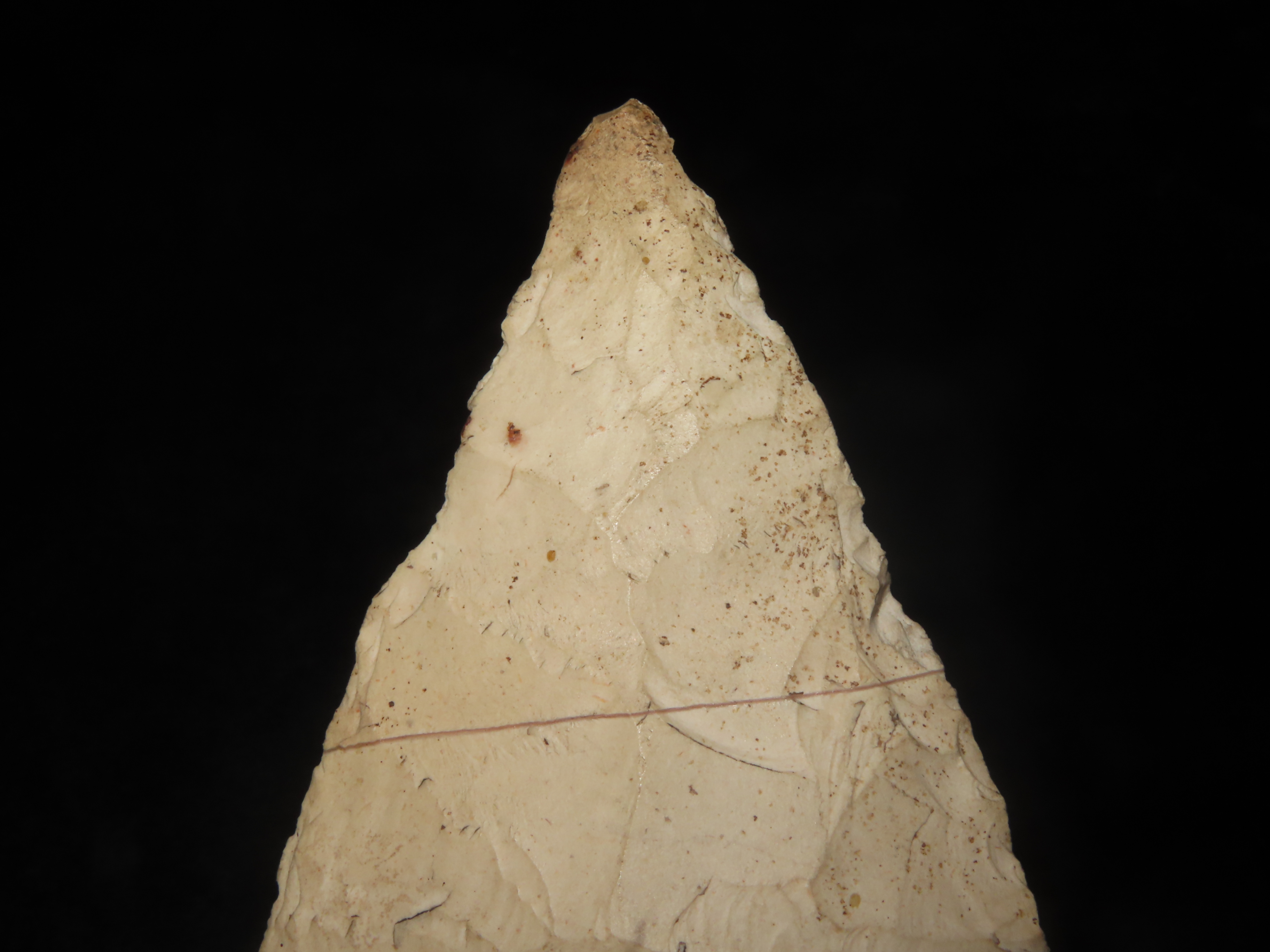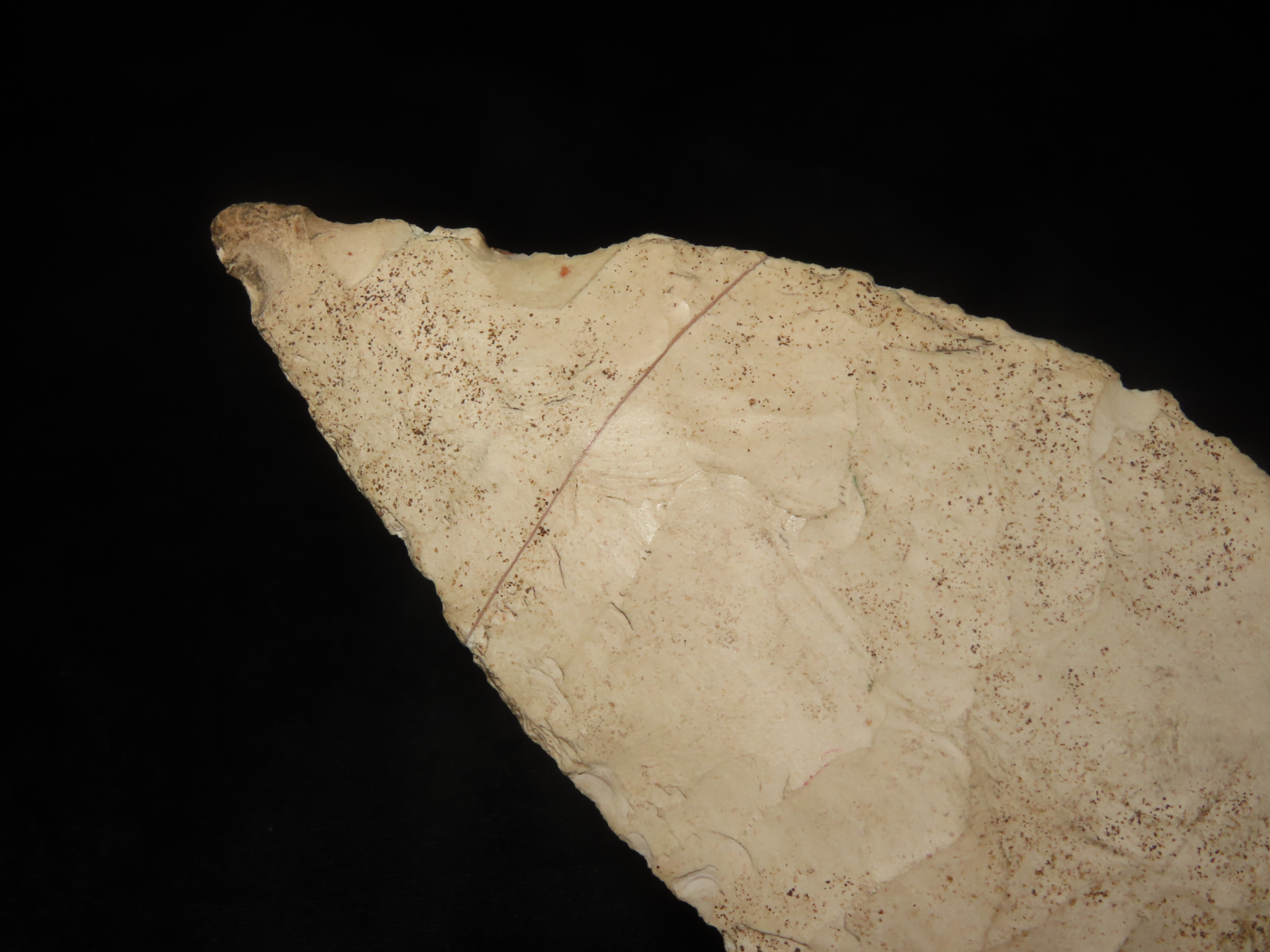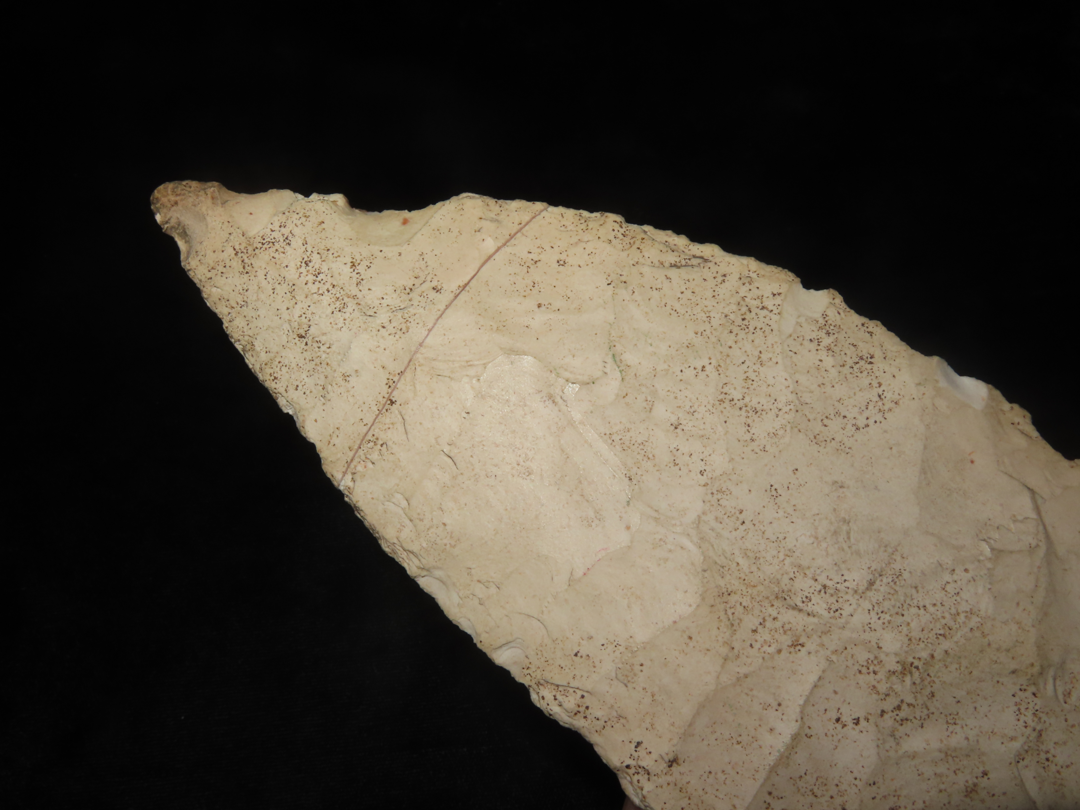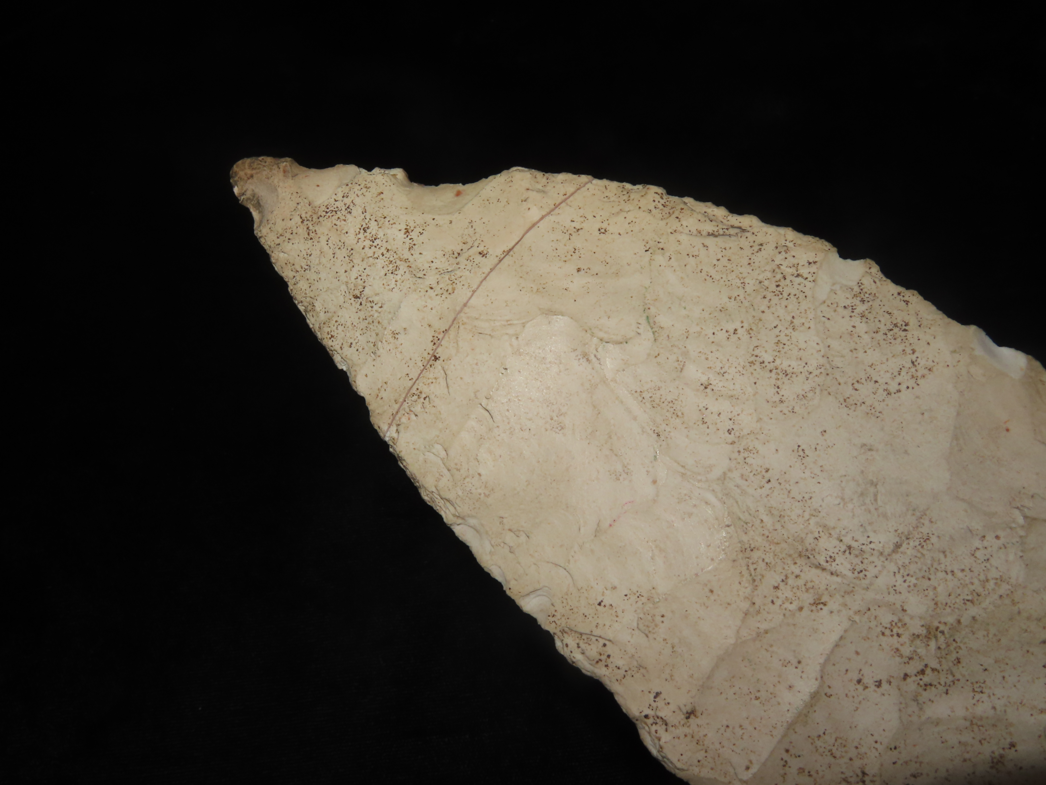 Huge 8 1/2" Morse Knife, Scott Co. Illinois, Dickey COA. Ex Floyd Ritter Collection, Very Large Colorful Well Patinated Example! Has a Beautiful Pinkish Quartz Vein running through the Material up near the tip. Heavily Patinated Example!