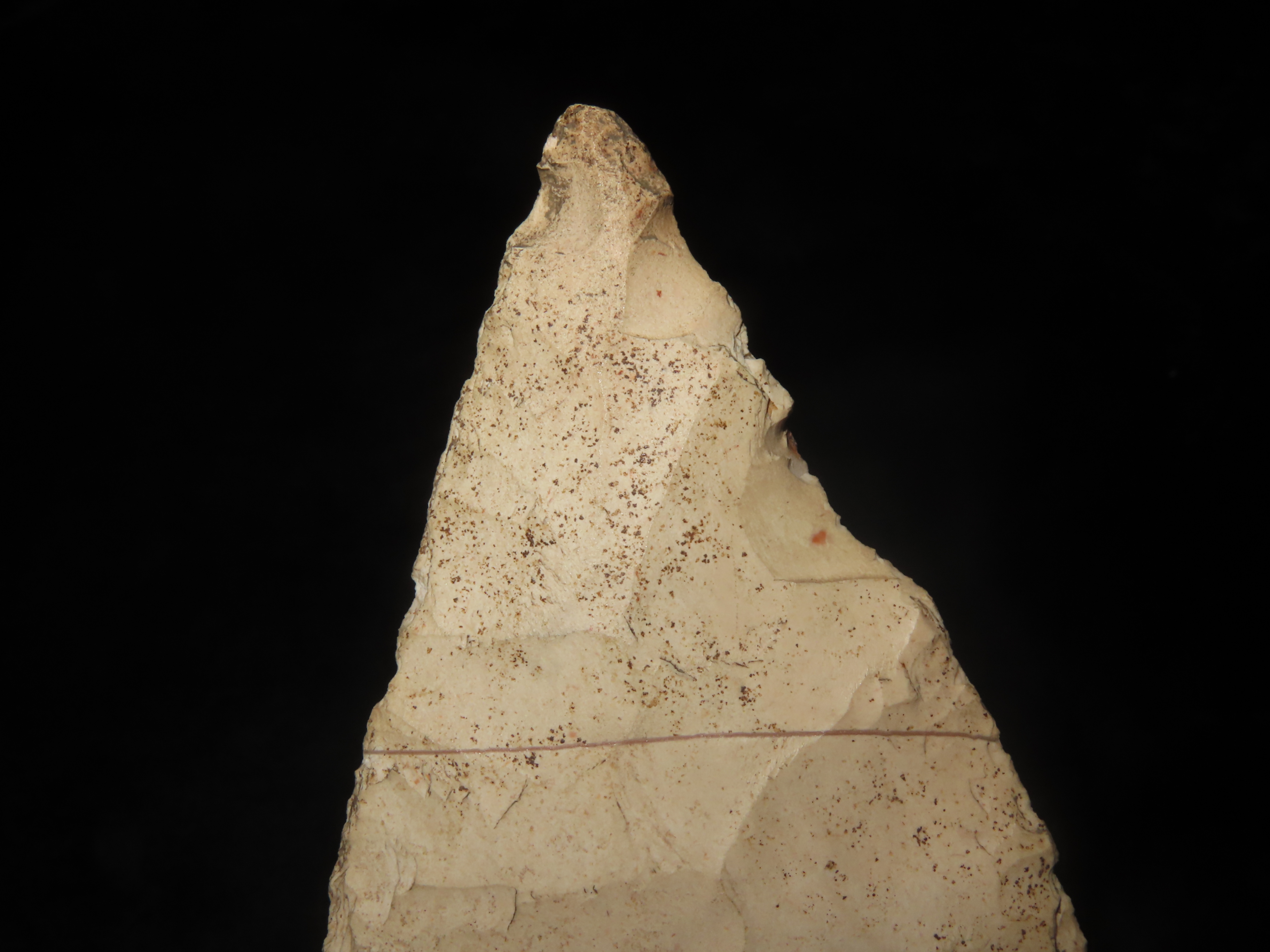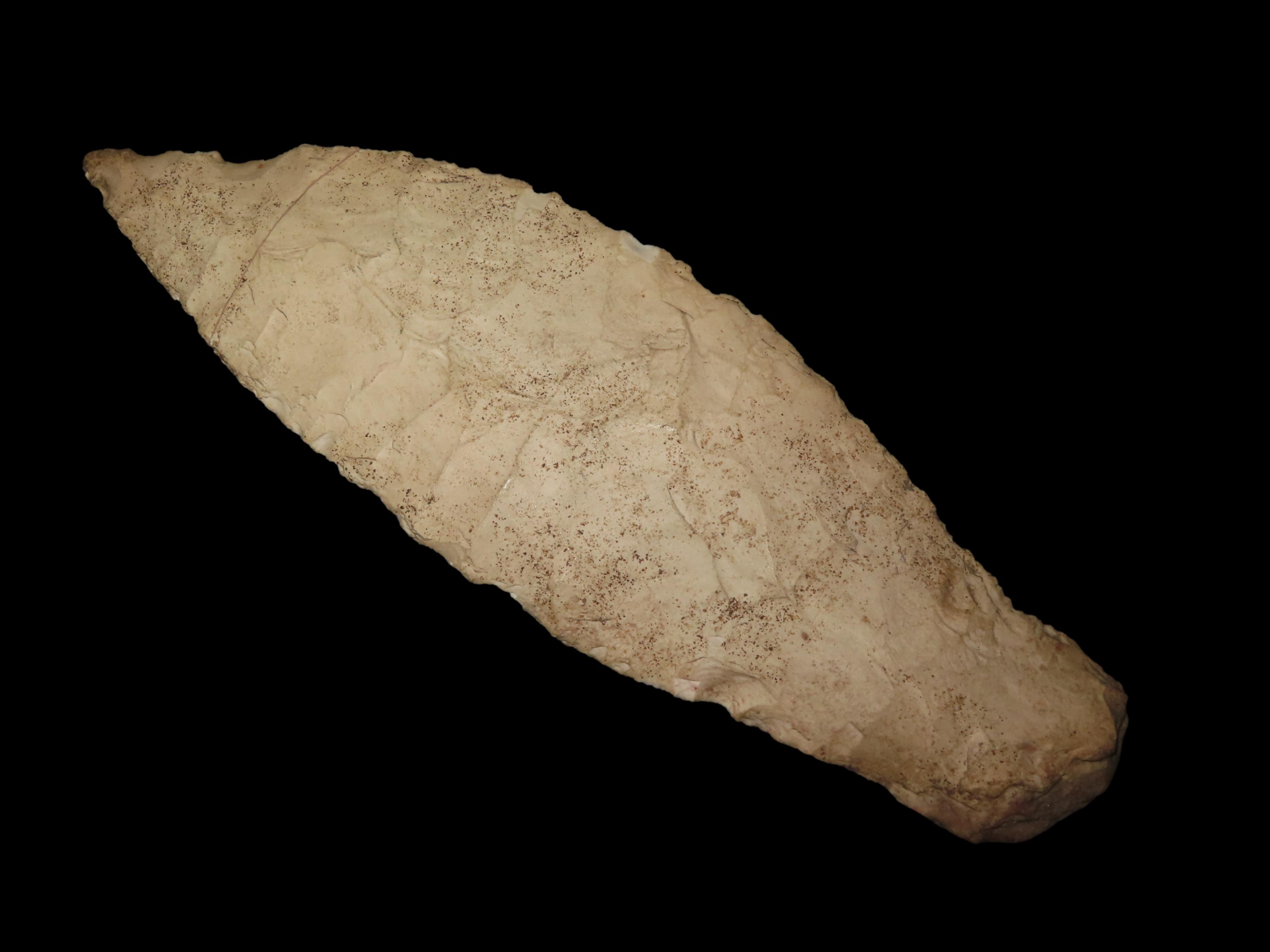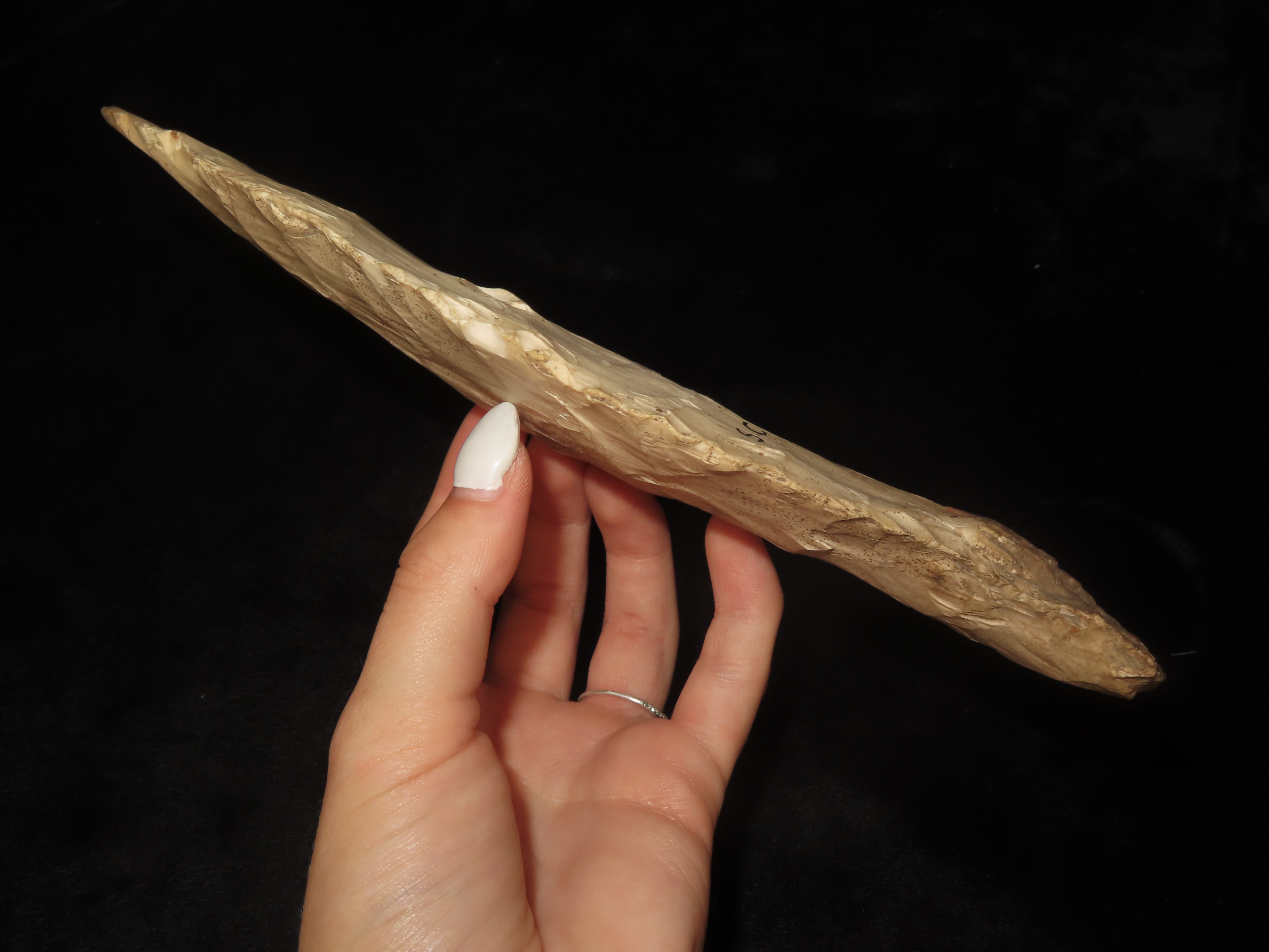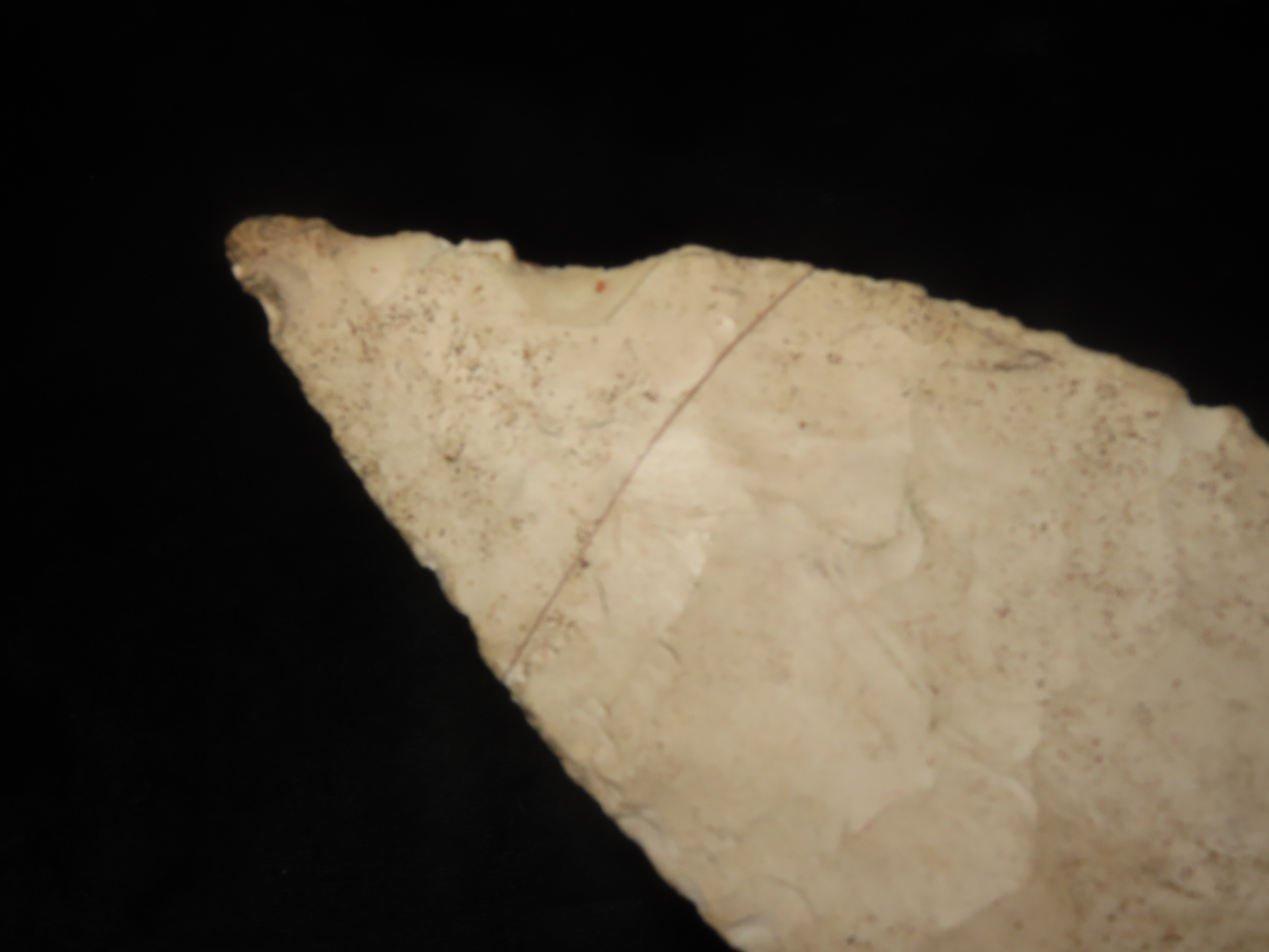 Huge 8 1/2" Morse Knife, Scott Co. Illinois, Dickey COA. Ex Floyd Ritter Collection, Very Large Colorful Well Patinated Example! Has a Beautiful Pinkish Quartz Vein running through the Material up near the tip. Heavily Patinated Example!