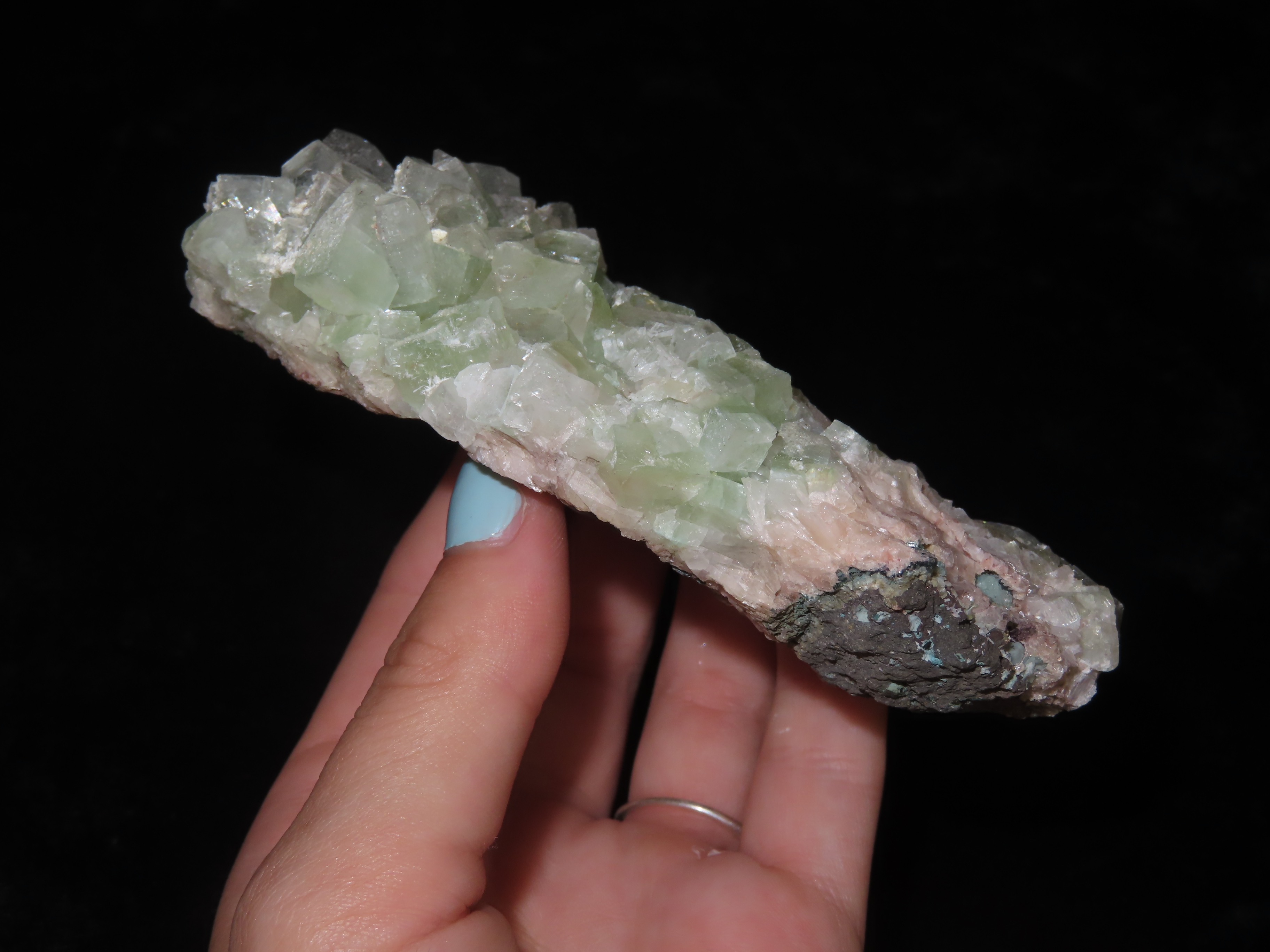 Large Chunk of Green Fluorite / Fluorspar from Southern Illinois. Beautiful Clear Greenish Tinted Color, with tons of well formed Cubes all grown together.