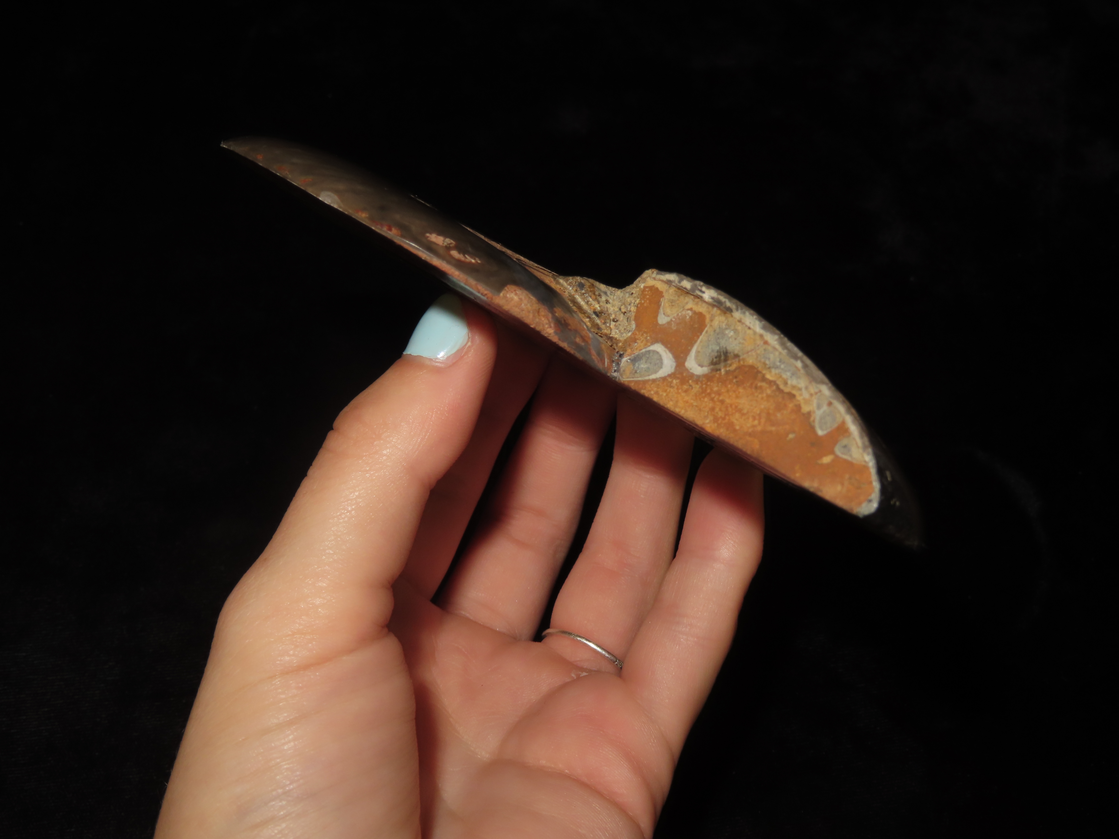 Huge 4 1/2″ Cut Ammonite Fossil, Amazing Colors, Highly Polished Example.