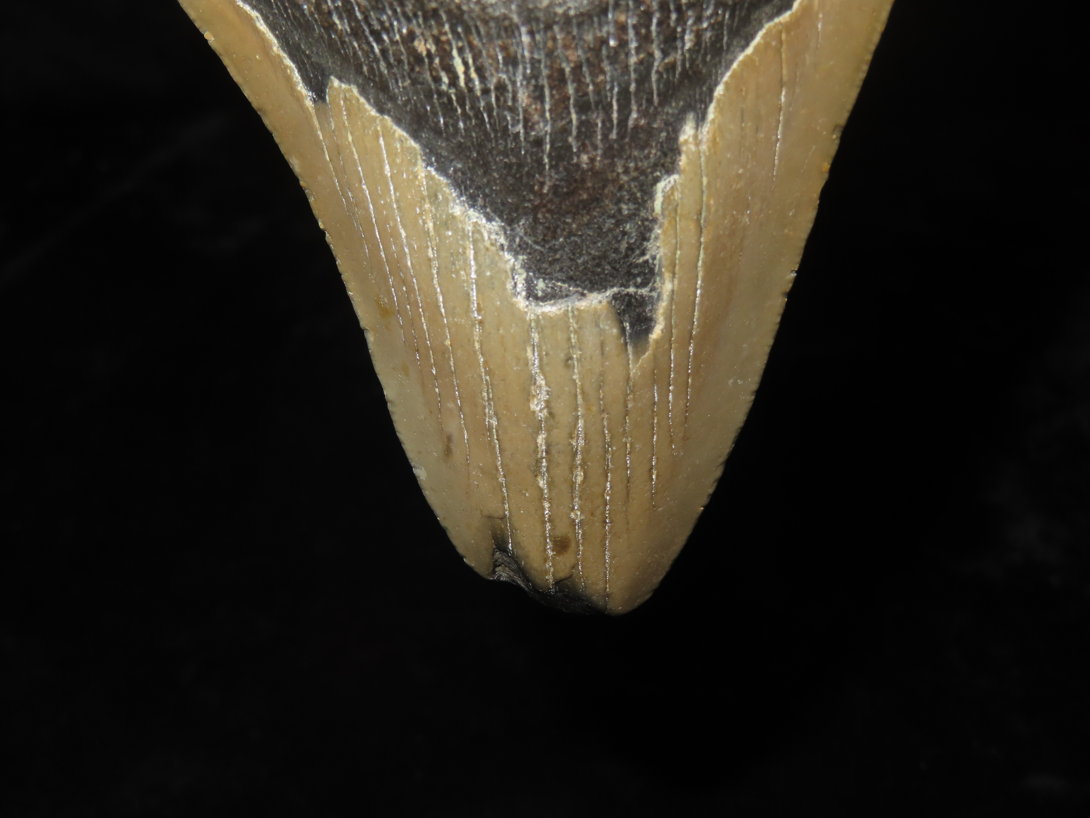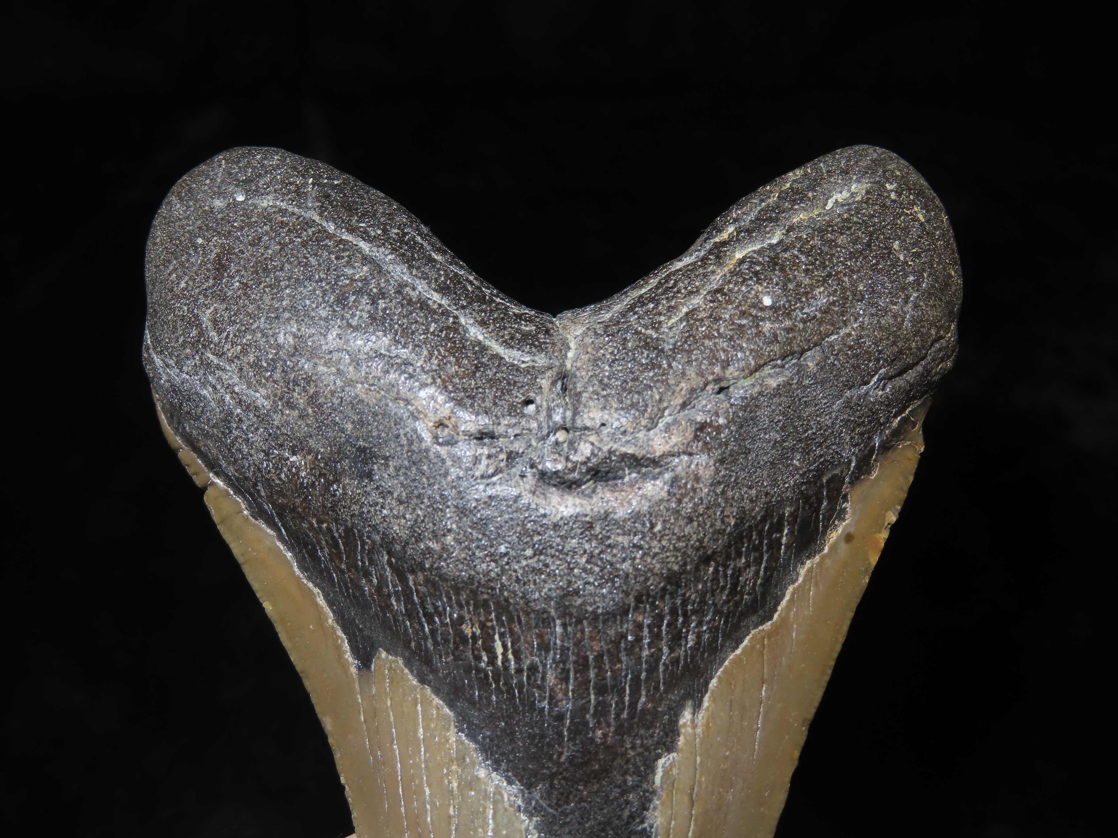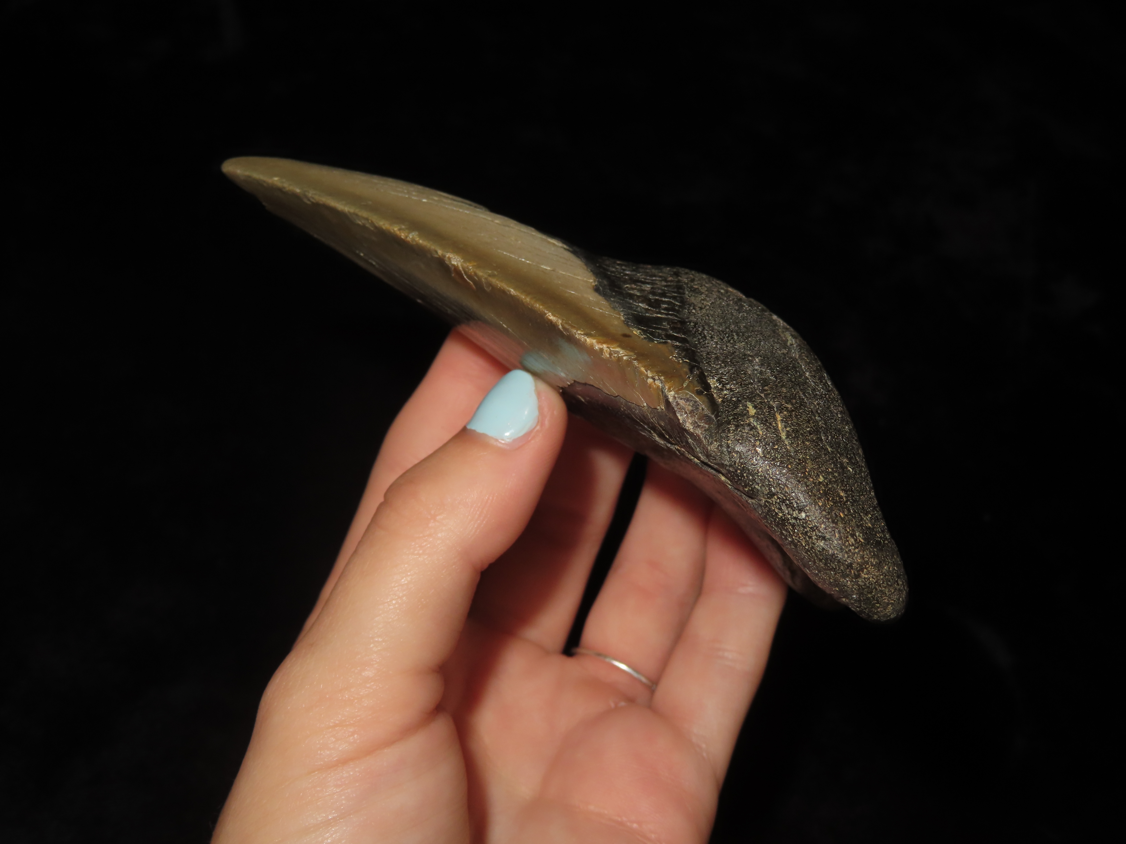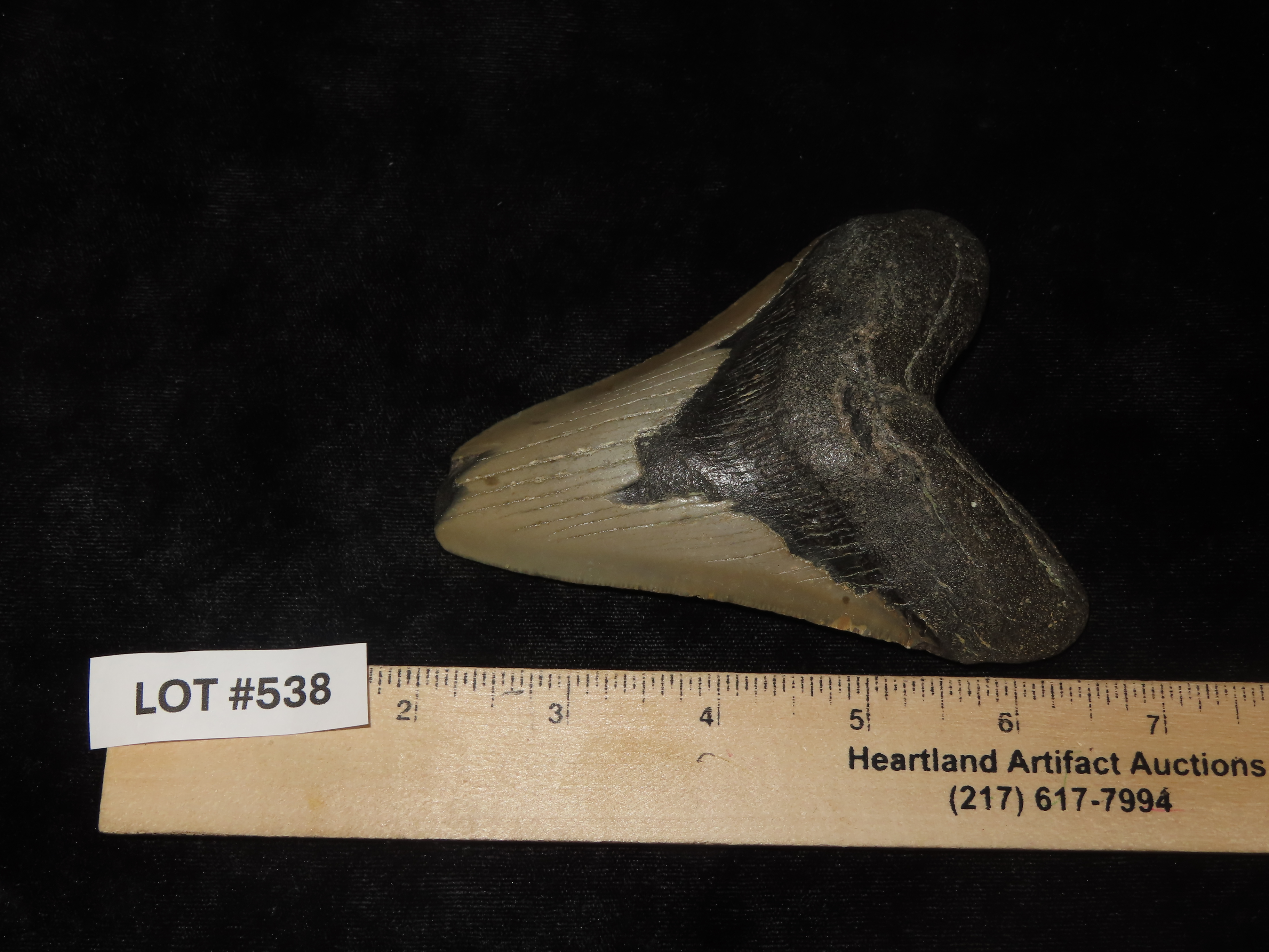 HUGE 4 9/16" Megalodon Shark Tooth, 2.5-23 Million Year Old Fossil found off the coast of the Carolinas. No Repair, No Resto, No Polishing. Great Example!