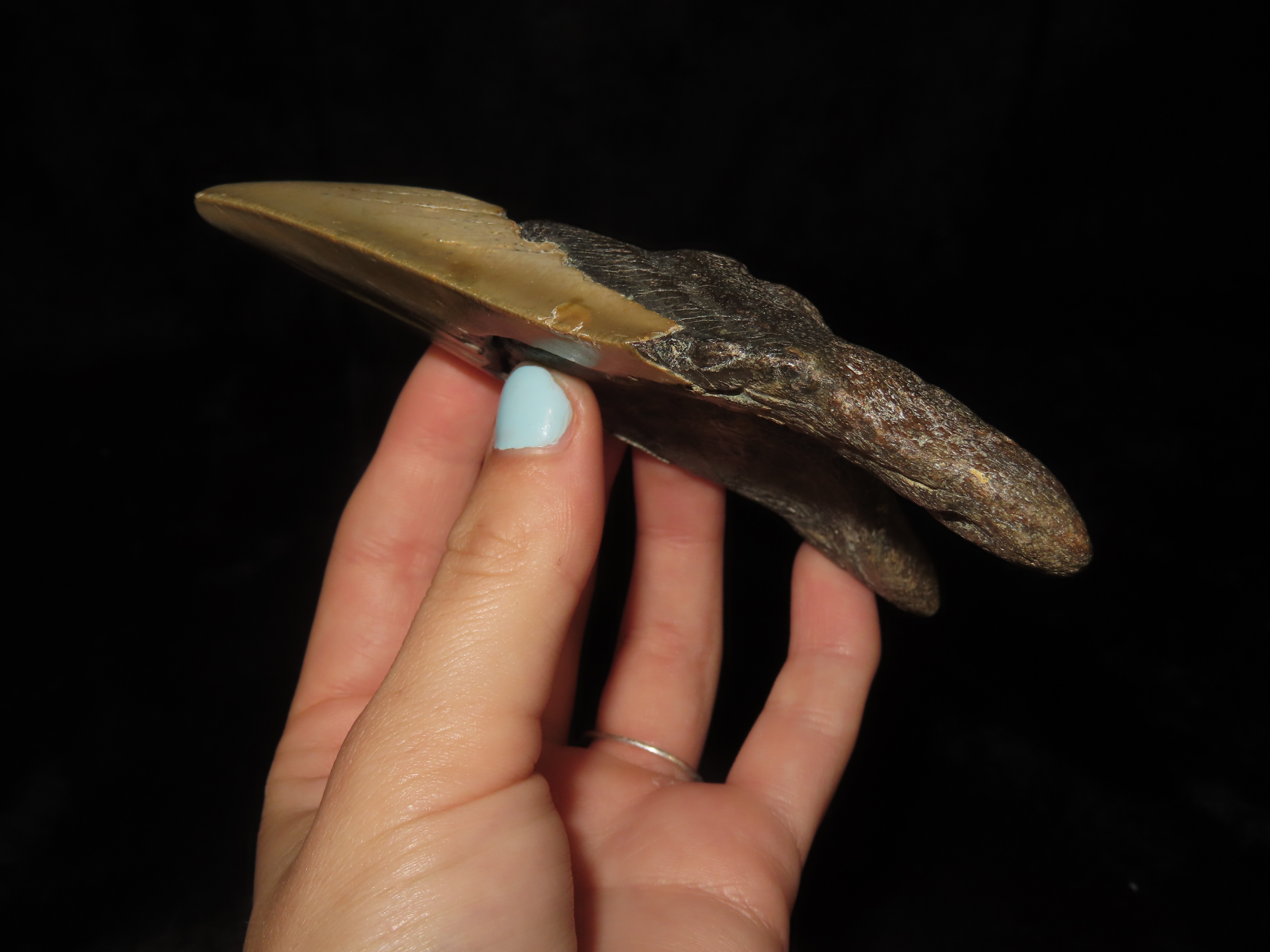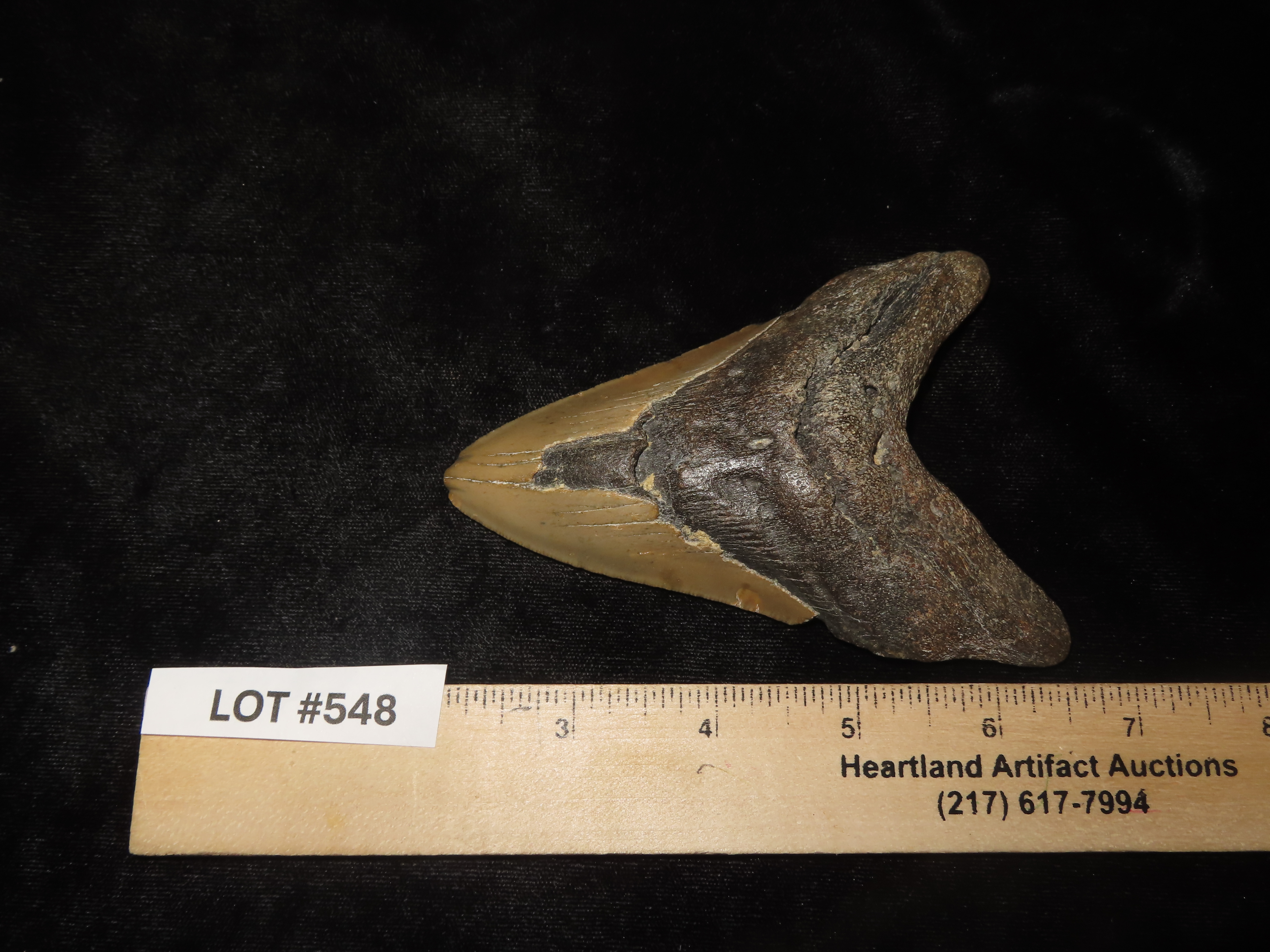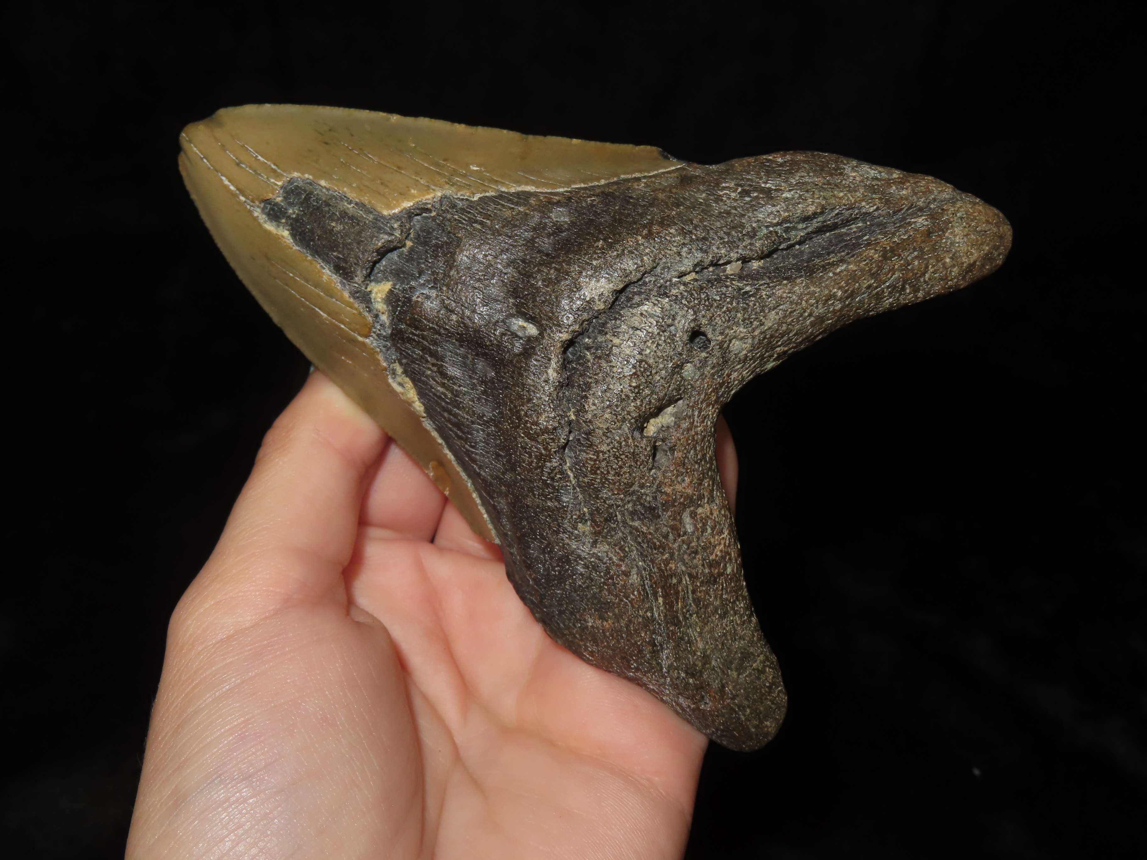 MASSIVE 4 3/4″ Megalodon Shark Tooth, 2.5-23 Million Year Old Fossil found off the coast of the Carolinas. No Repair, No Resto, No Polishing. Great Example!