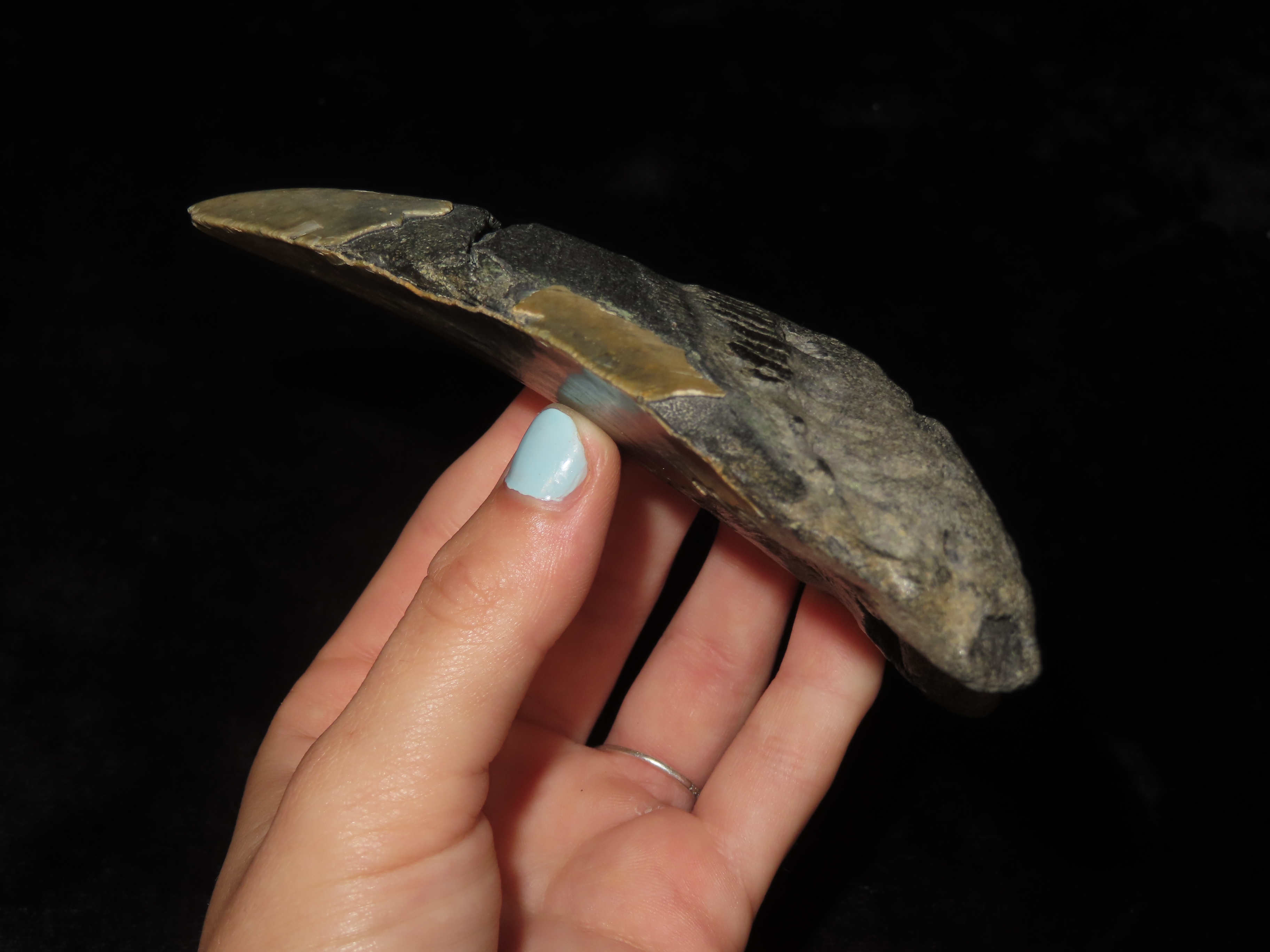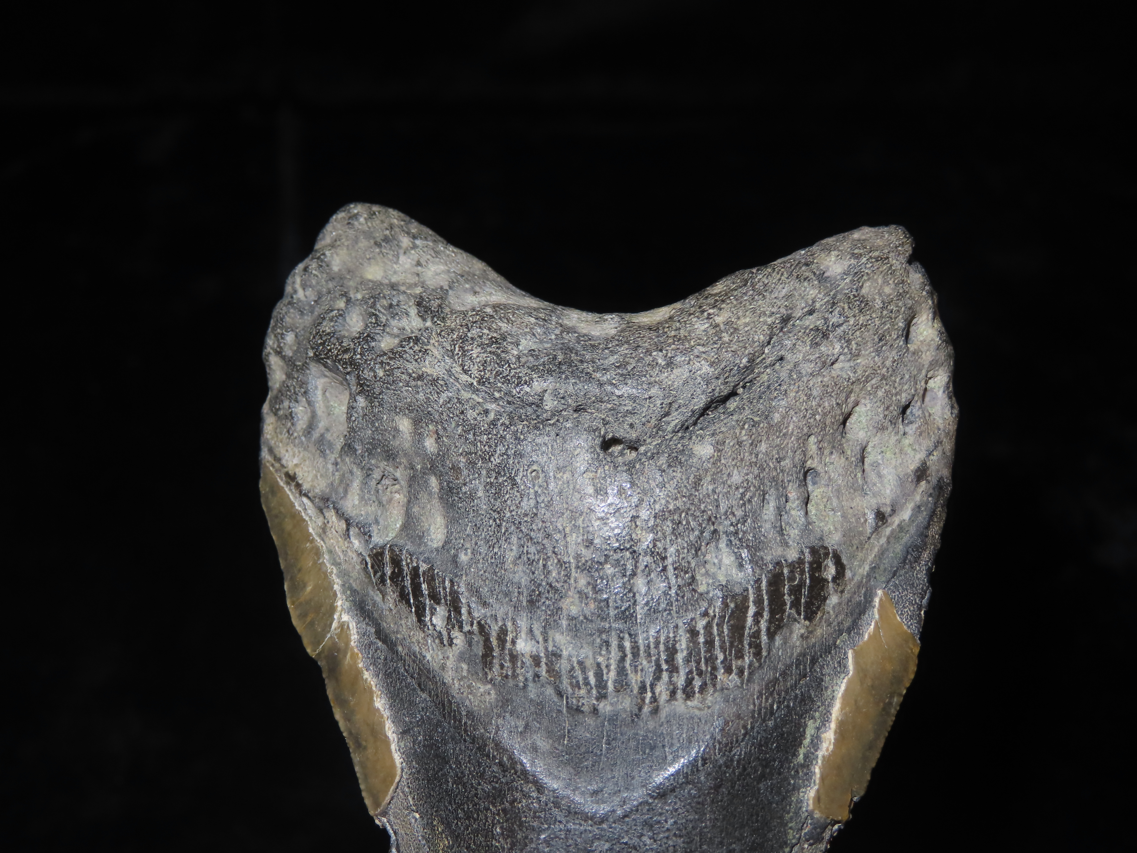 MASSIVE 4 3/4" Megalodon Shark Tooth, 2.5-23 Million Year Old Fossil found off the coast of the Carolinas. No Repair, No Resto, No Polishing. Great Example!