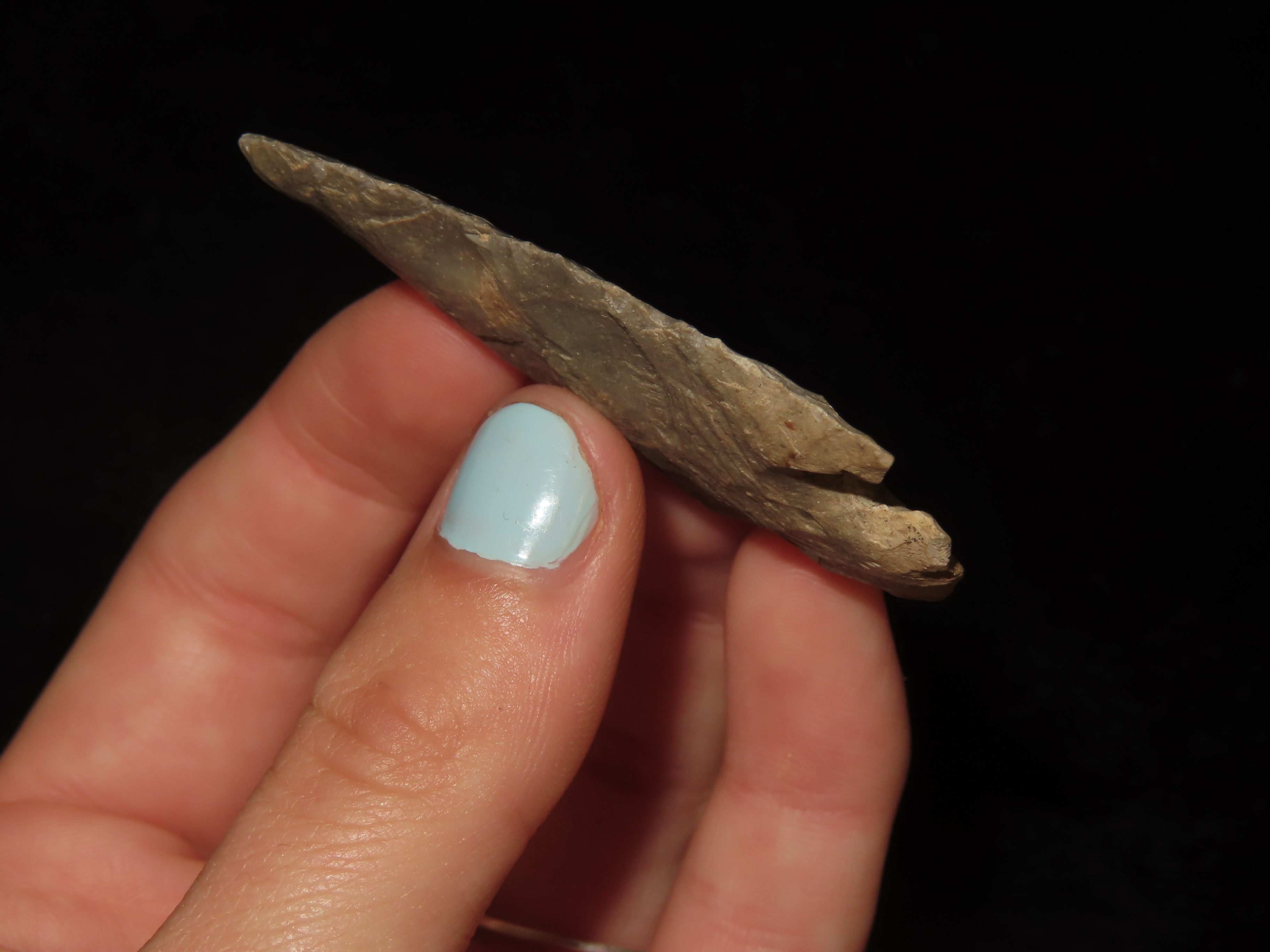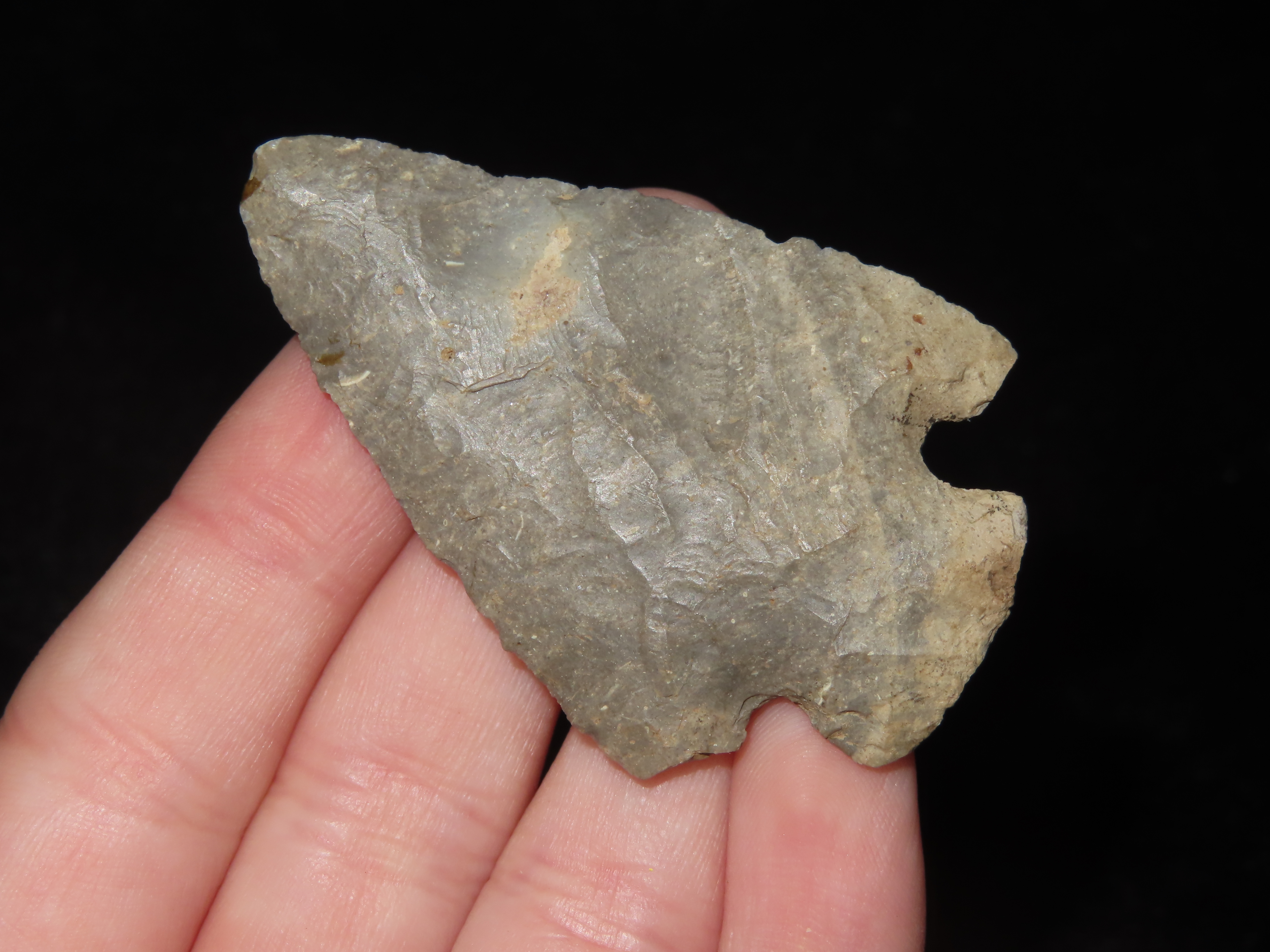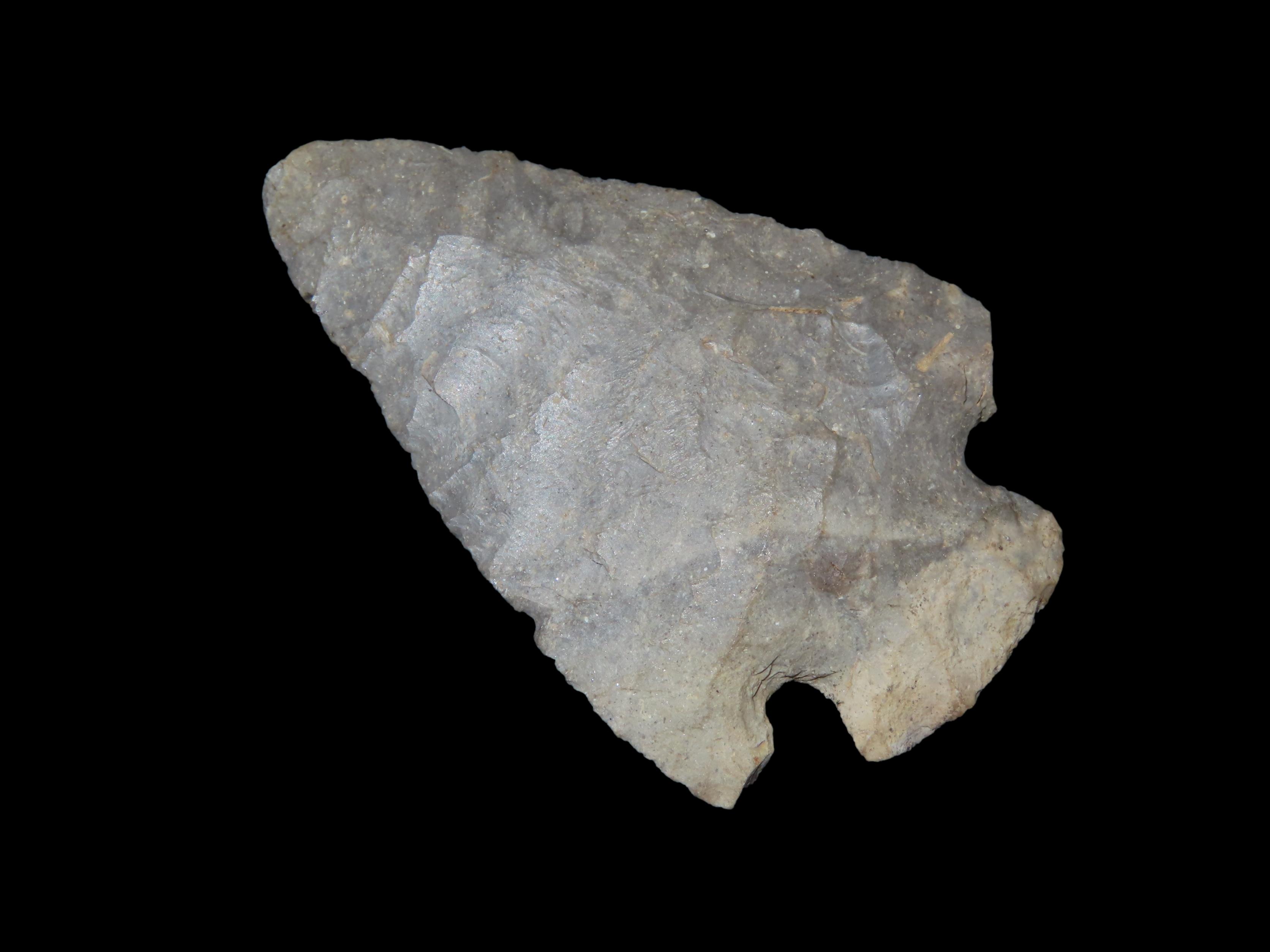 Colorful Kirk Corner Notch, Howell County Michigan, ex John Morriss Collection, Thin & Well flaked out of Highly Patianted Bayport Chert