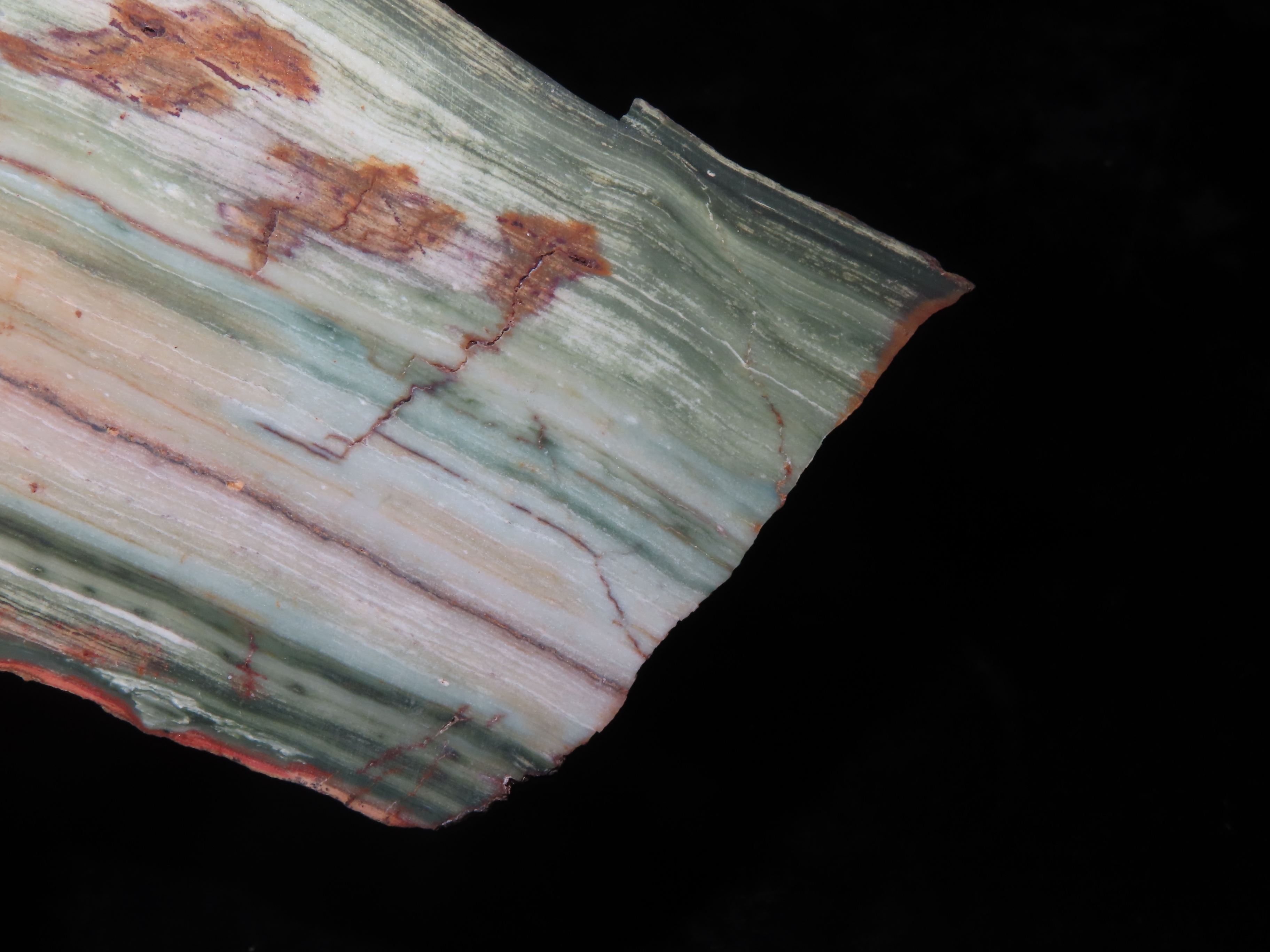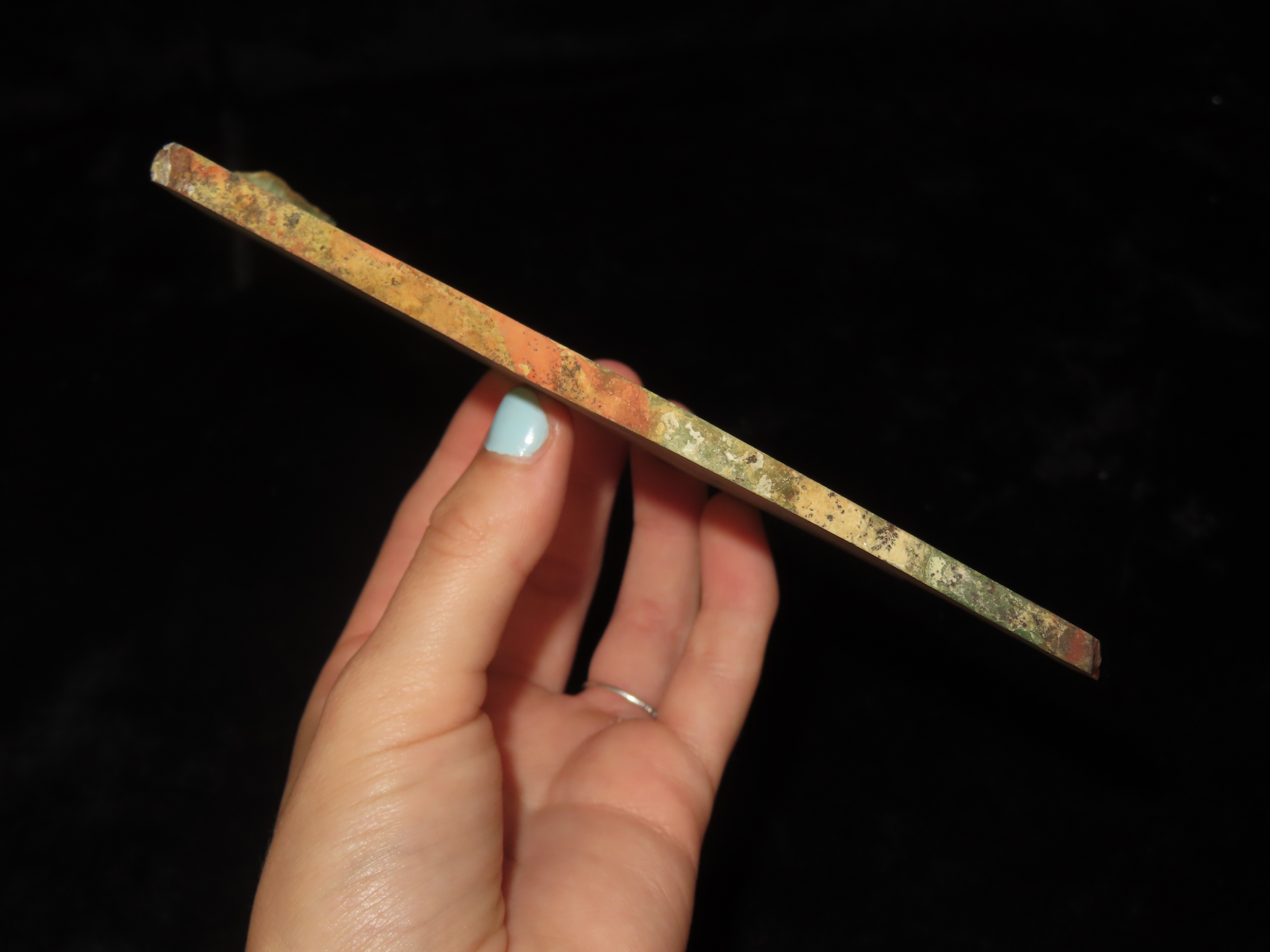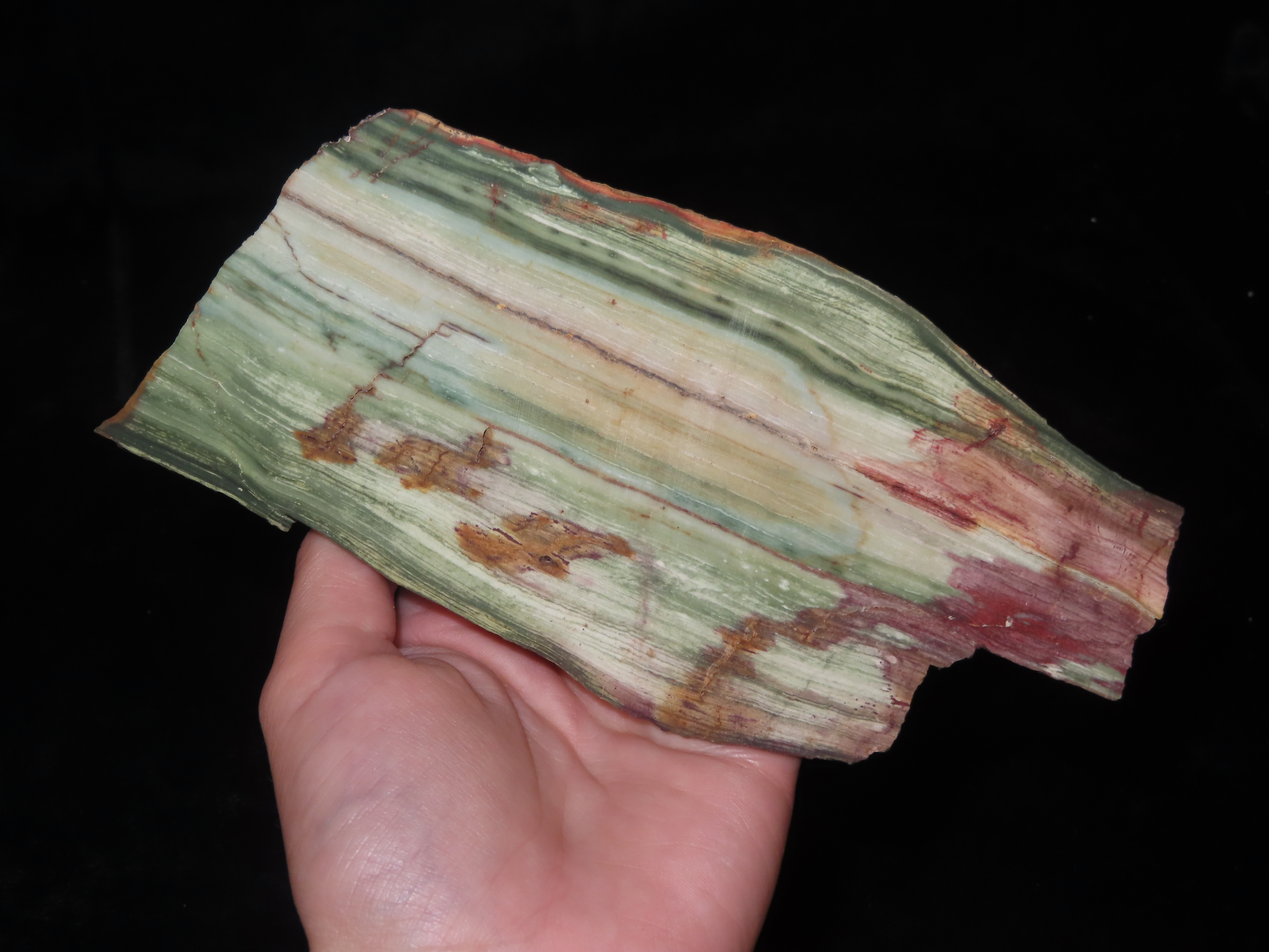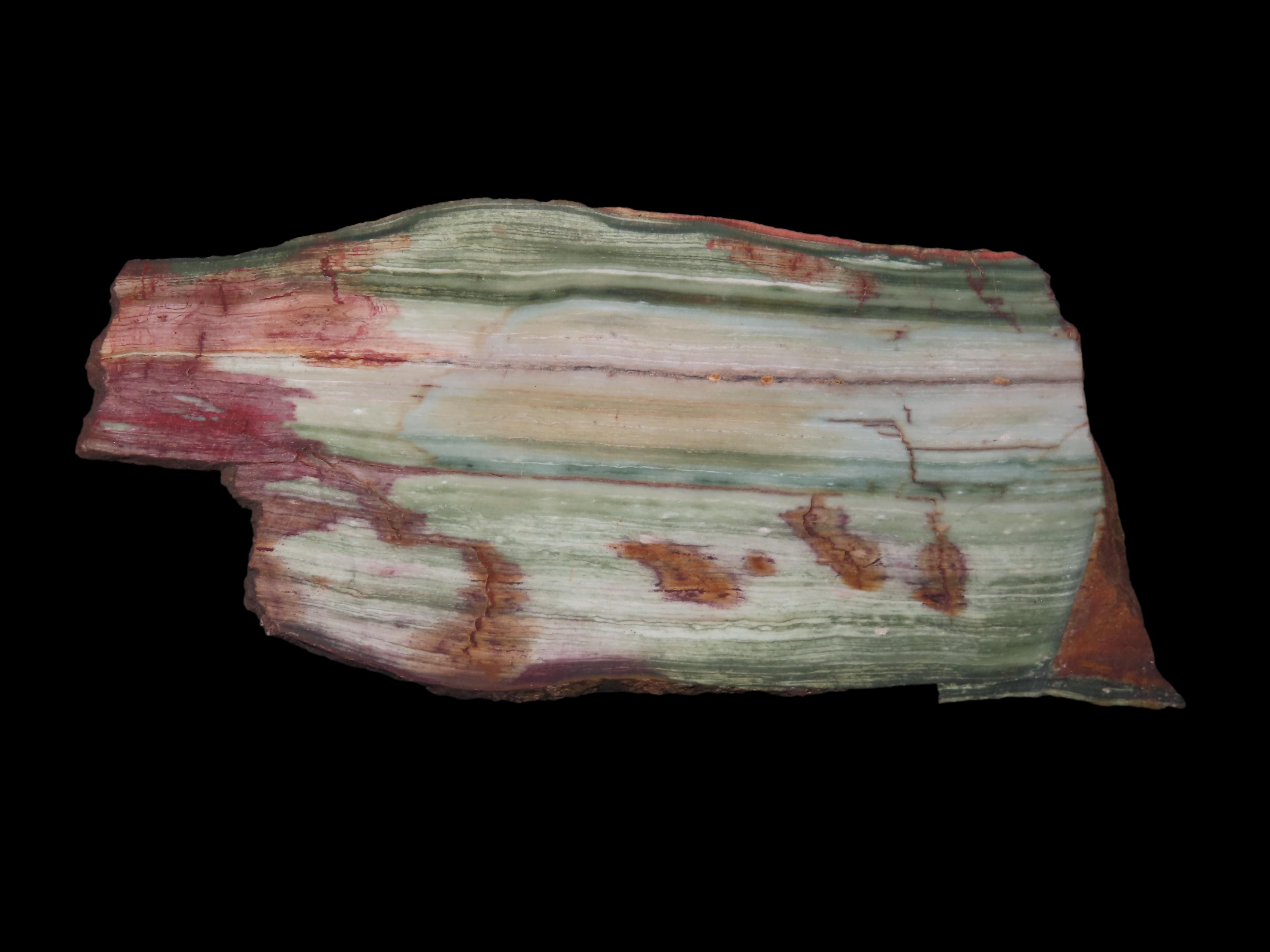 Rare Green & Red Petrified Wood Slab, 7″ long, Oregon Bogwood, Vibrant Greens & Reds mixed with Tan & Brown. Much Harder to Find Color Pattern