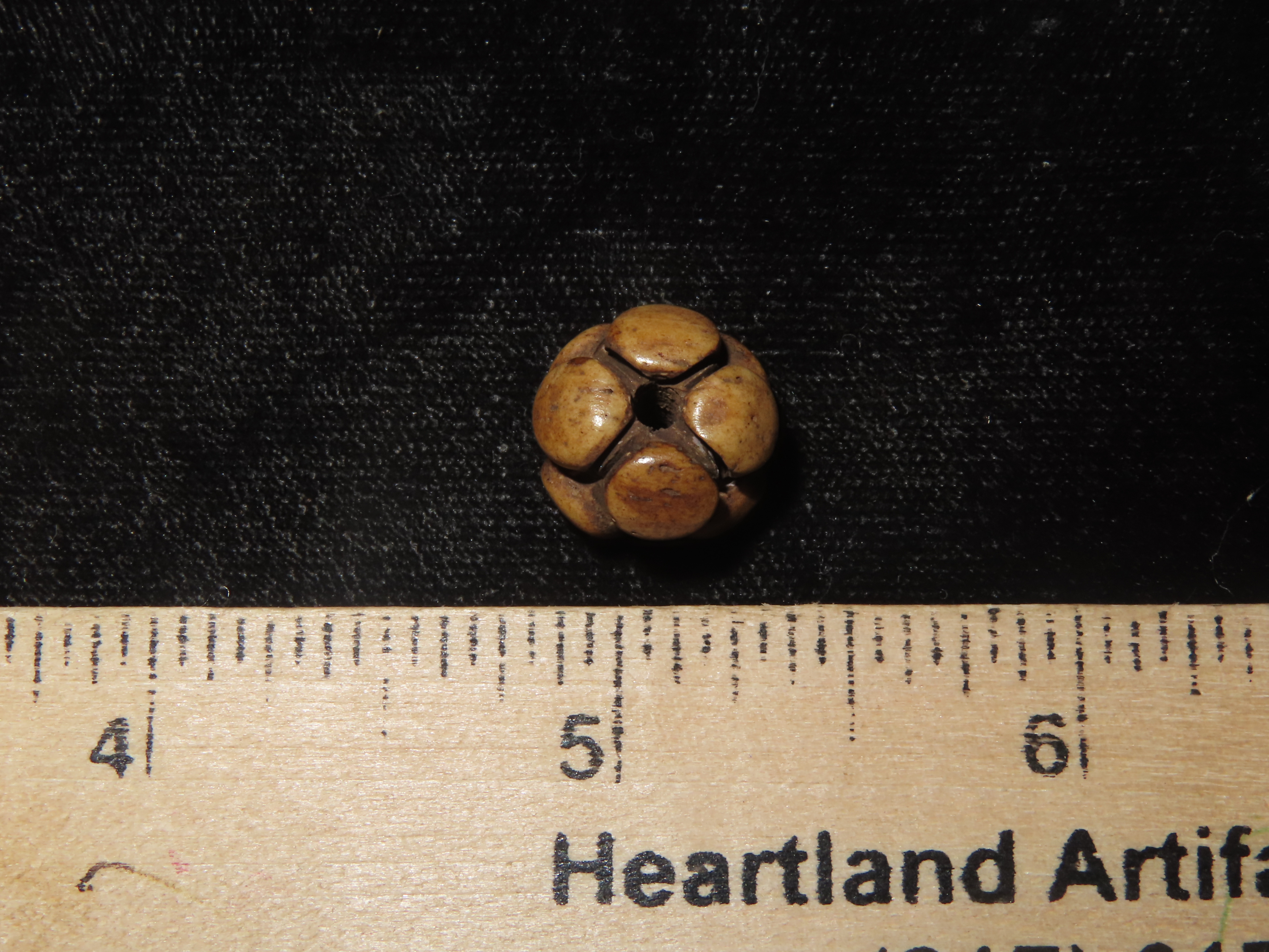 Engraved Effigy Bone Bead / Pendant found in South Dakota. Highly Polished Example, Mandan Culture, Circa 1600-1700’s