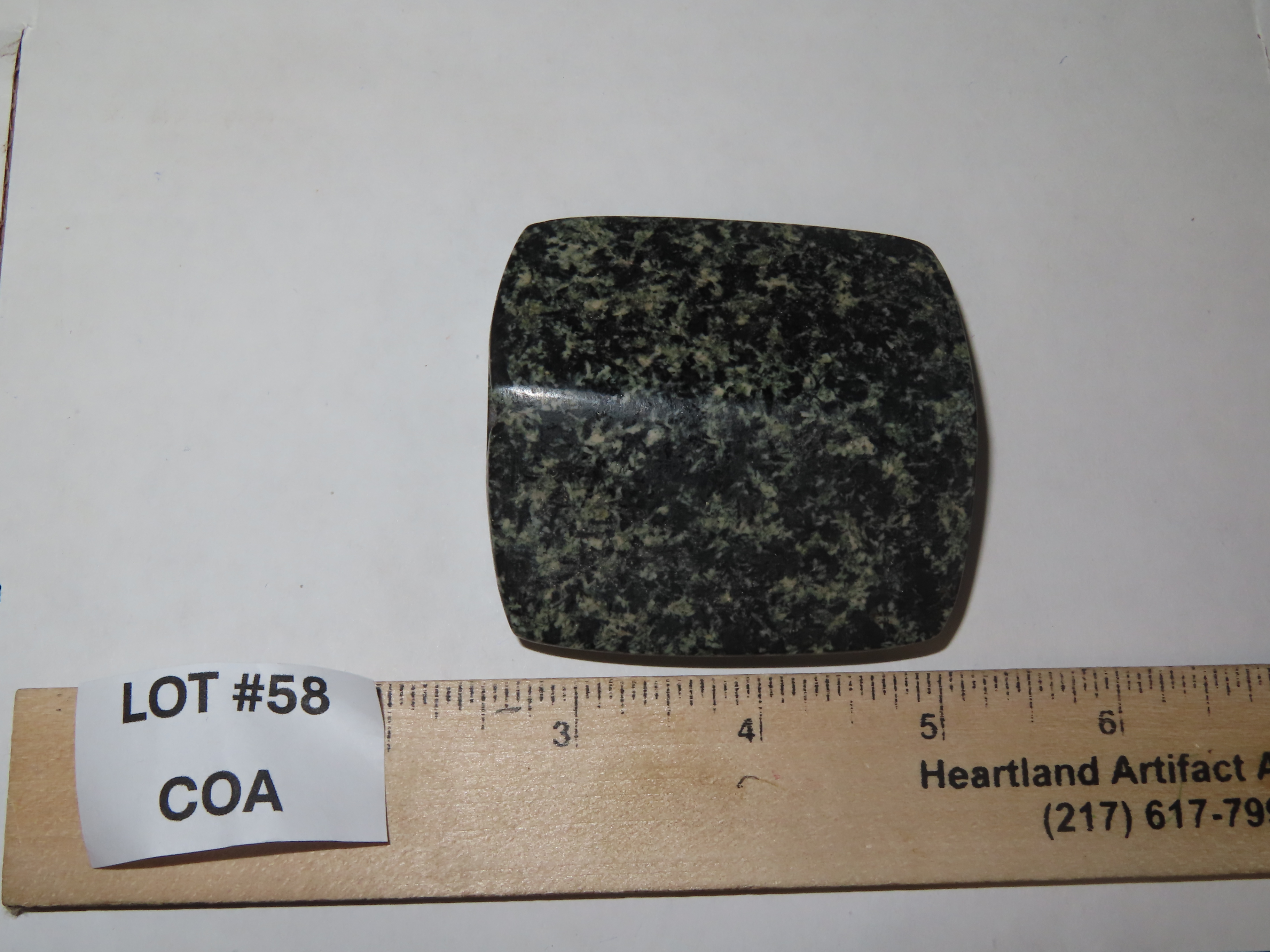 Remarkable Granite Saddle Bannerstone, Motley COA, Calhoun Co. Illinois. Ex Floyd Ritter Collection. Beautiful Colors & Amazing Polish. Very Nice Example!