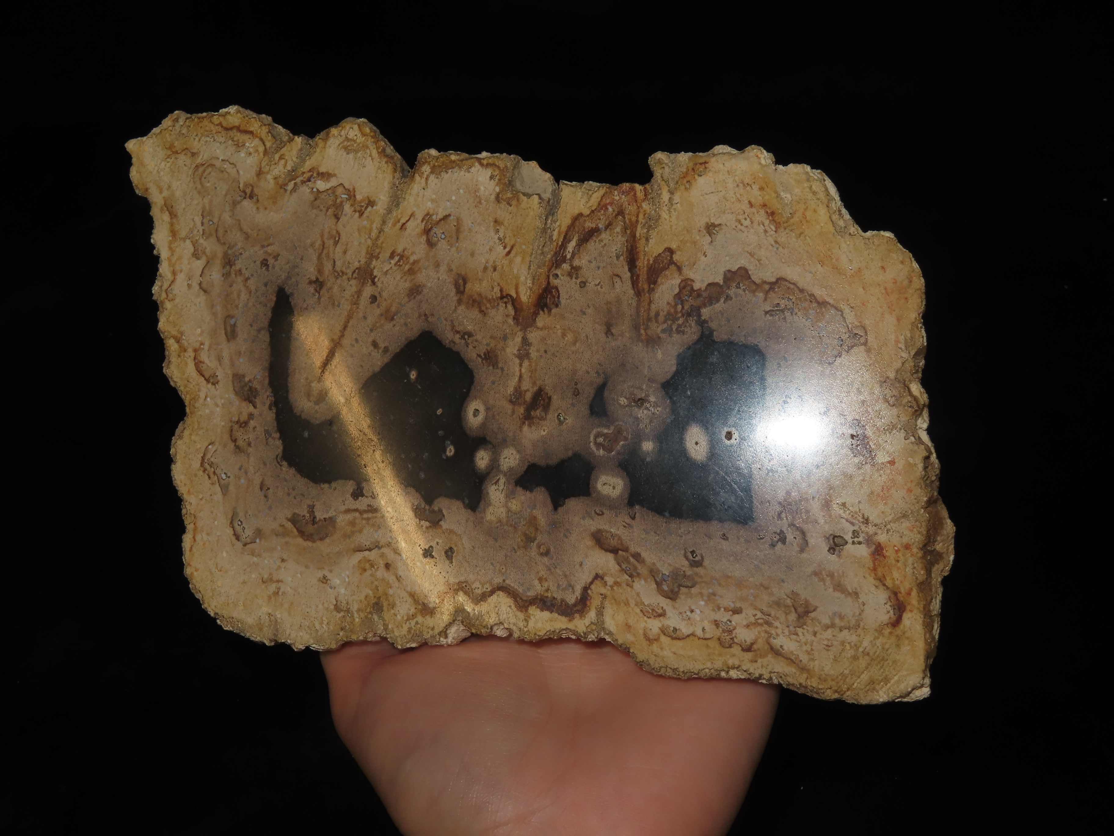Large Colorful Polished Slab of Petrified Wood. Fully Polished on Both Sides, Beautiful Colorful Example.