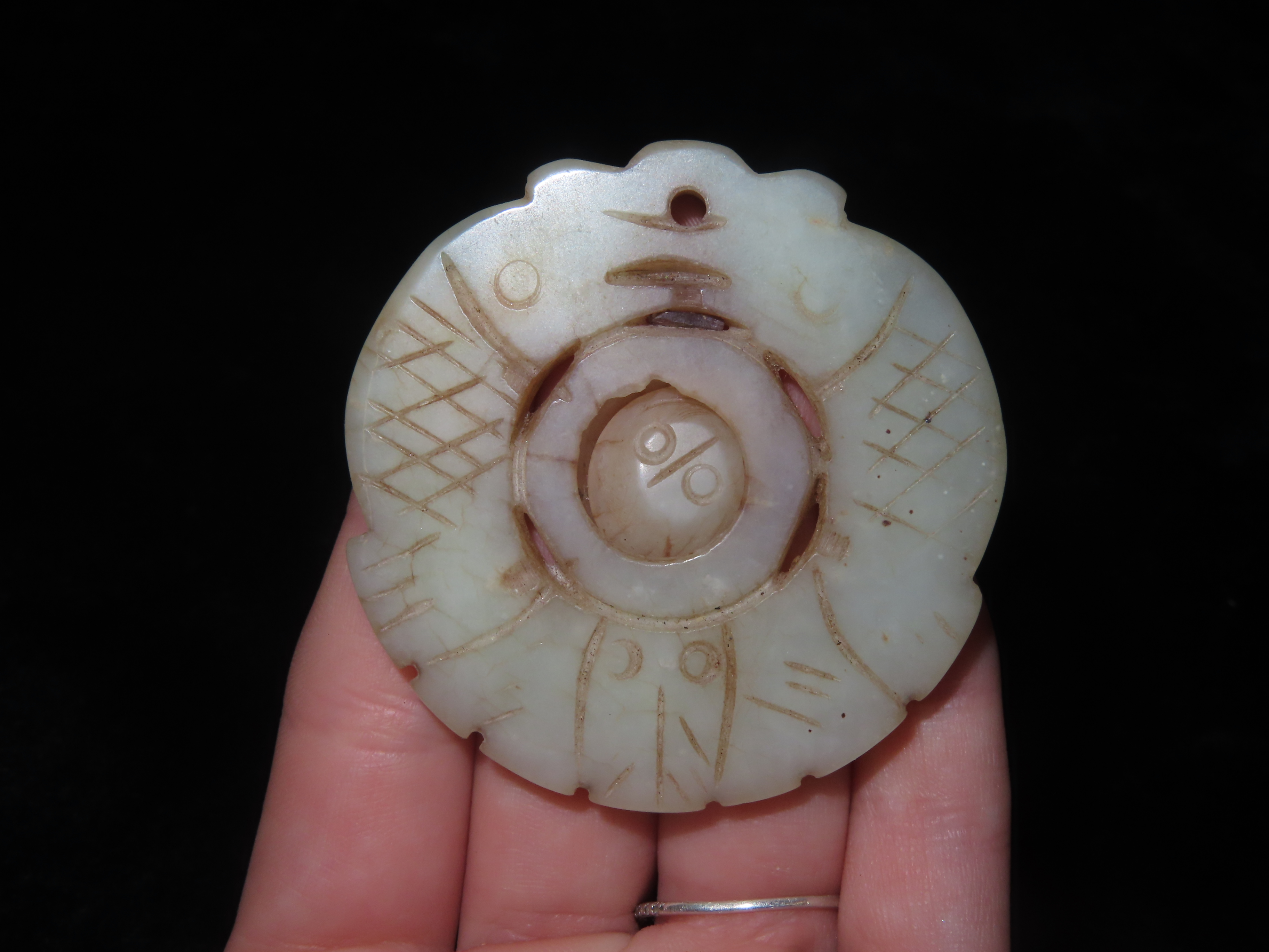 Nice Antique Chinese Hongshan Culture Jade Effigy Pendant, Handmade Example.