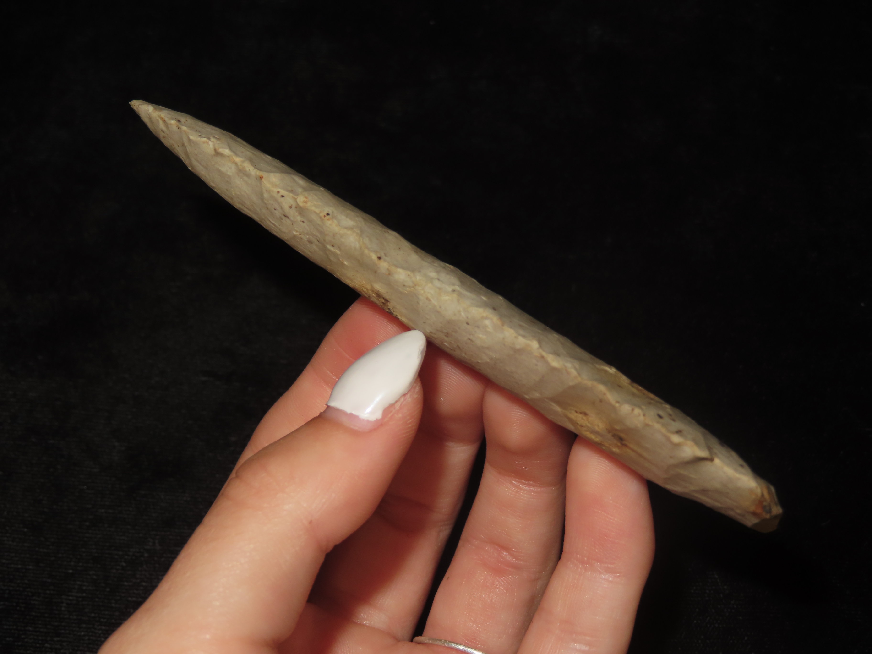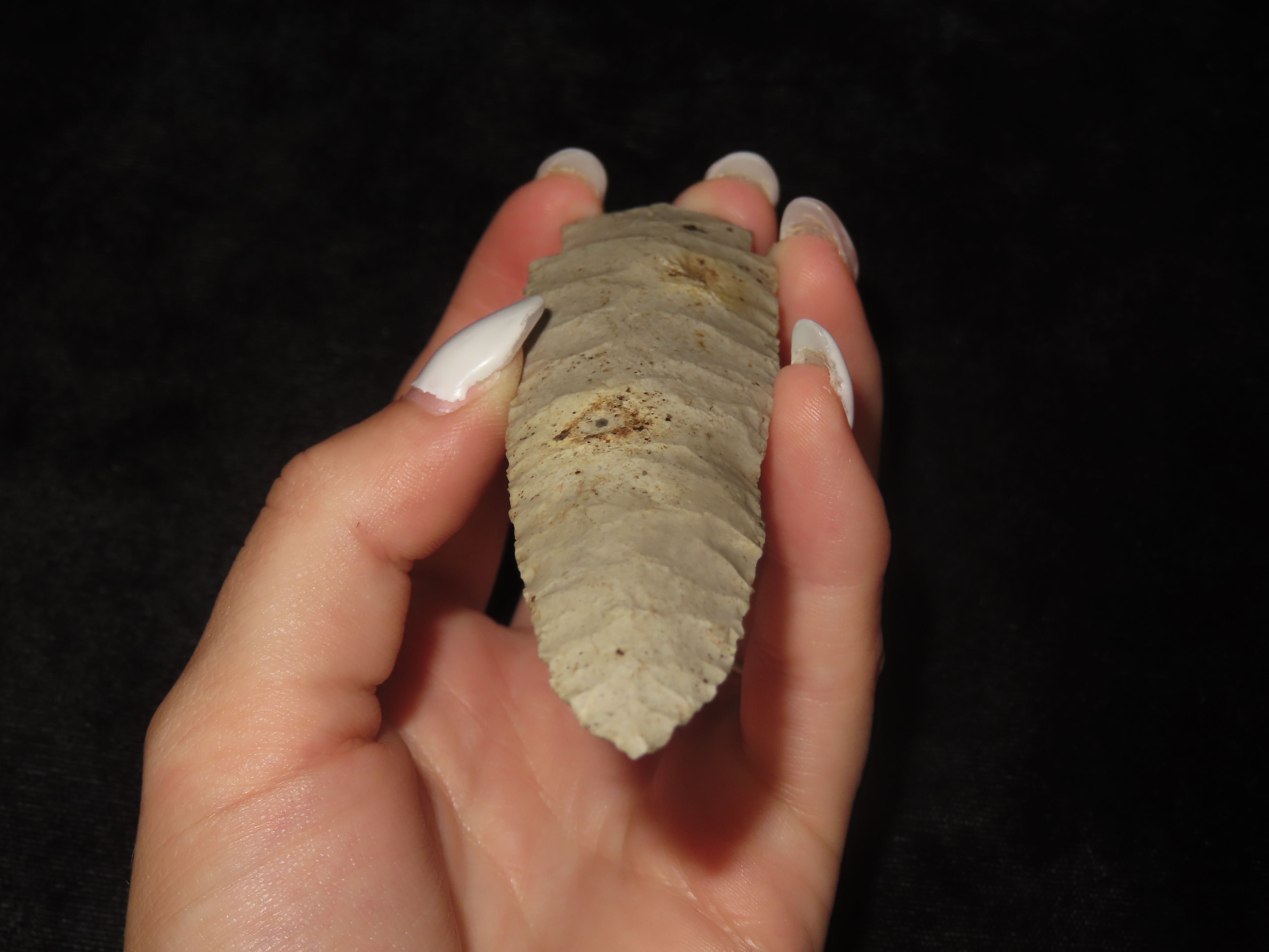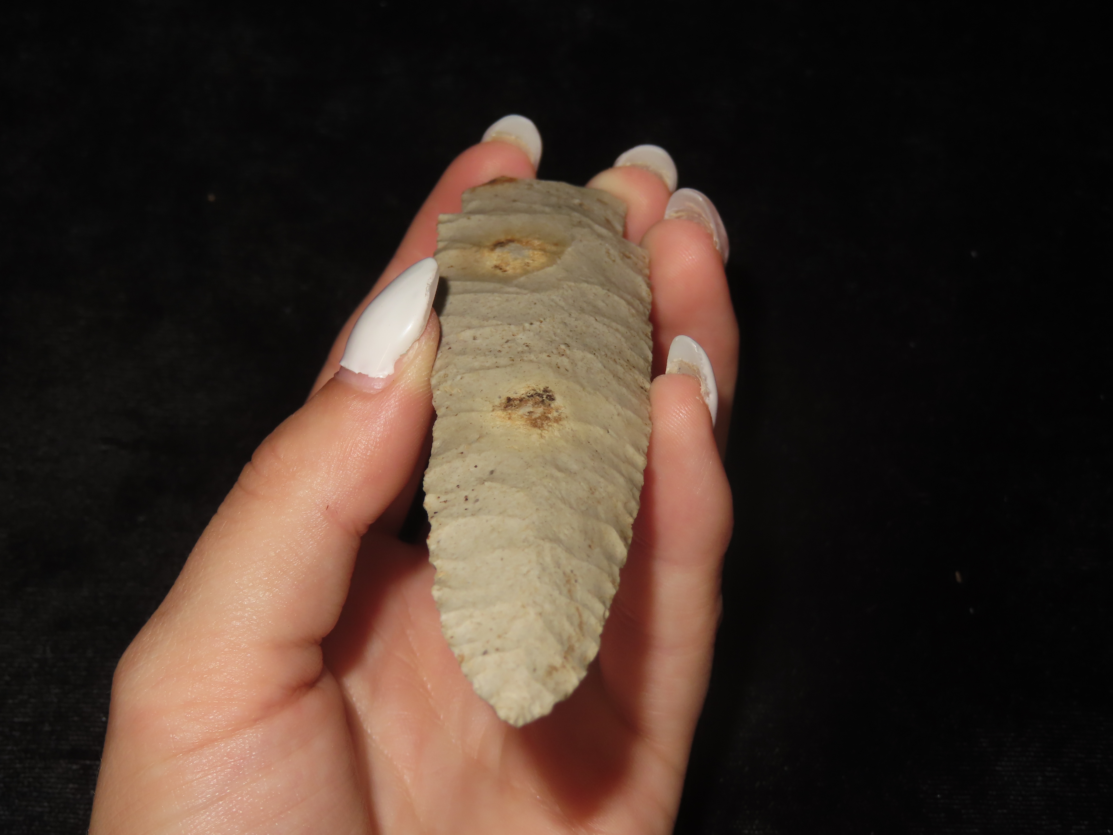 4 5/16″ Scottsbluff, Howard Co. Missouri, Rogers & Motely COA’s, Nice Large Example with Wonderful Classic Flaking, Ex Sly Luna Collection, Ex Randy Hudson. Great Classic Example!
