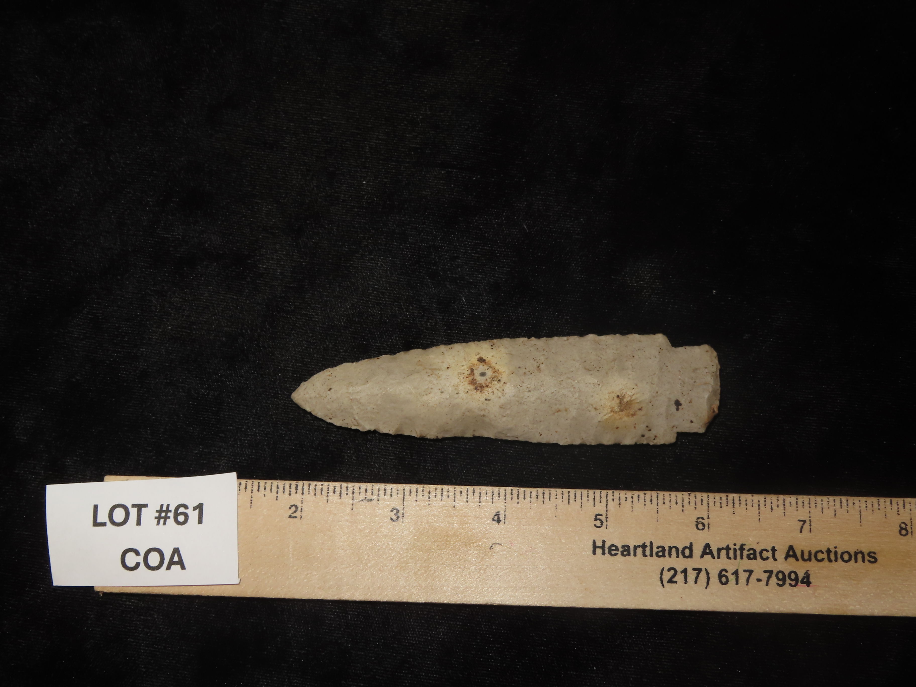 4 5/16" Scottsbluff, Howard Co. Missouri, Rogers & Motely COA's, Nice Large Example with Wonderful Classic Flaking, Ex Sly Luna Collection, Ex Randy Hudson. Great Classic Example!