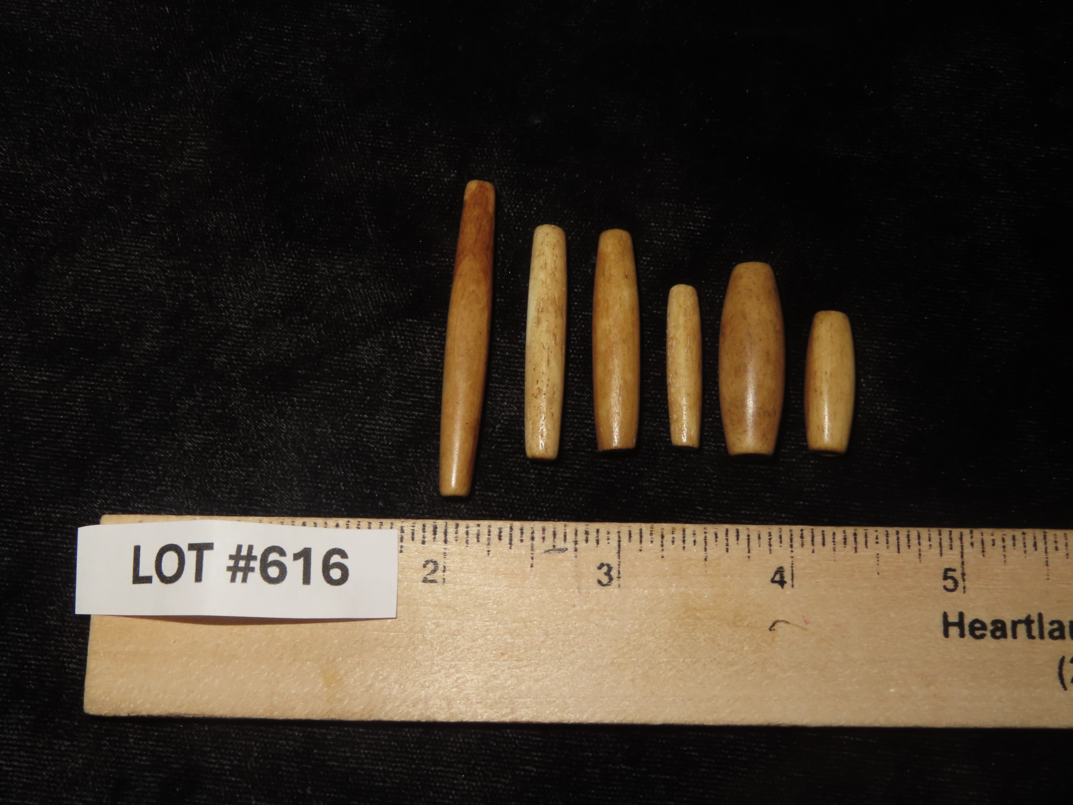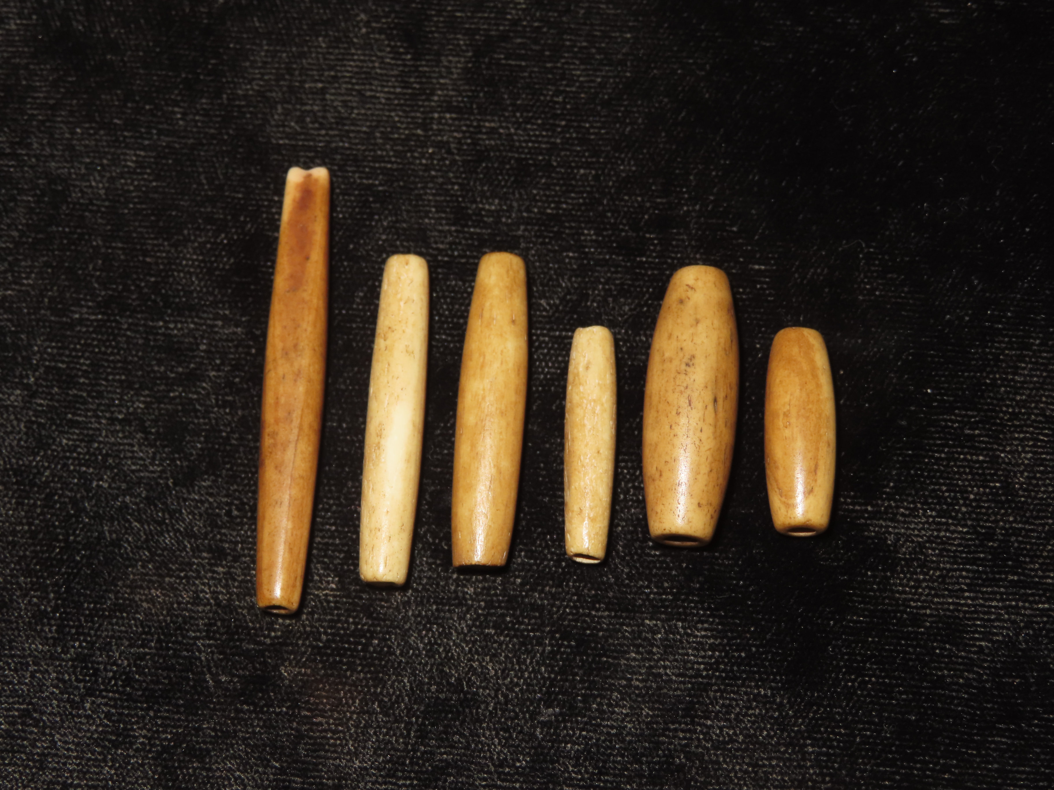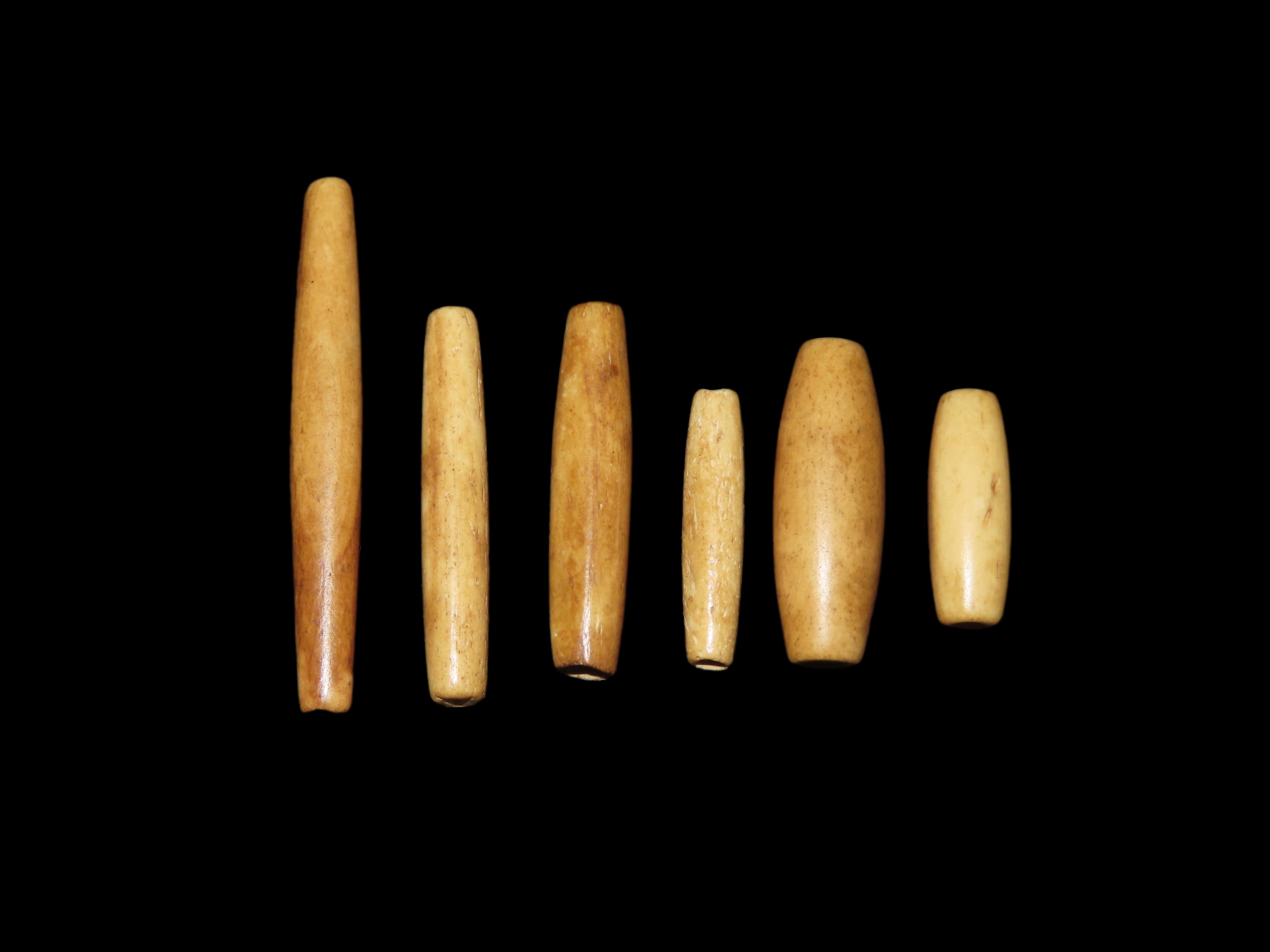 Lot of 6 Historic Hair Pipe Bone Beads, South Dakota. Nicely Shaped & Highly Polished