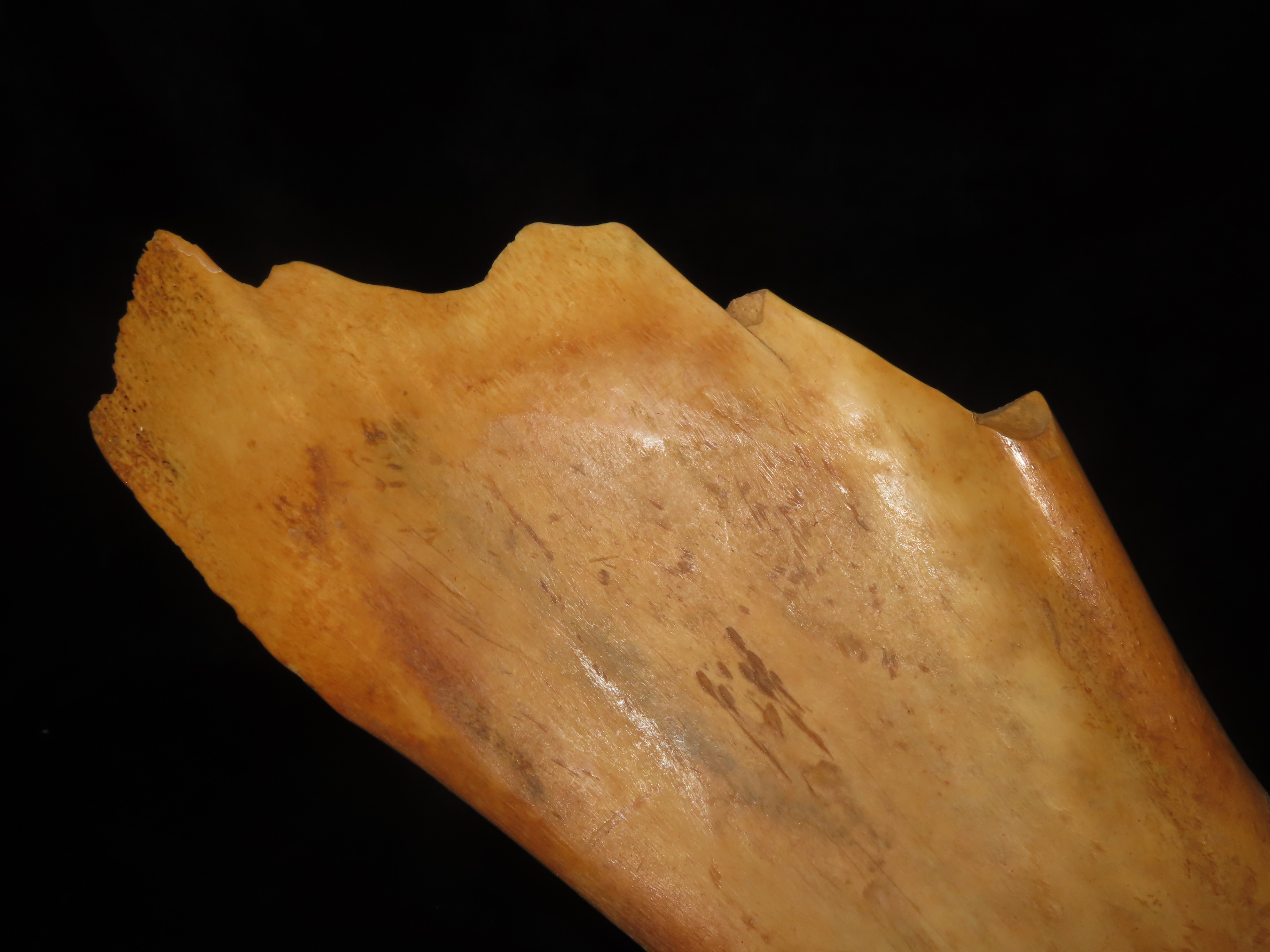 Huge 14 1/4″ Buffalo/Bison Polished Bone Spade, Walworth County South Dakota, Great Use Polish, No Brainer Age & Patina