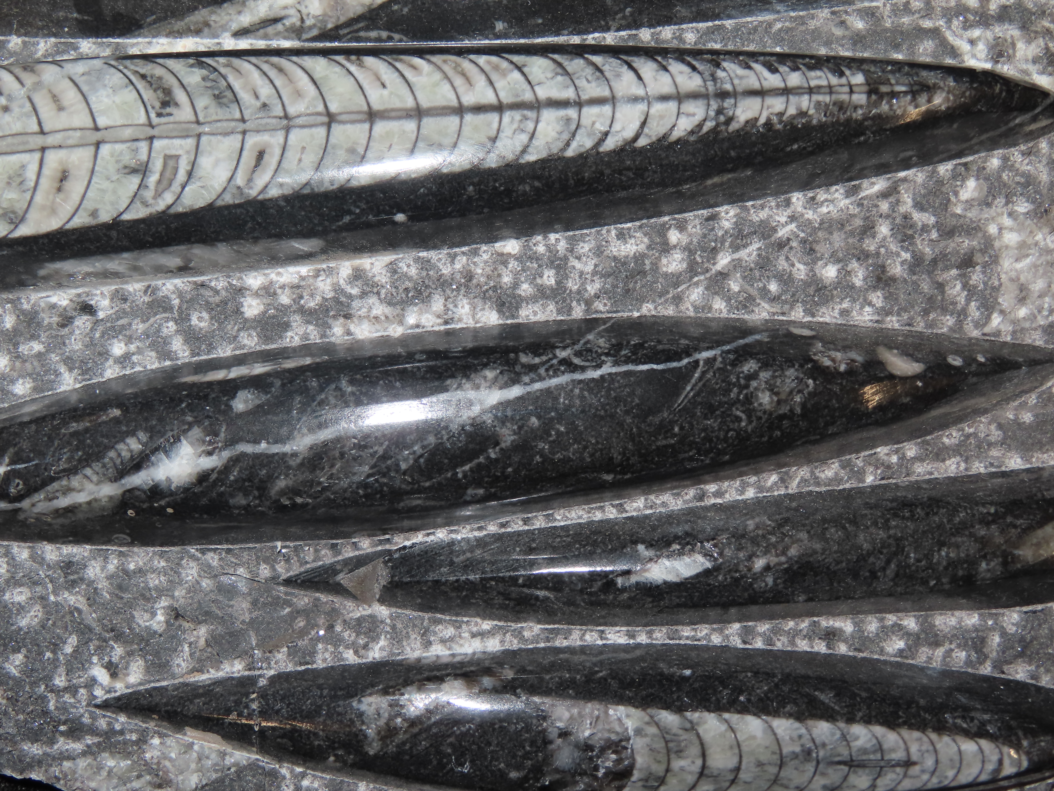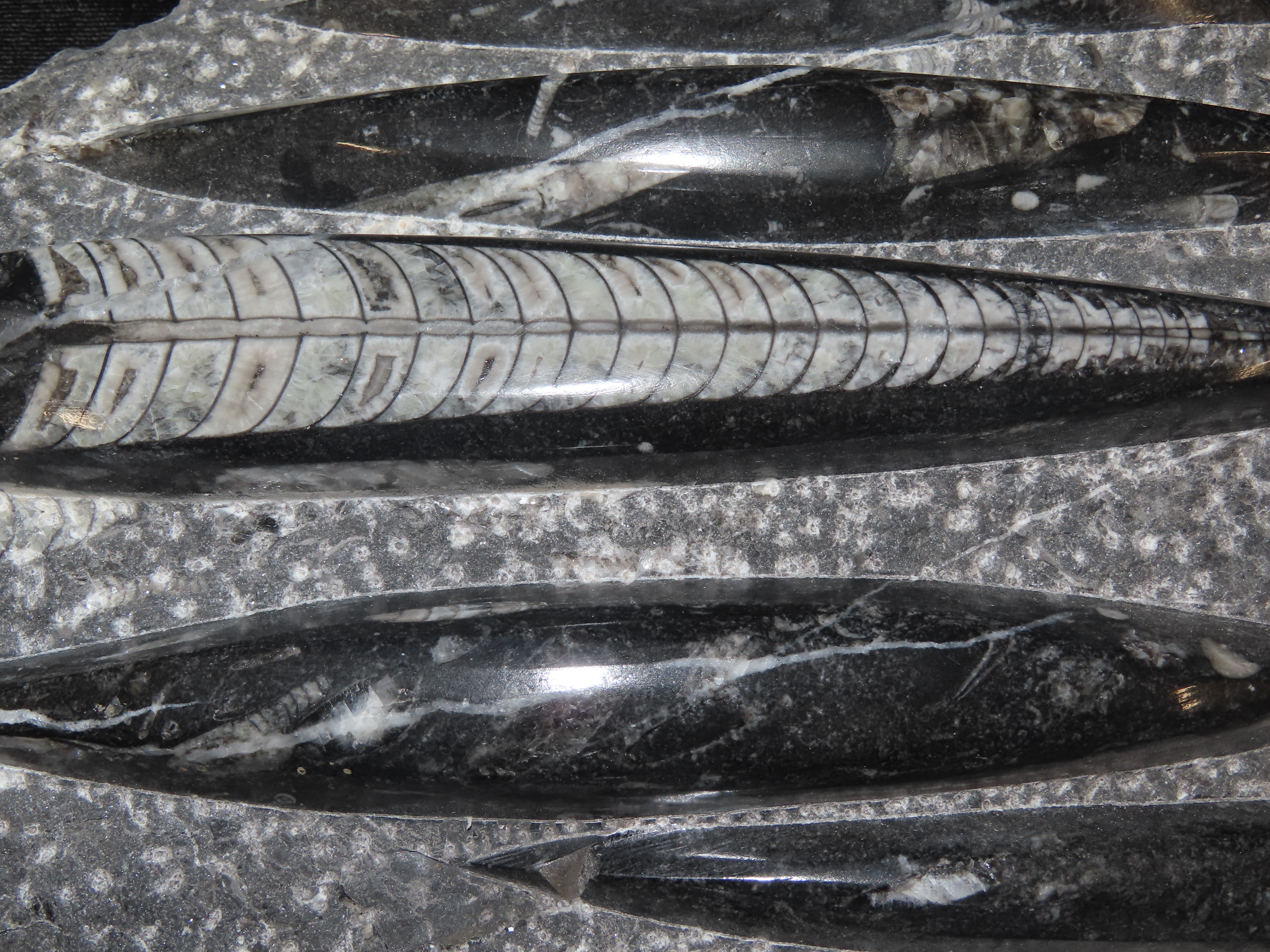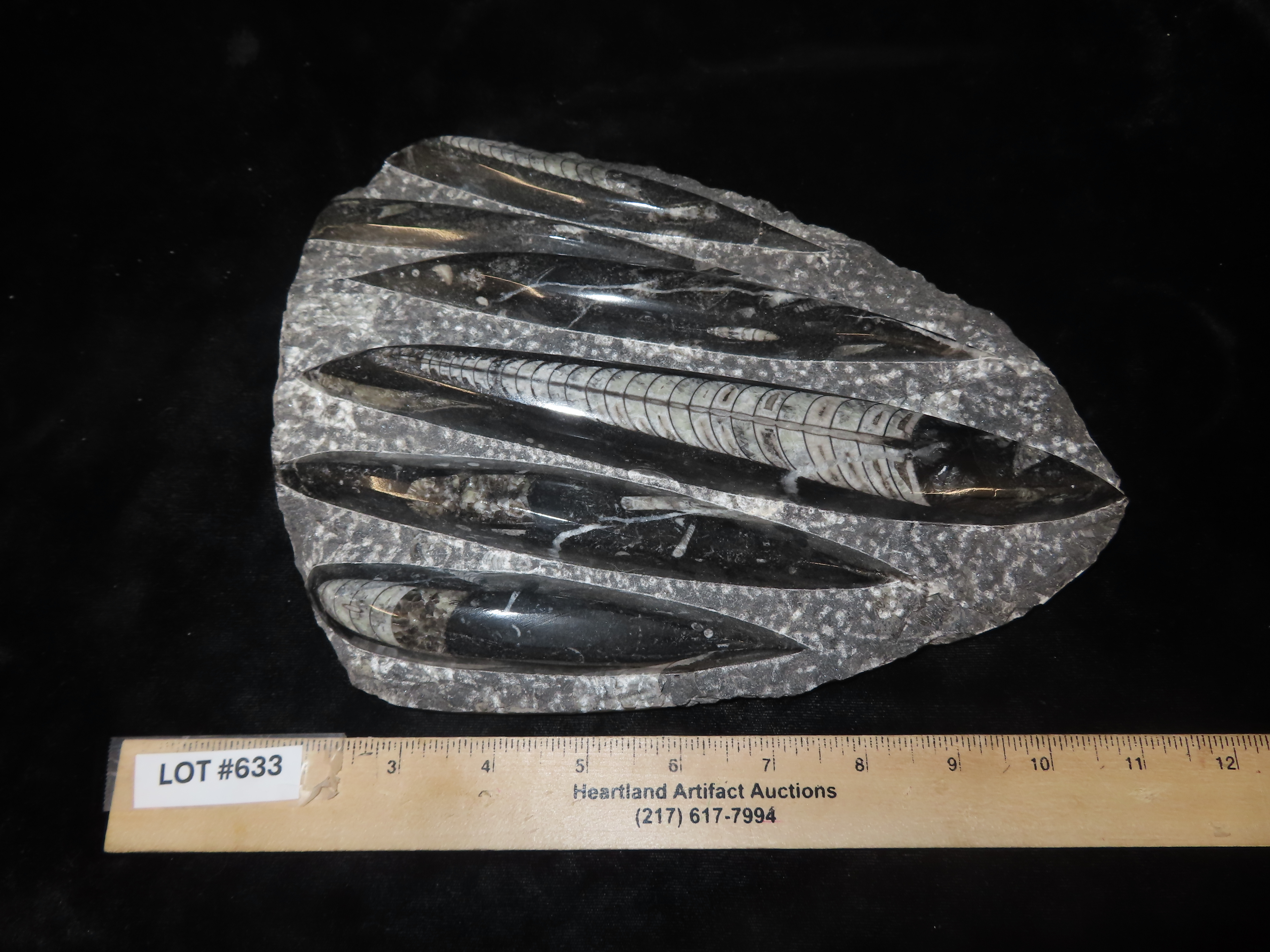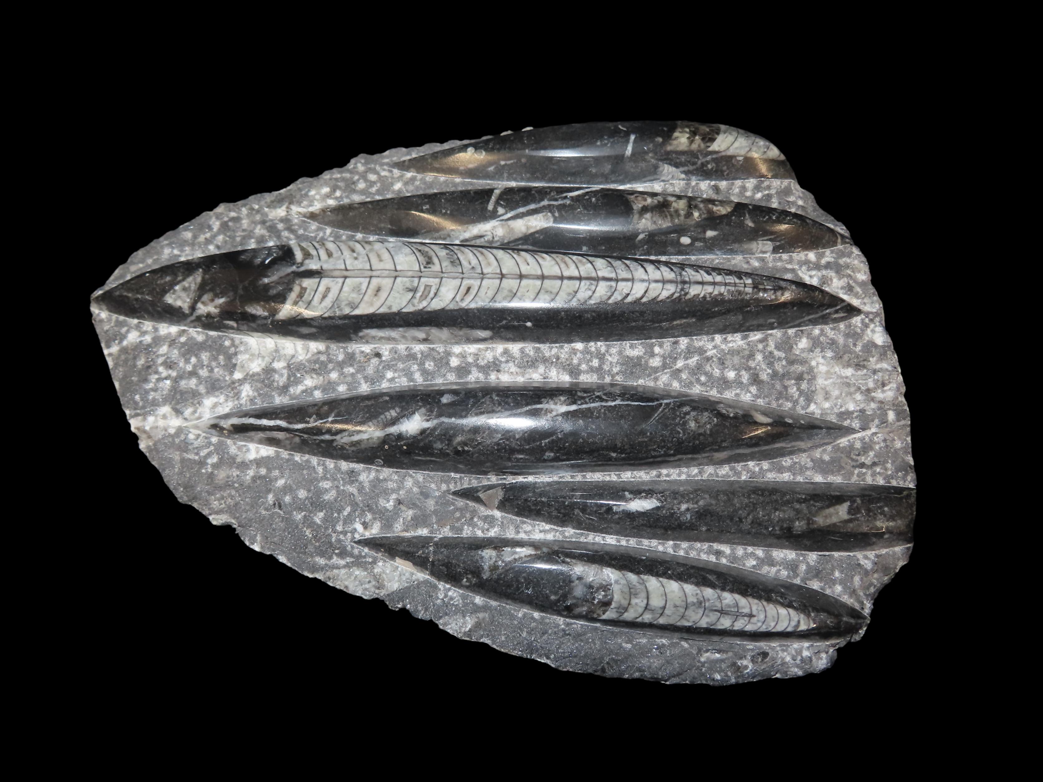 HUGE 10 1/2″ Polished Orthoceras Fossil Plate. Amazing Display Specimen. 200-500 Million Years Old, Triassic Period.