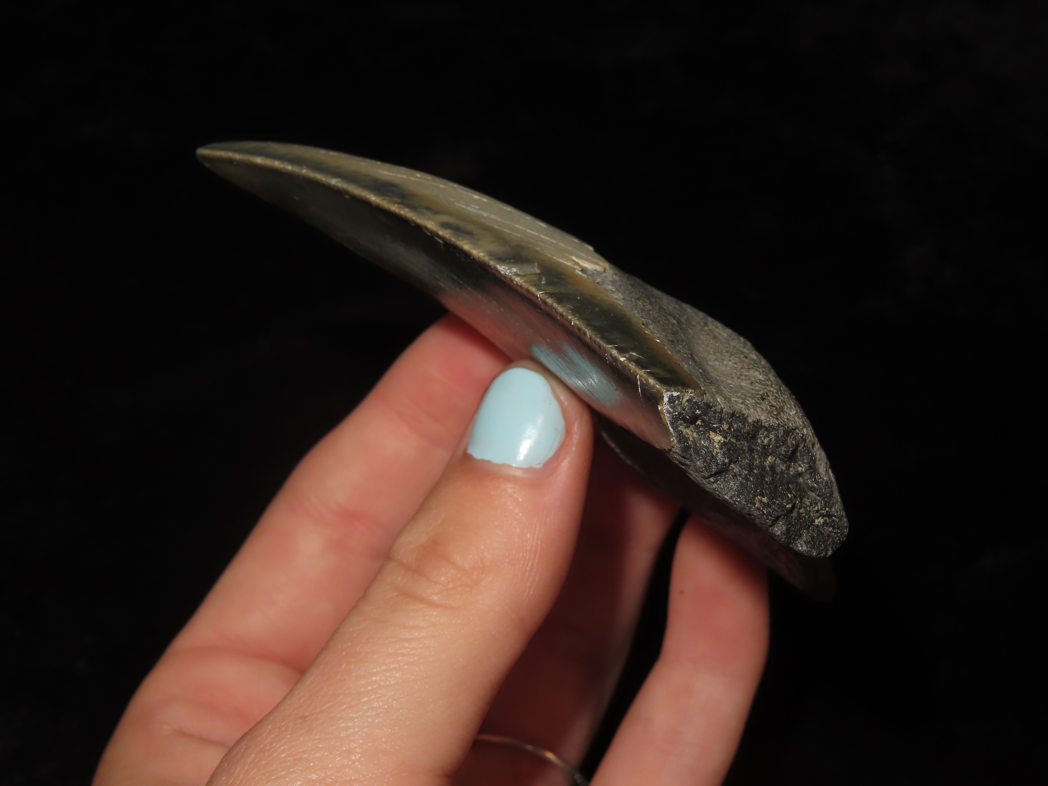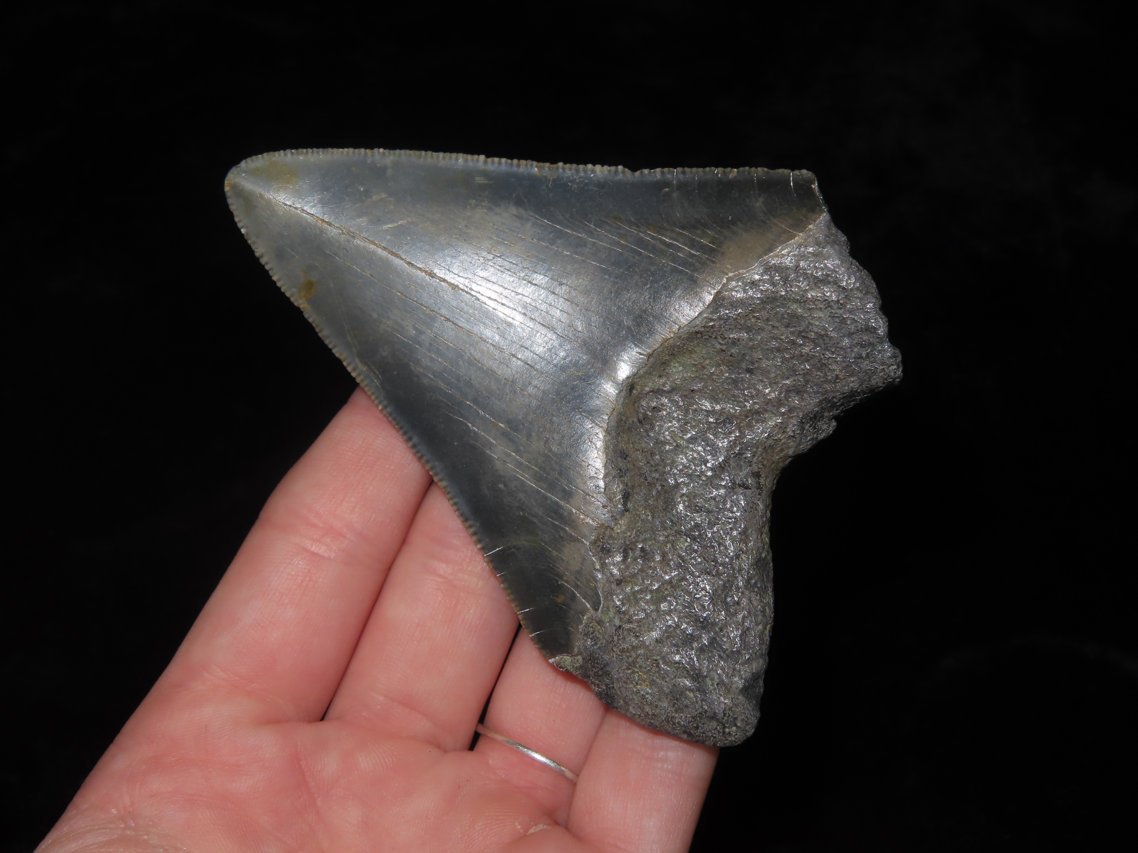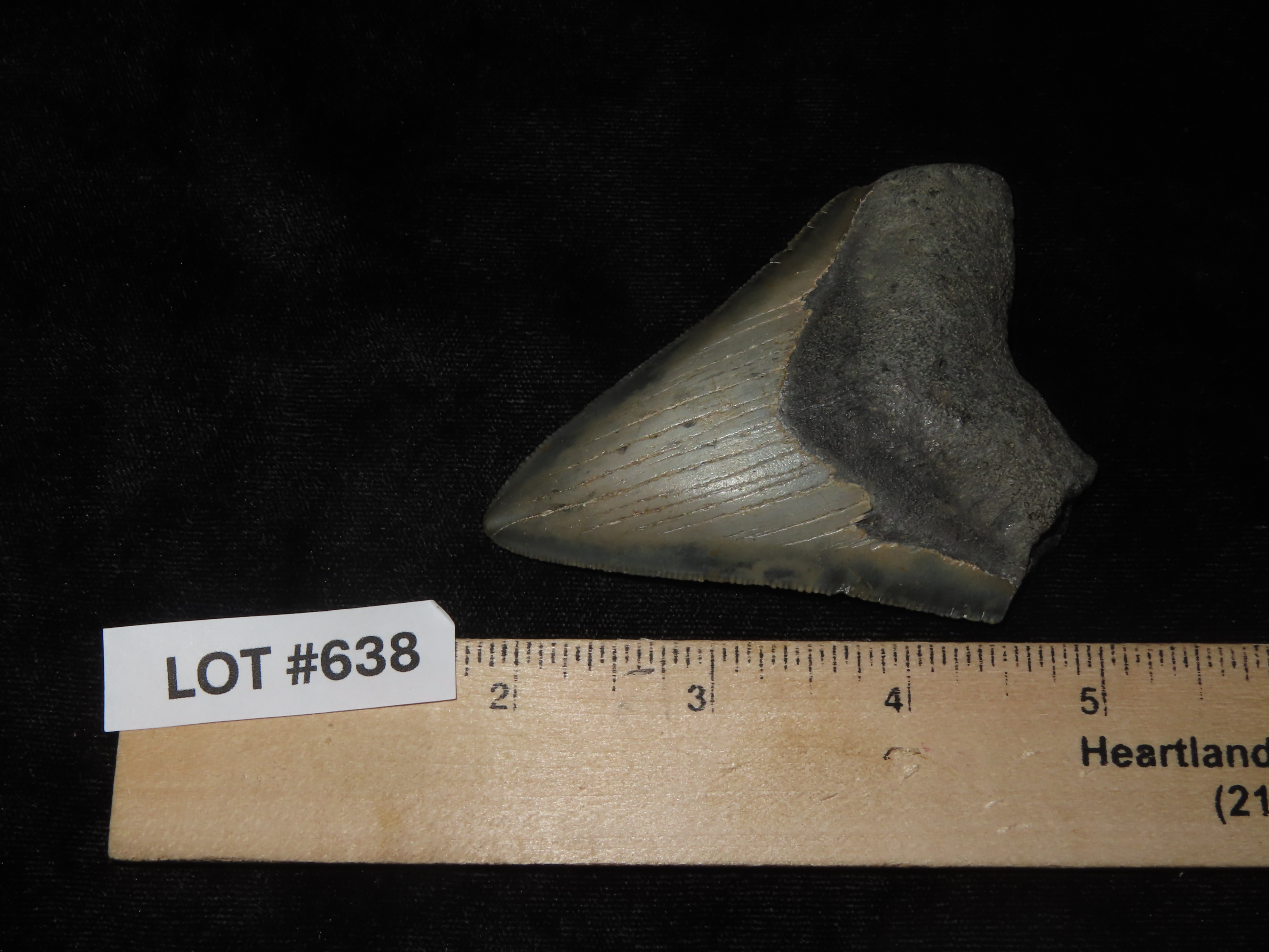 Large Megalodon Shark Tooth, 2.5-23 Million Year Old Fossil found off the coast of the Carolinas. No Repair, No Resto, No Polishing. Great Example!