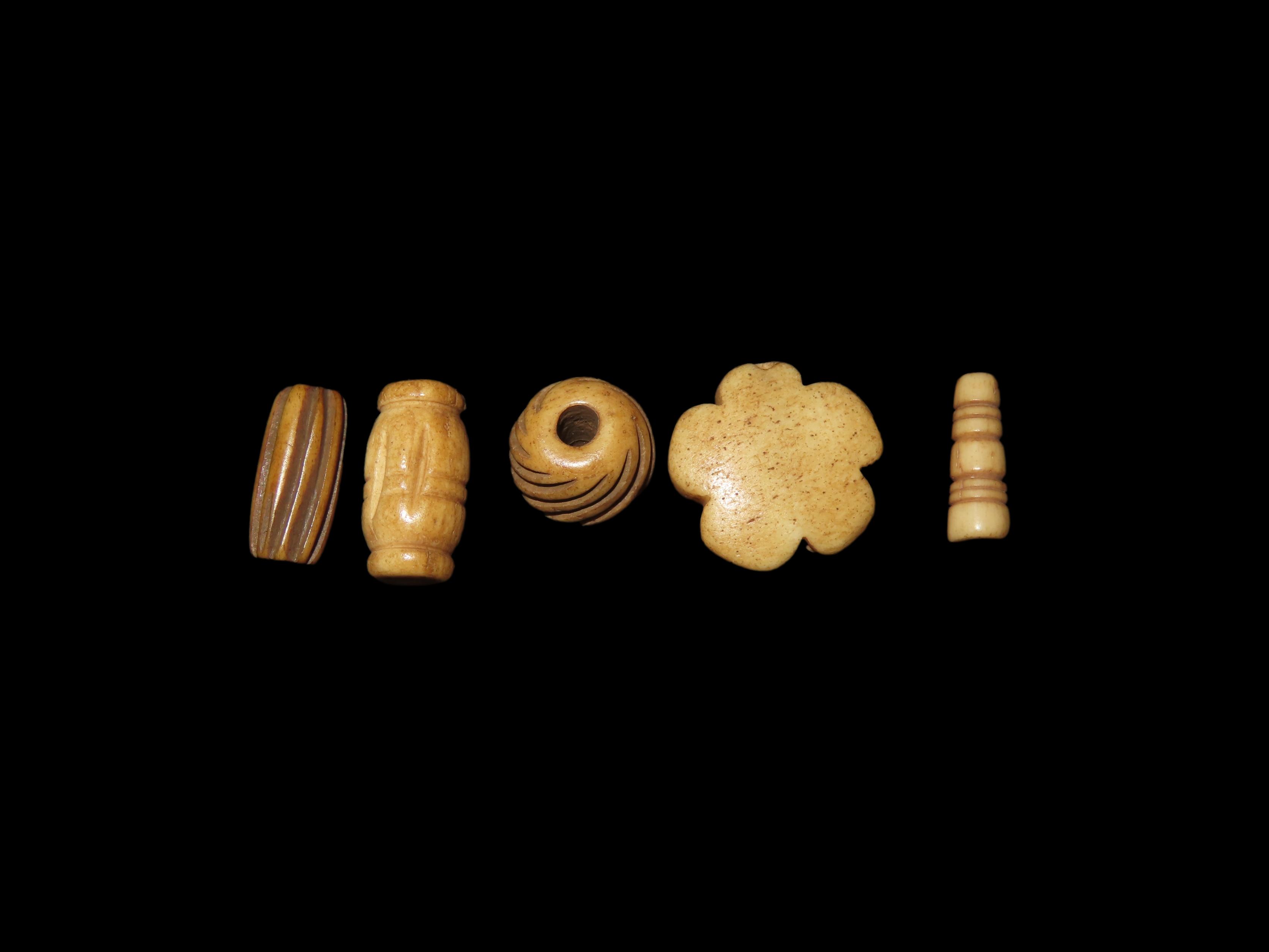 Lot of Bone Beads, South Dakota, Some Engraved. Great Examples, nice Polish & Great Patina. Mandan Culture
