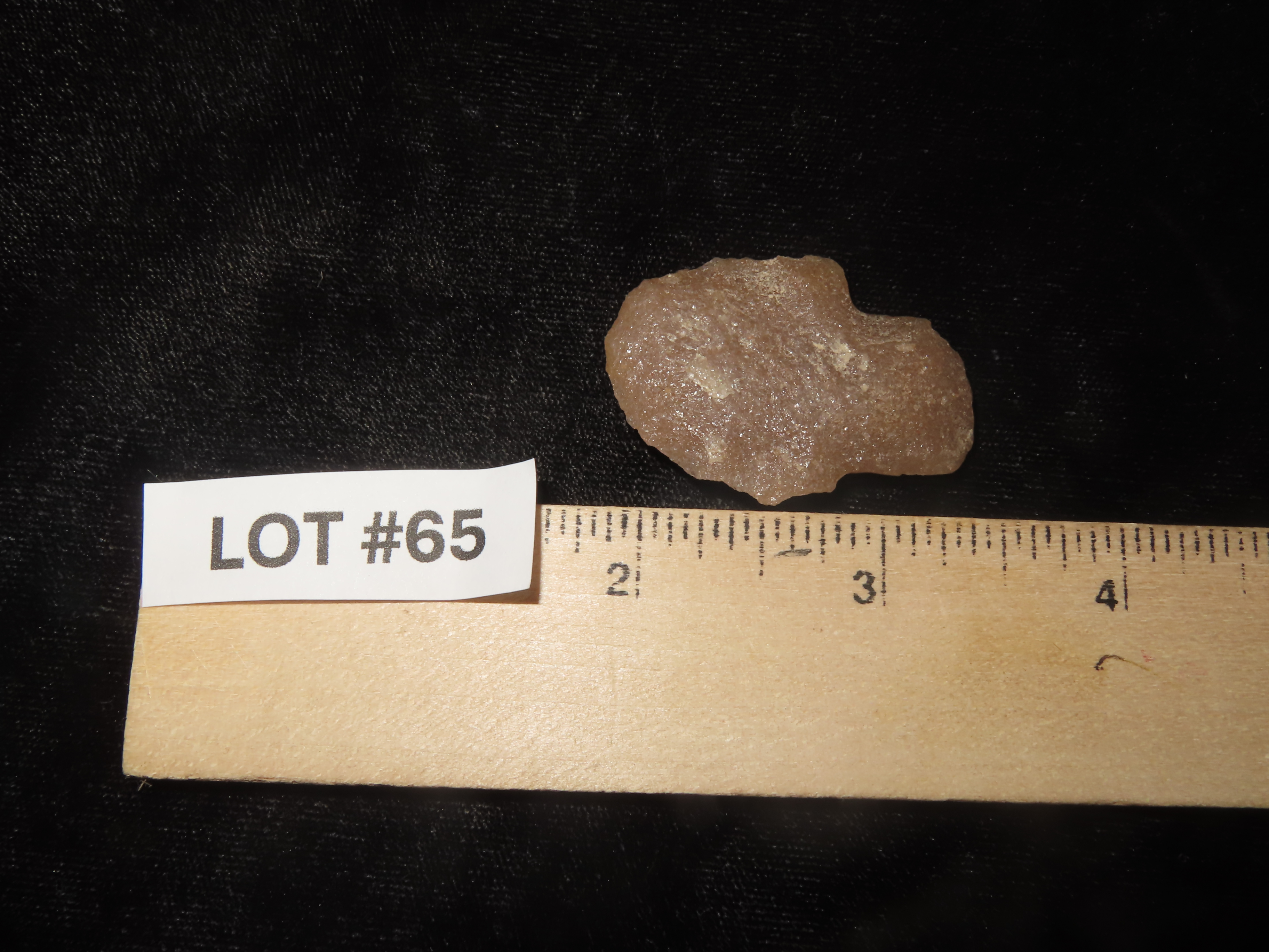 1 5/8″ Hixton Alberta, Iowa, Highly Translucent Example, Well Flaked and Heavily Patinated, lateral Stem Edges are Heavily Ground. Rare Example