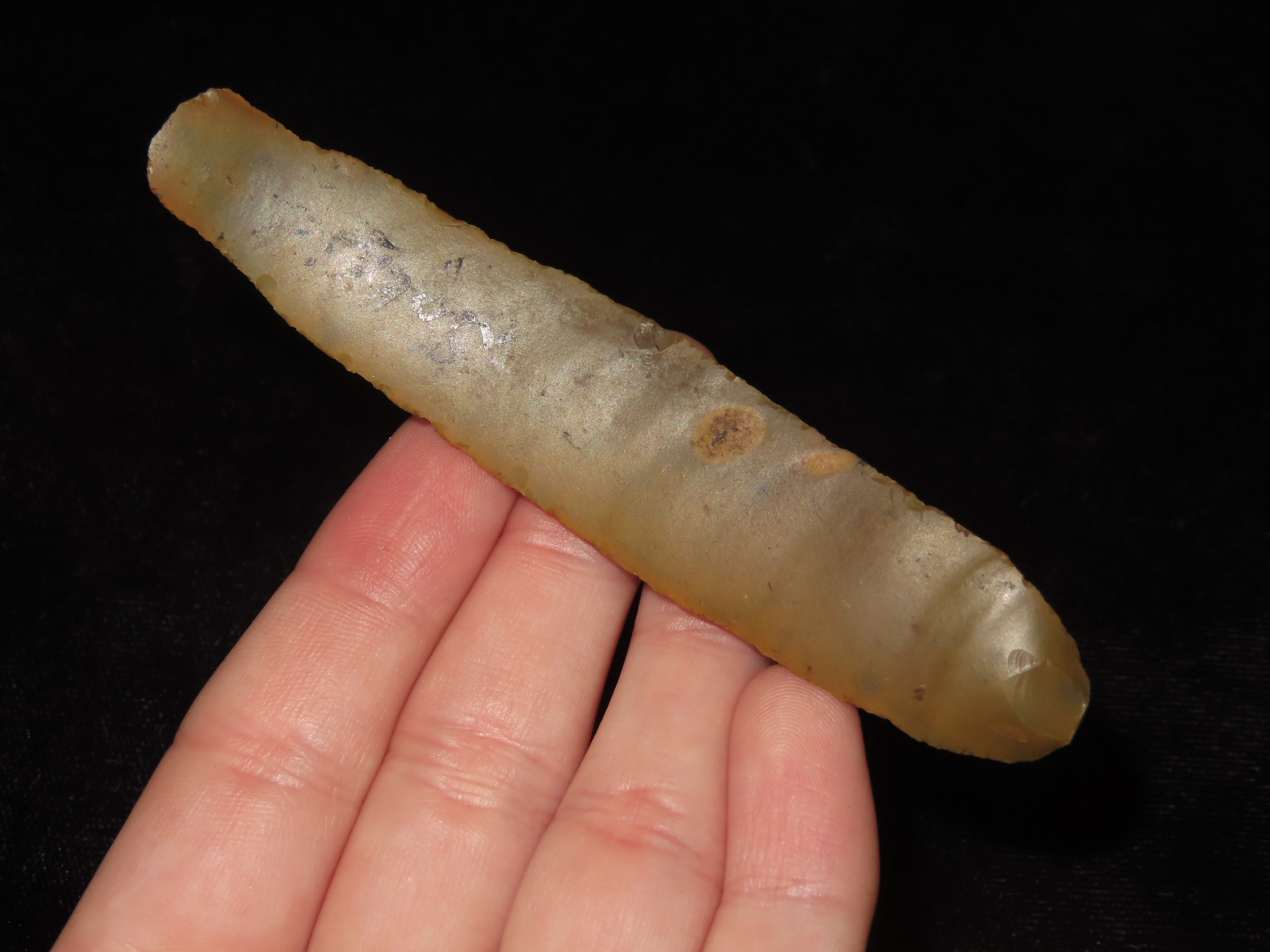 Upper Paleolithic (11k-35k years old) Flint blade from Bergerac Region France, from Cro-Magnon man, 3 3/4″ Long.