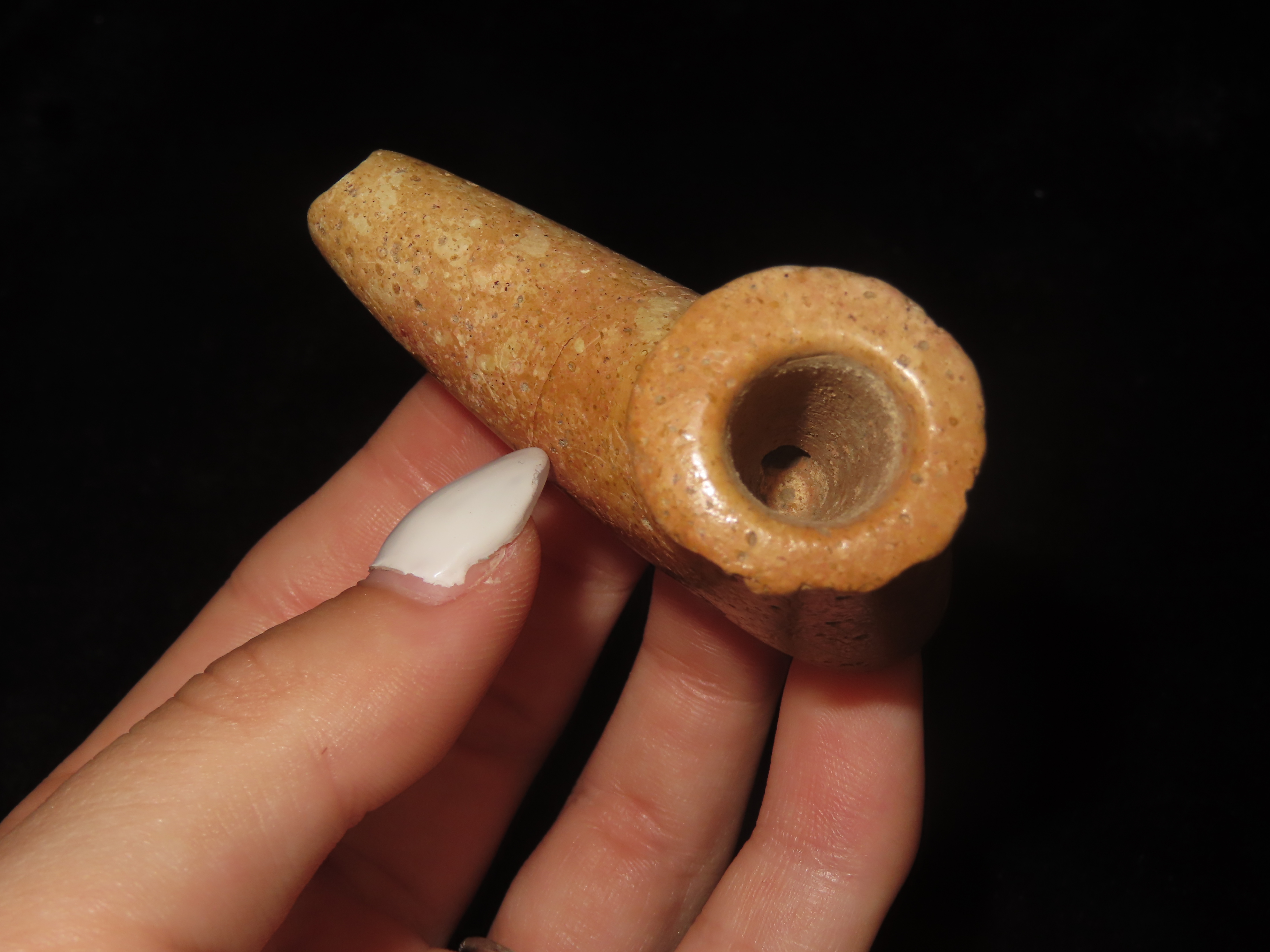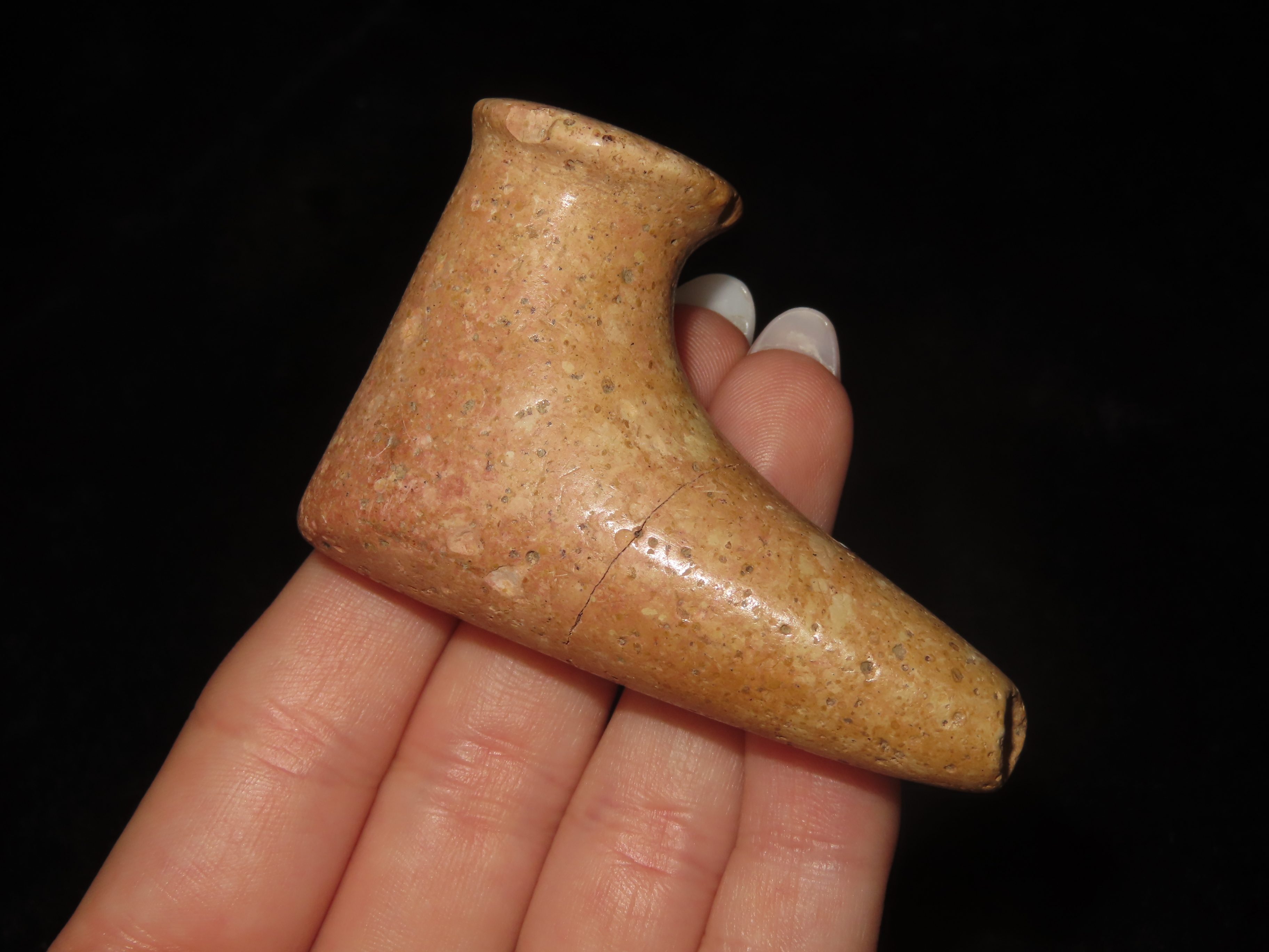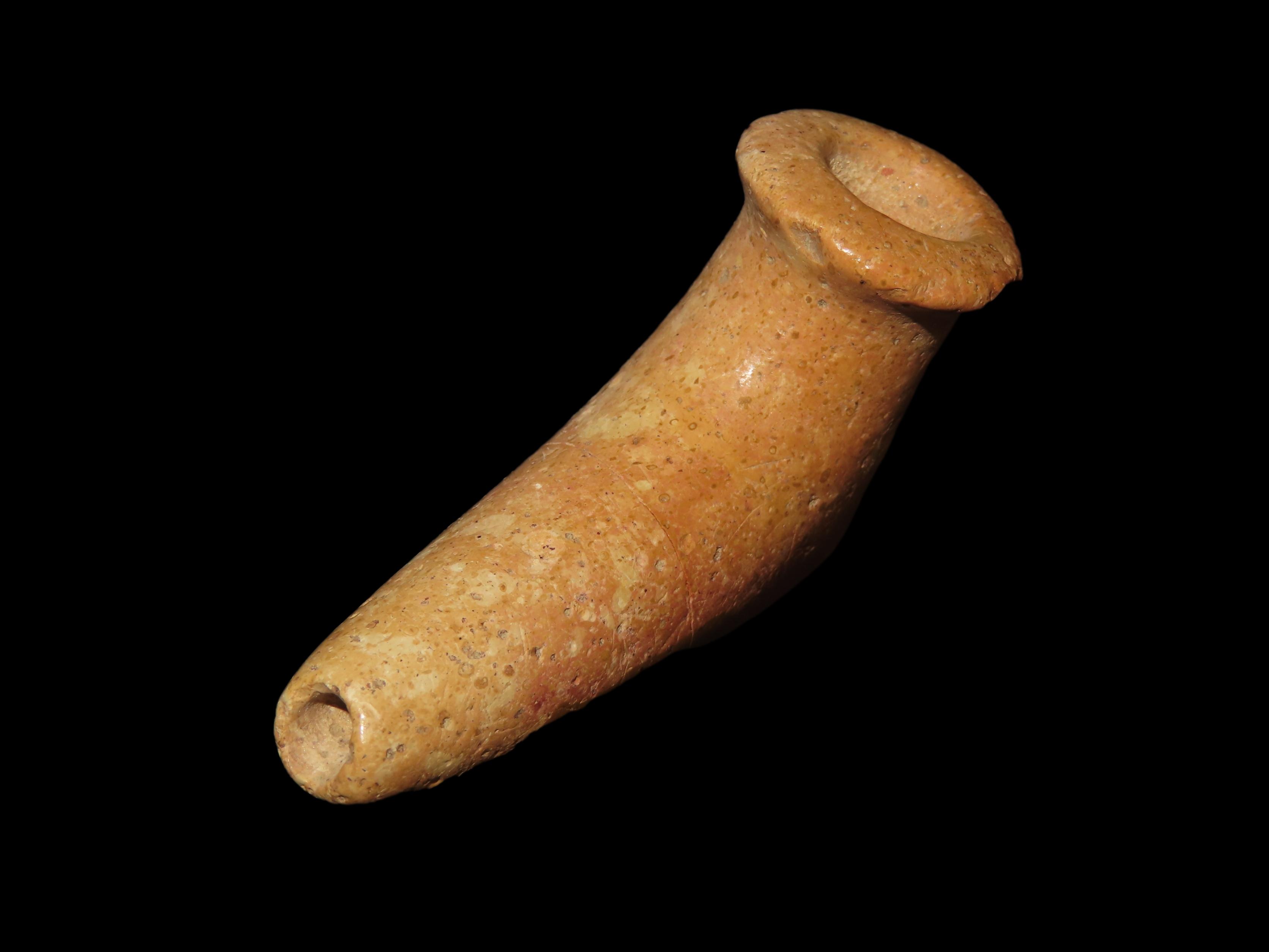 2 1/2″ Elbow Pipe, Hamilton Co. Ohio, Pipestone, Motley COA. Great Old Example with Amazing Polish and Use Wear. This piece has been Broken & Glued on the Stem, Very Tight Fit with No Filler.