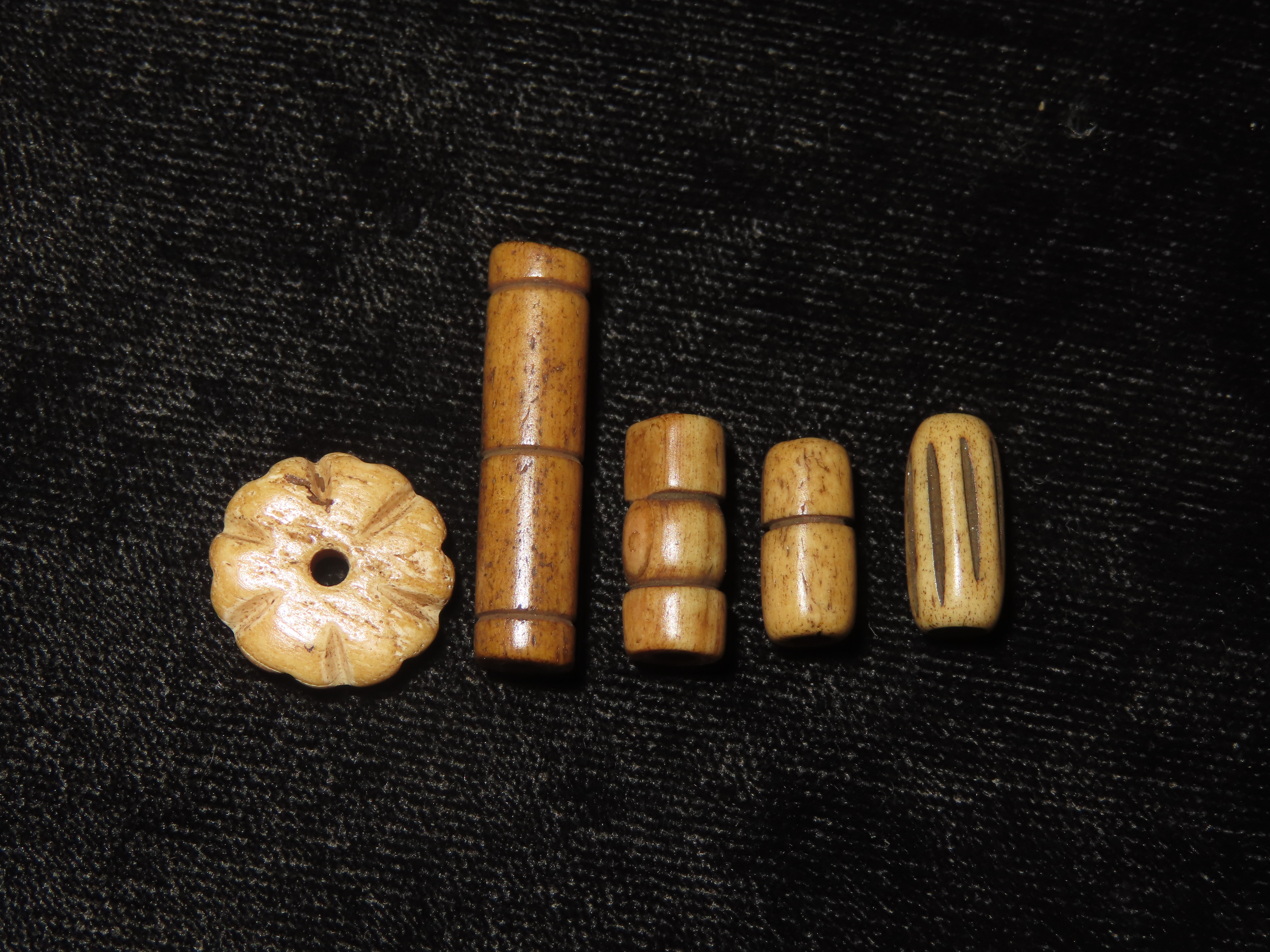 Lot of Bone Beads, South Dakota, Some Engraved. Great Examples, nice Polish & Great Patina. Mandan Culture