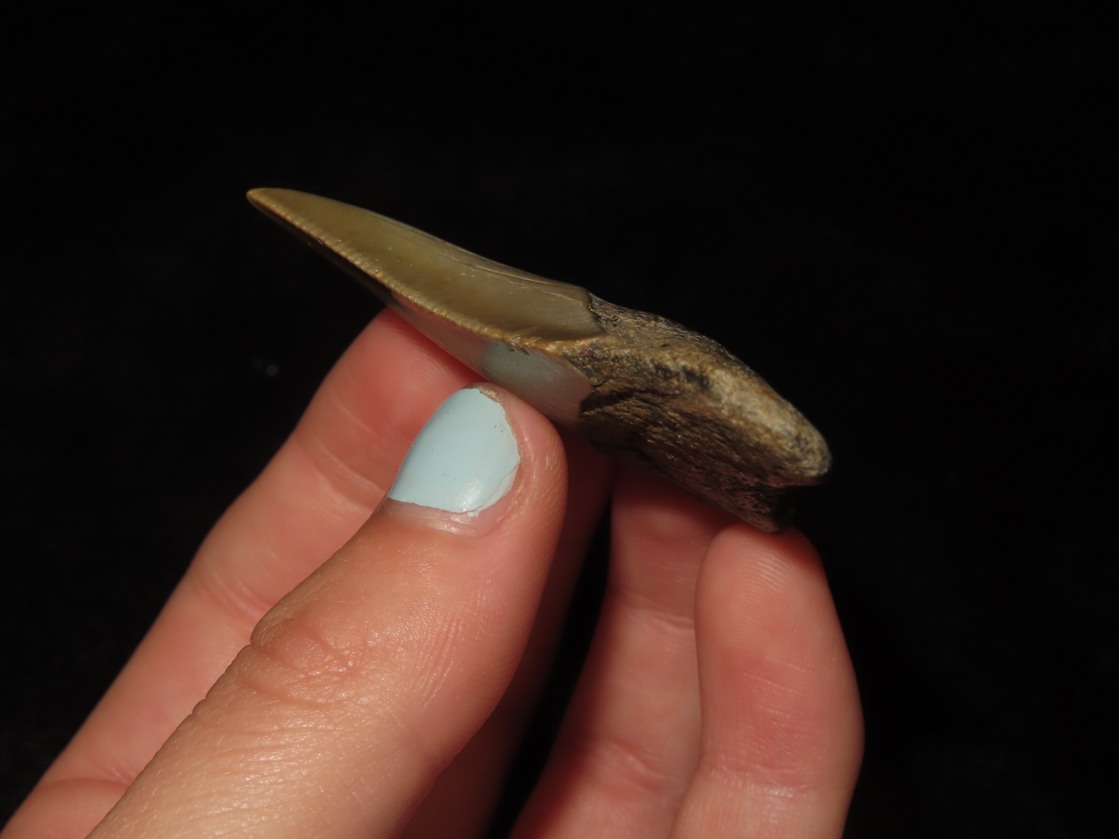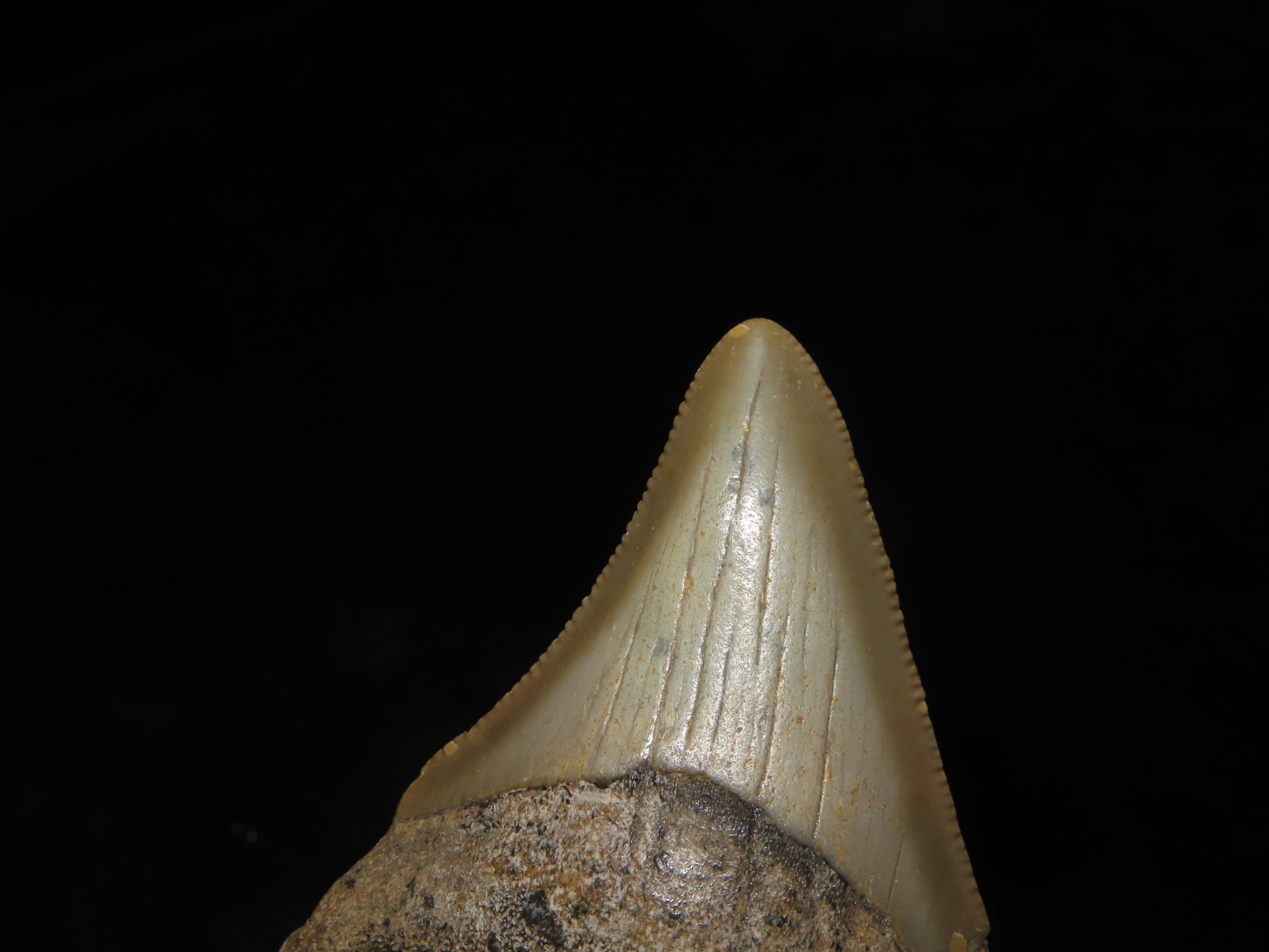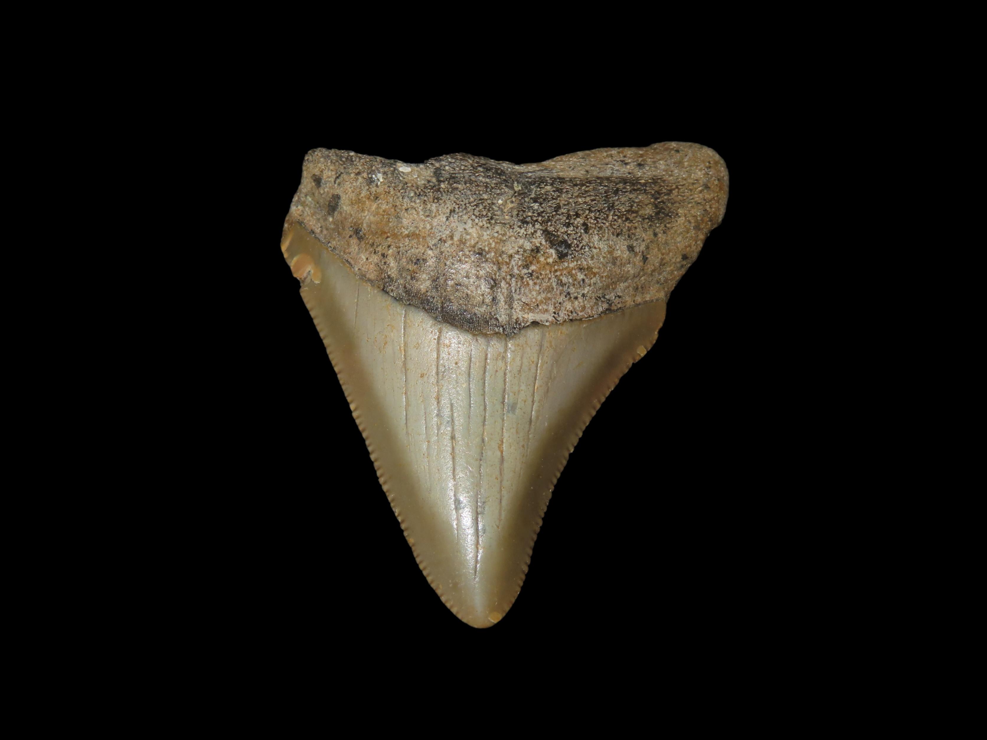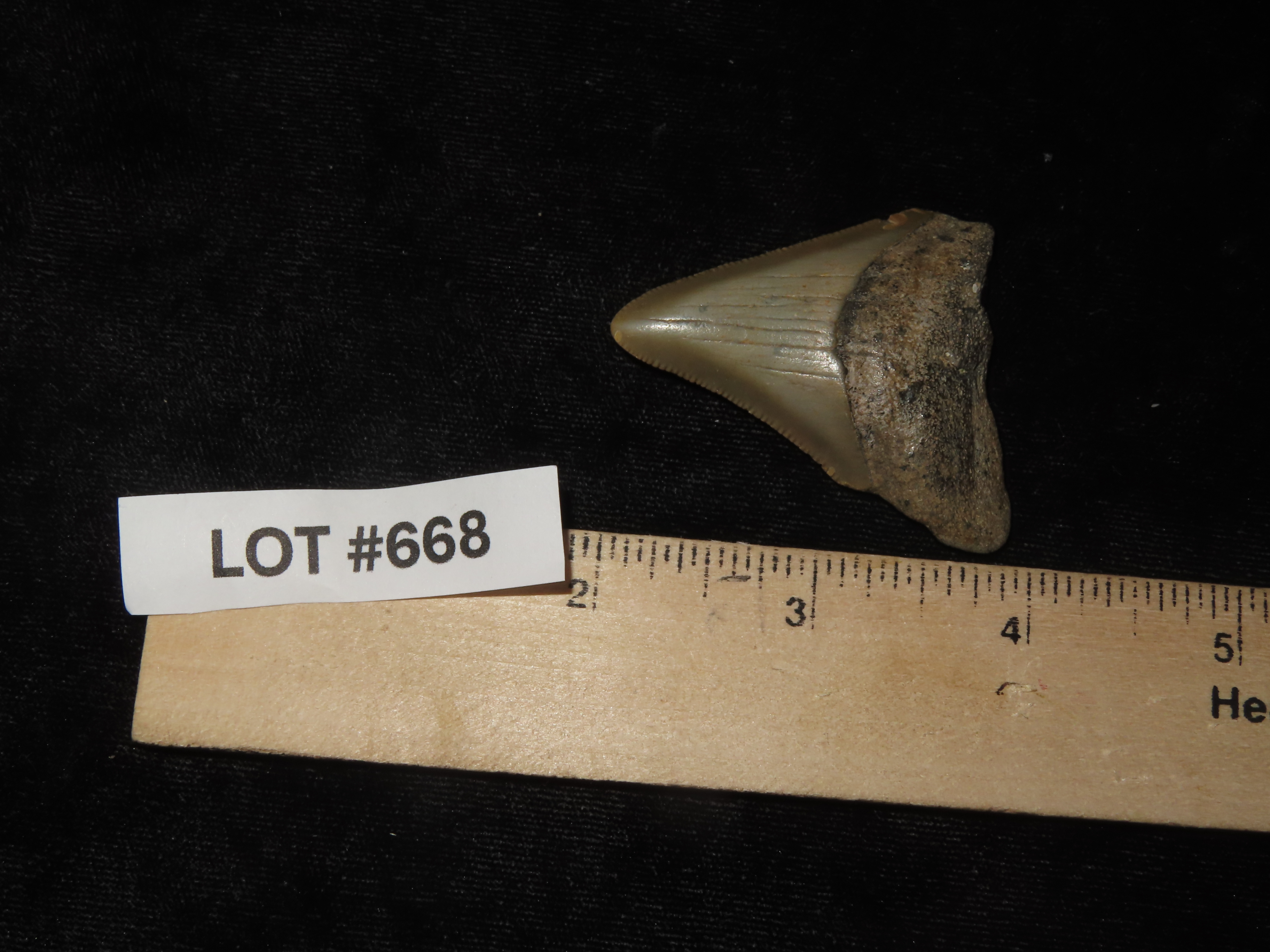Large Megalodon Shark Tooth, 2.5-23 Million Year Old Fossil found off the coast of the Carolinas. No Repair, No Resto, No Polishing. Great Example!