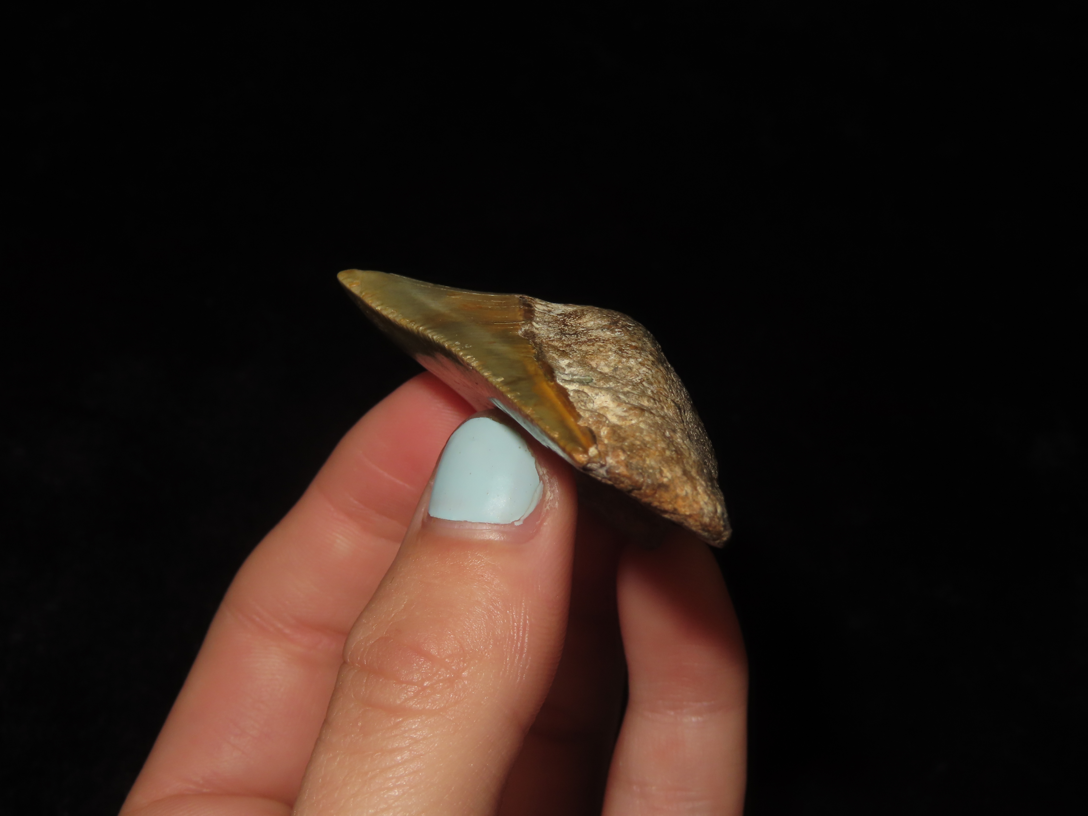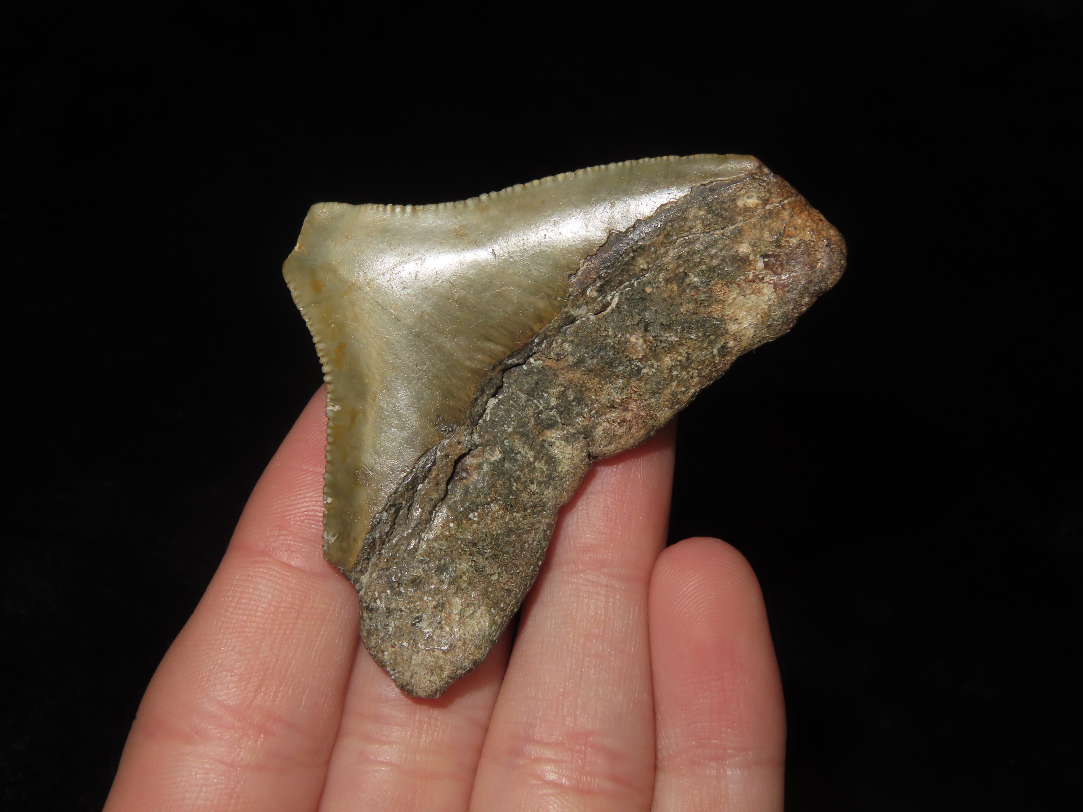 Large Megalodon Shark Tooth, 2.5-23 Million Year Old Fossil found off the coast of the Carolinas. No Repair, No Resto, No Polishing. Great Example!