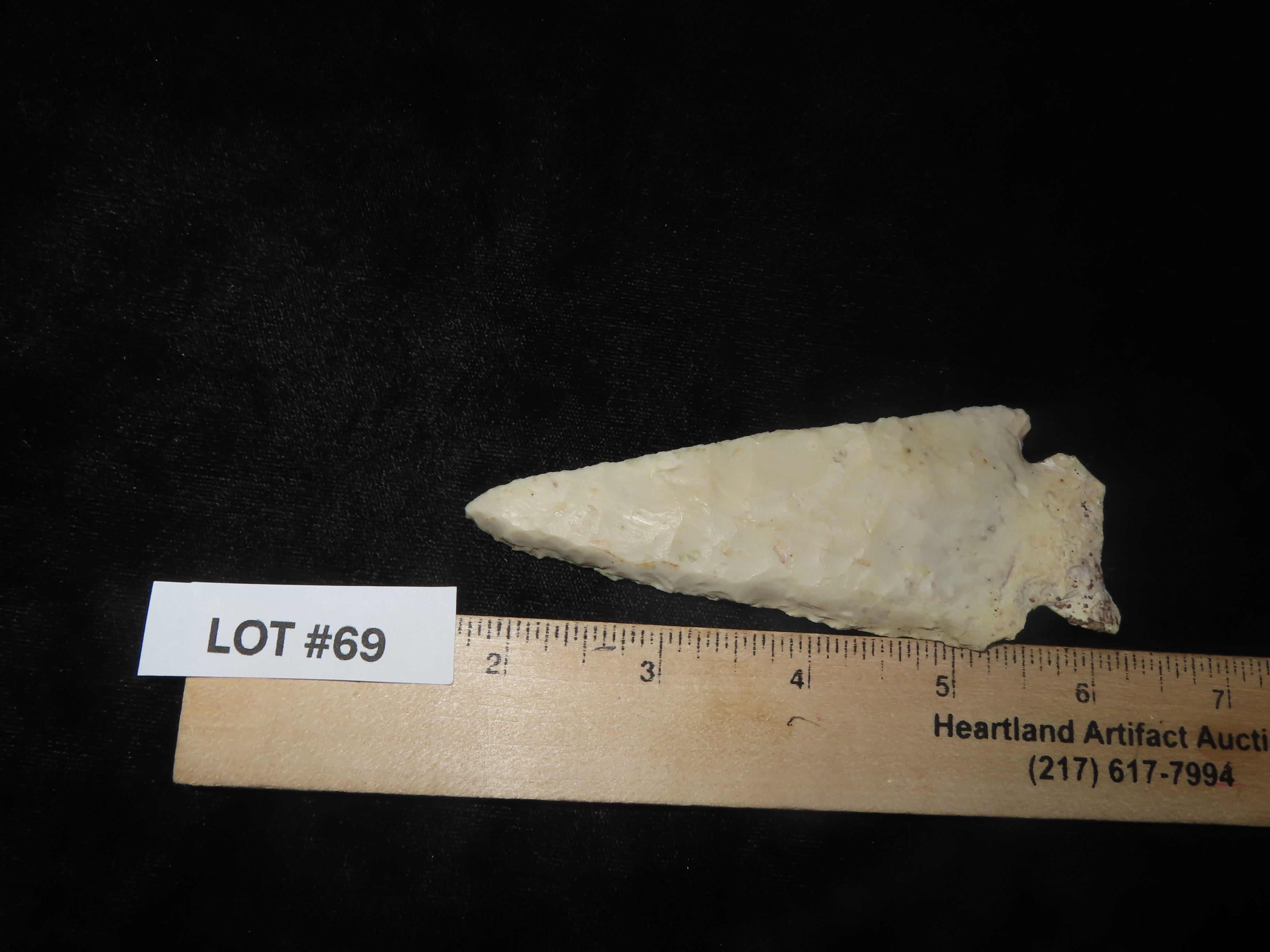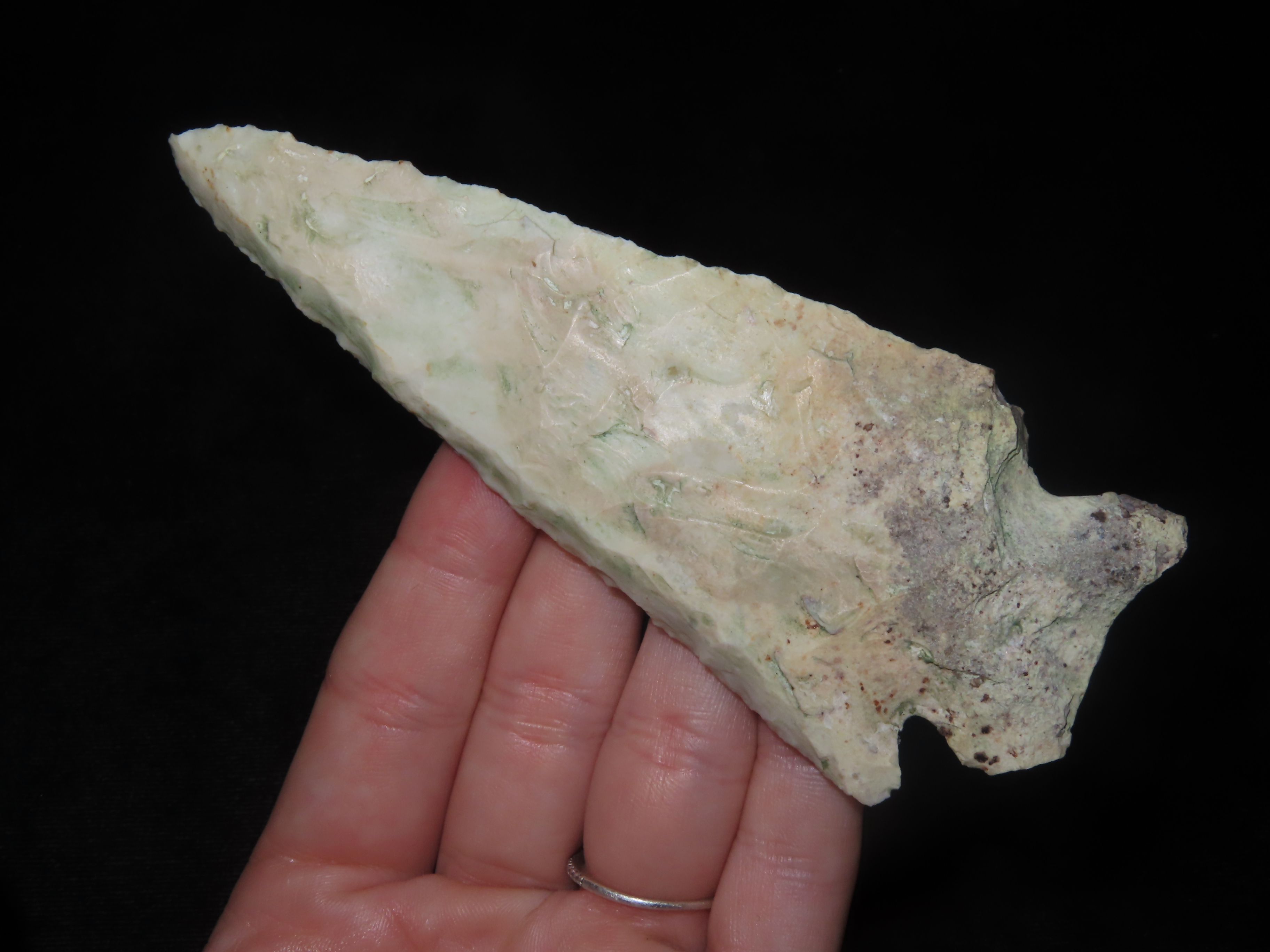 4 9/16″ Avon Pulaski, Fulton Co. Illinois, Steeply Beveled & Heavily Patinated Example. Indian Arrowhead, Artifact, Spear