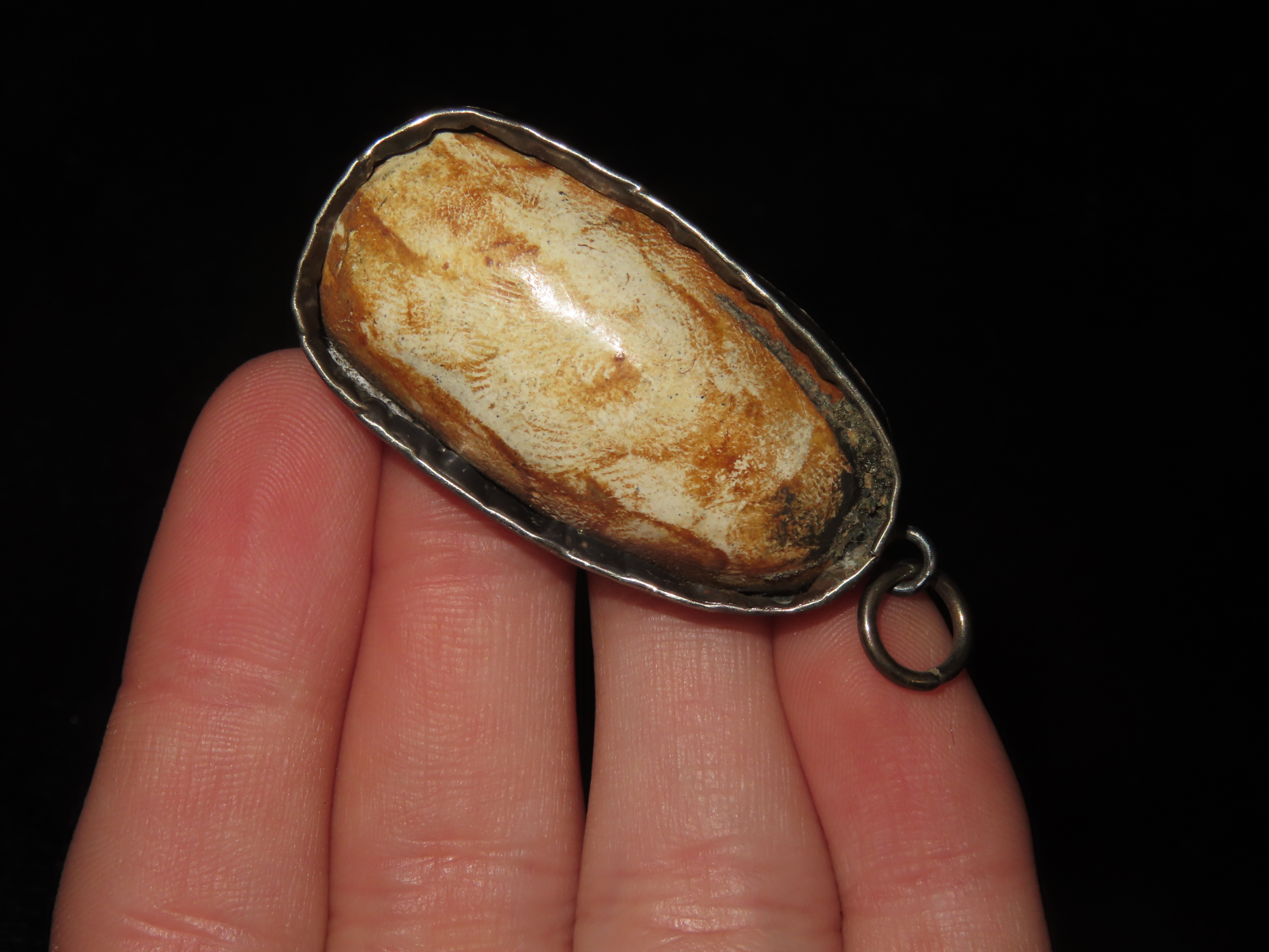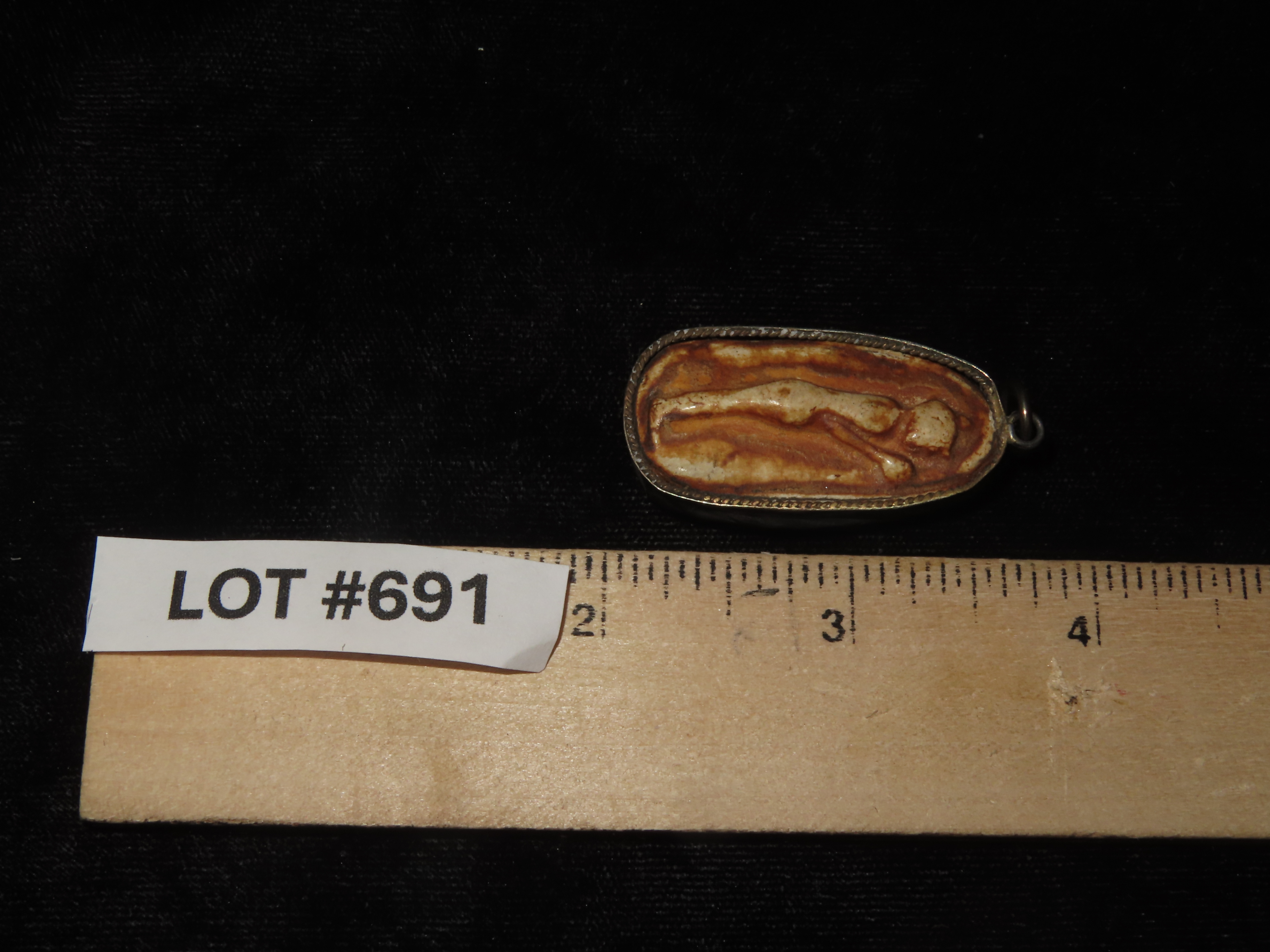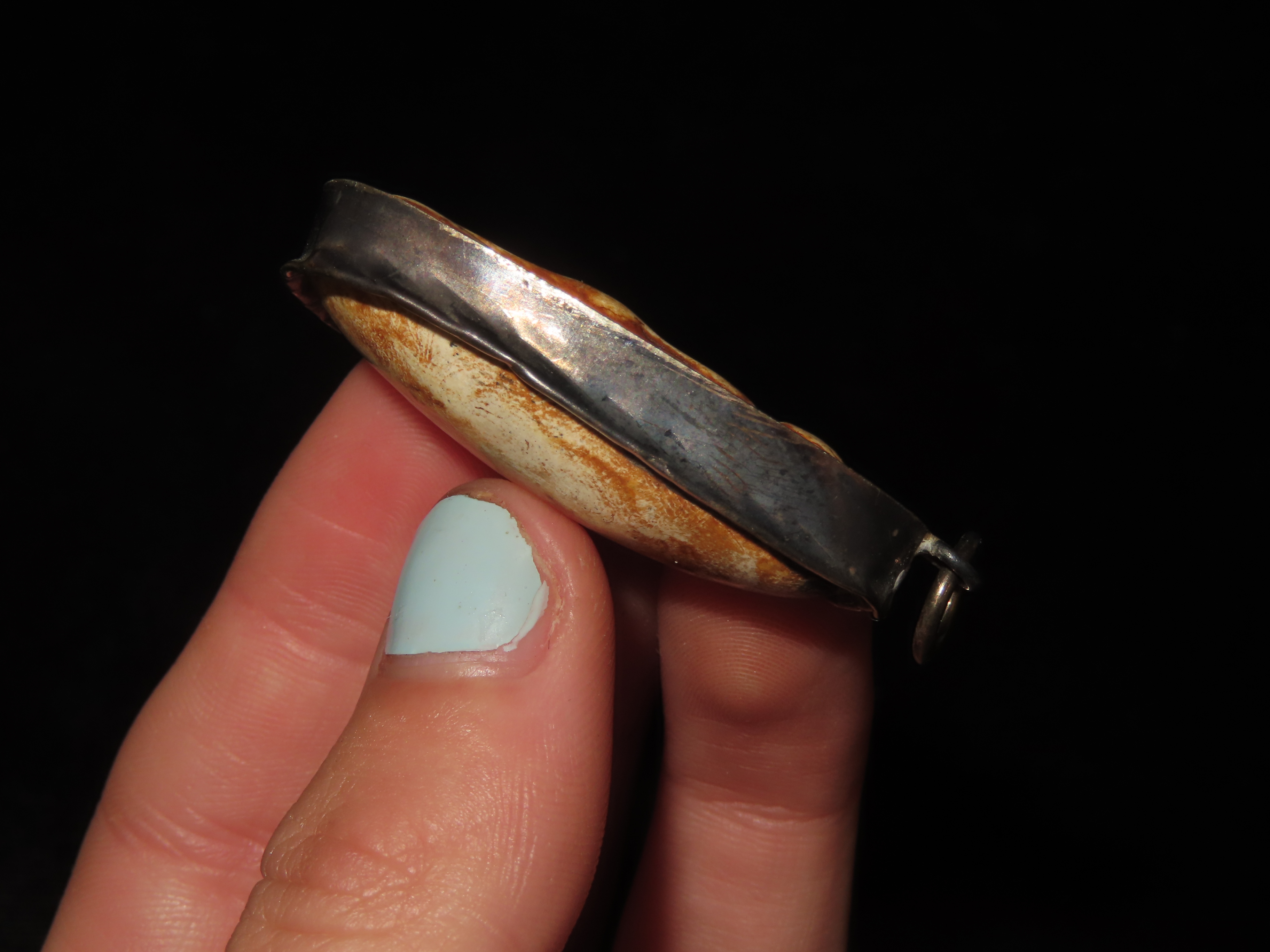 Antique Chinese Carved Stone Religious Buddha Pendant, Wrapped in Bronze Bezel, Great Vintage Piece of Jewelry