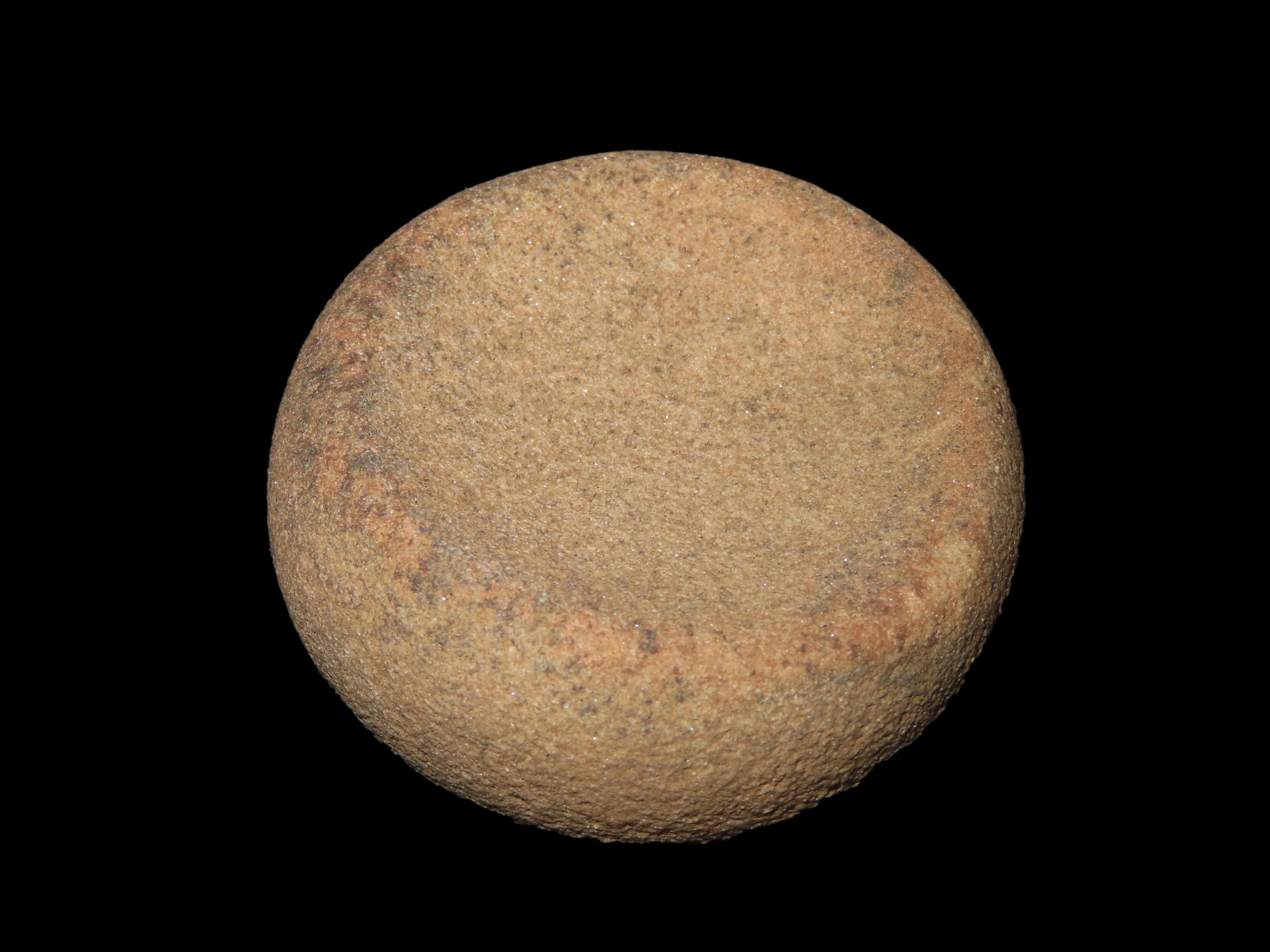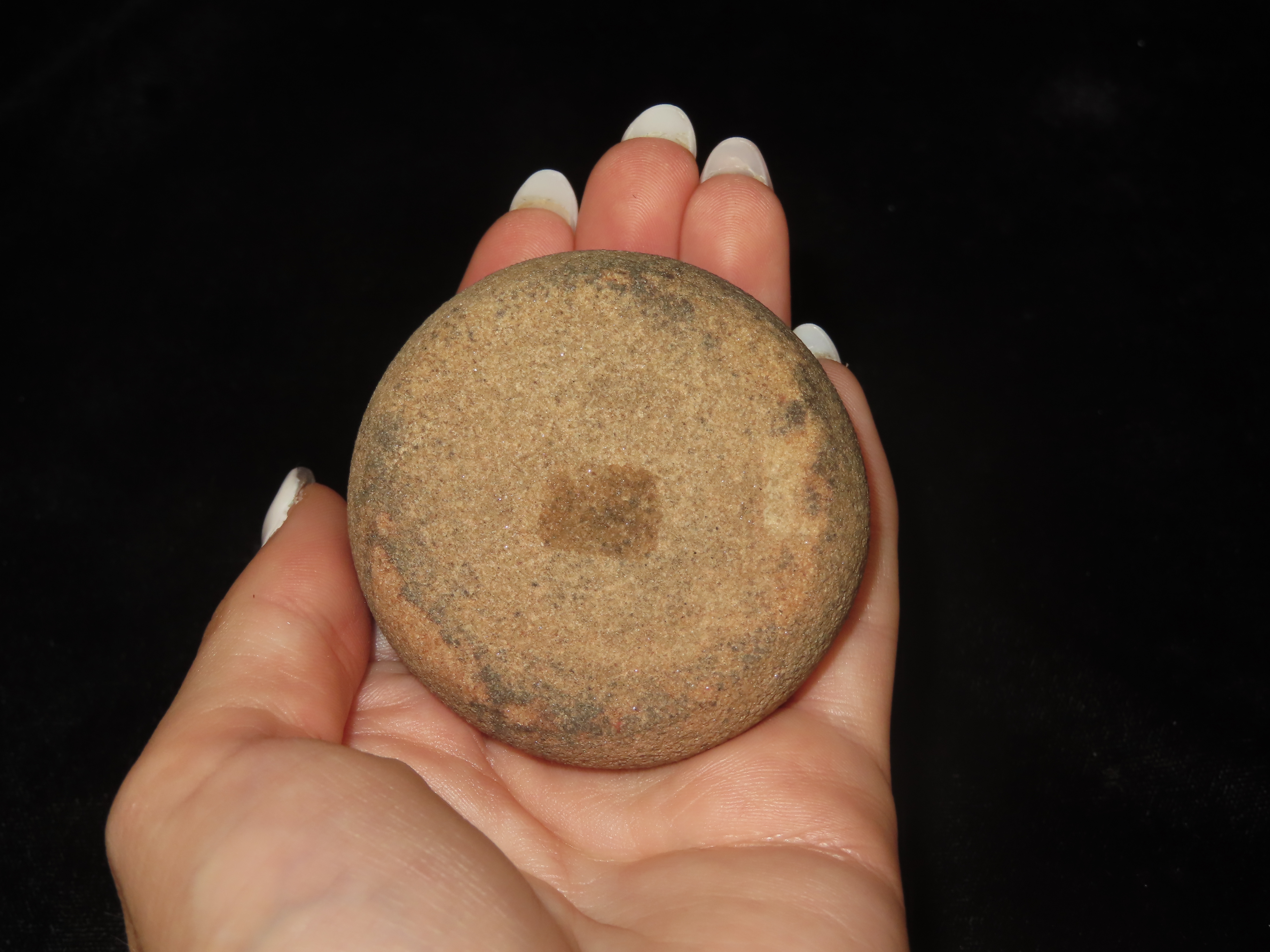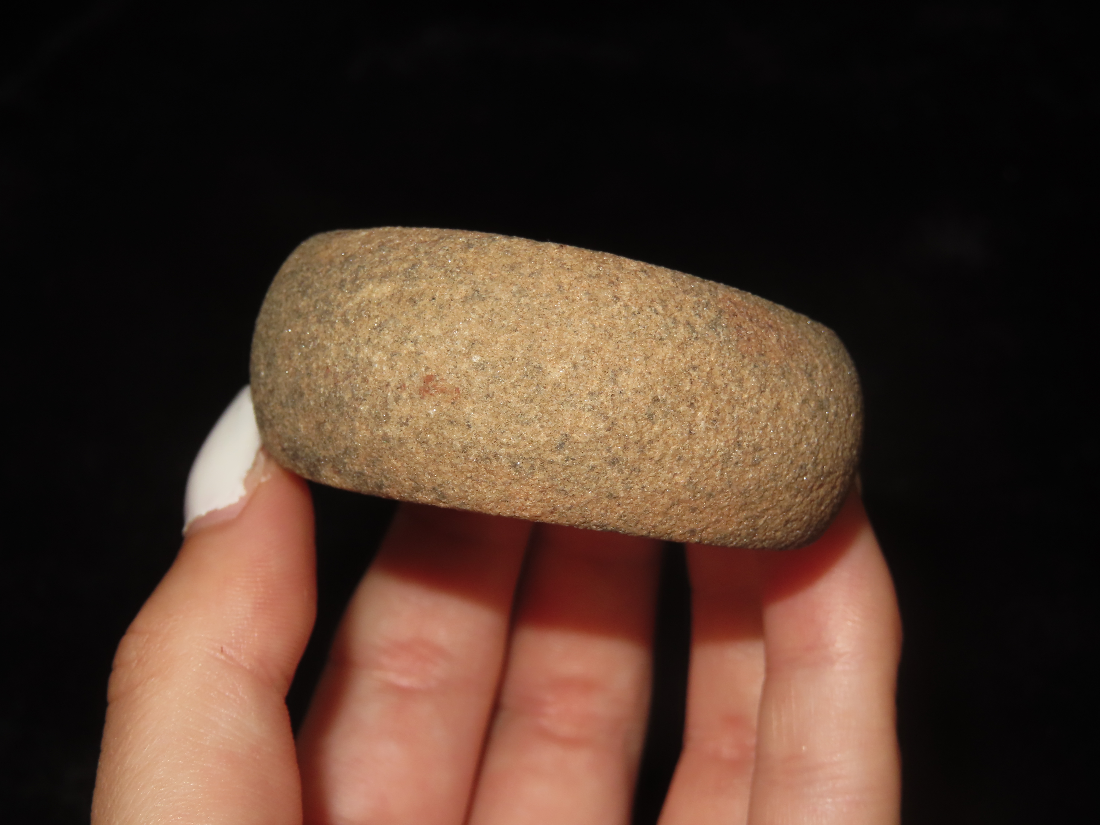 2 1/4" Cahokia Discoidal, Madison Co. Illinois, Motley COA/ Nice Double Cupped Example with Great Smooth Polish, Made out of a Pink & Tan Quartzite Material