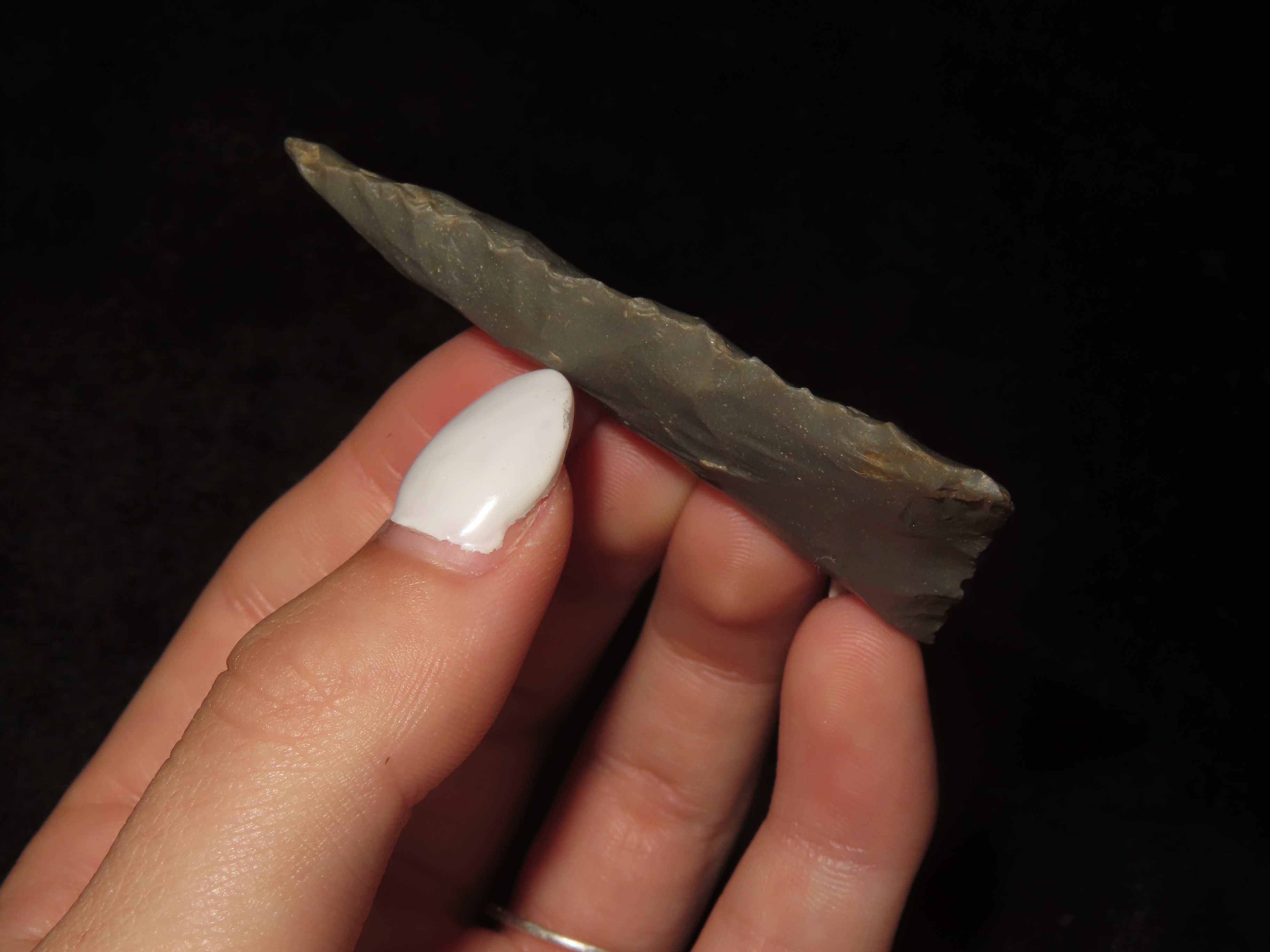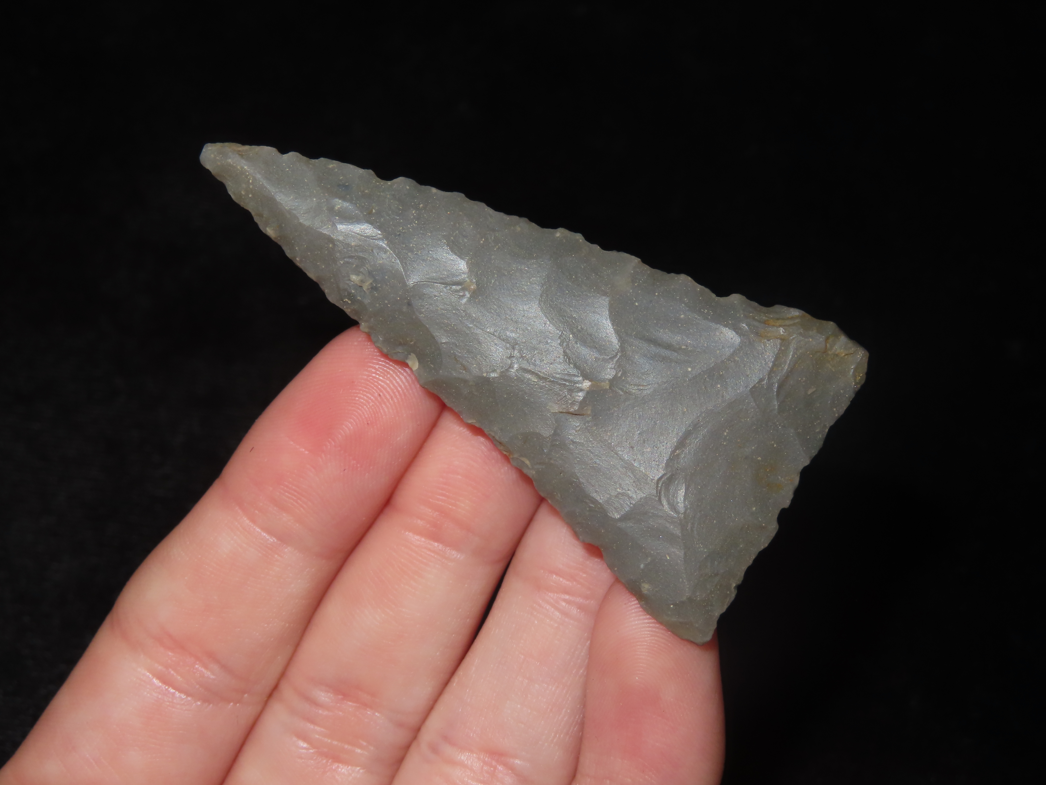 Incredible 2 7/16″ Triangle, Hardin Co. Kentucky. Very Nice & Very Large Example, Well Flaked with Great patina. Mississippian, Madison, Fort Ancient, War Point